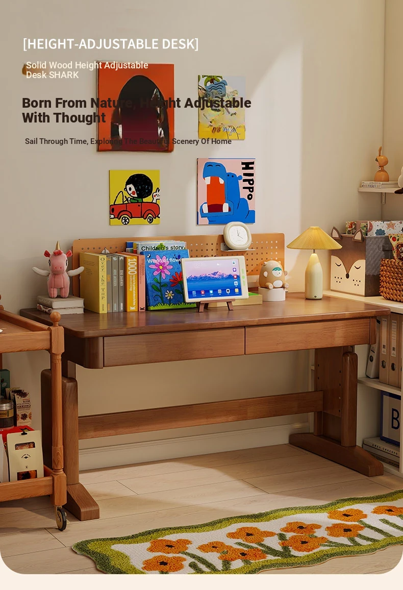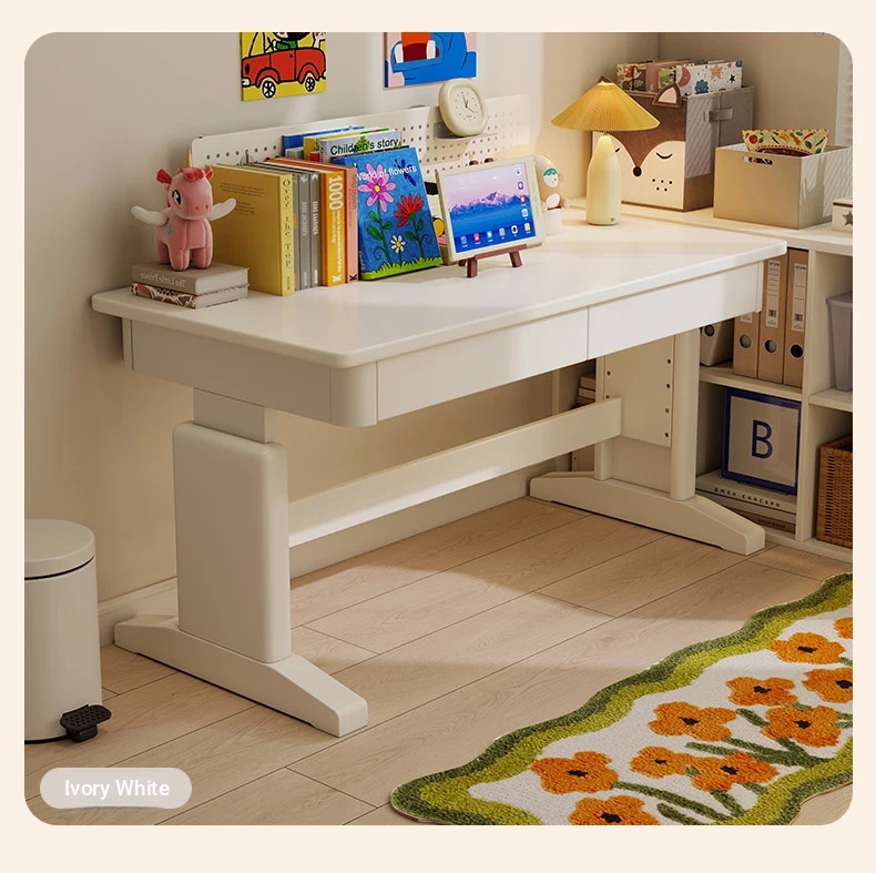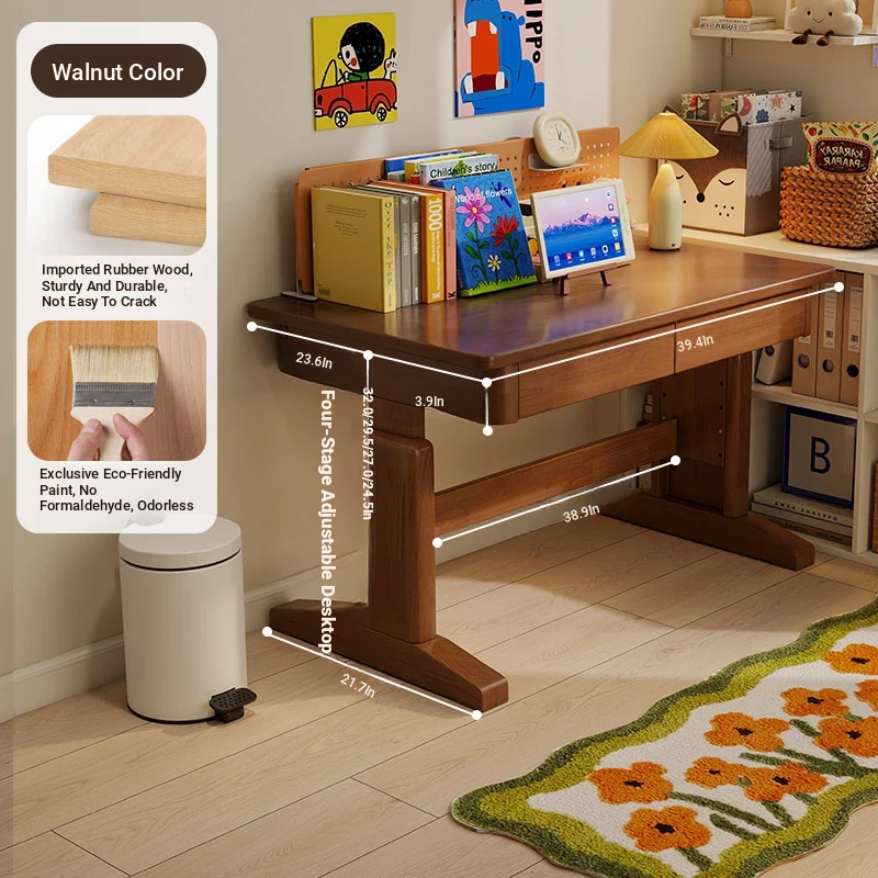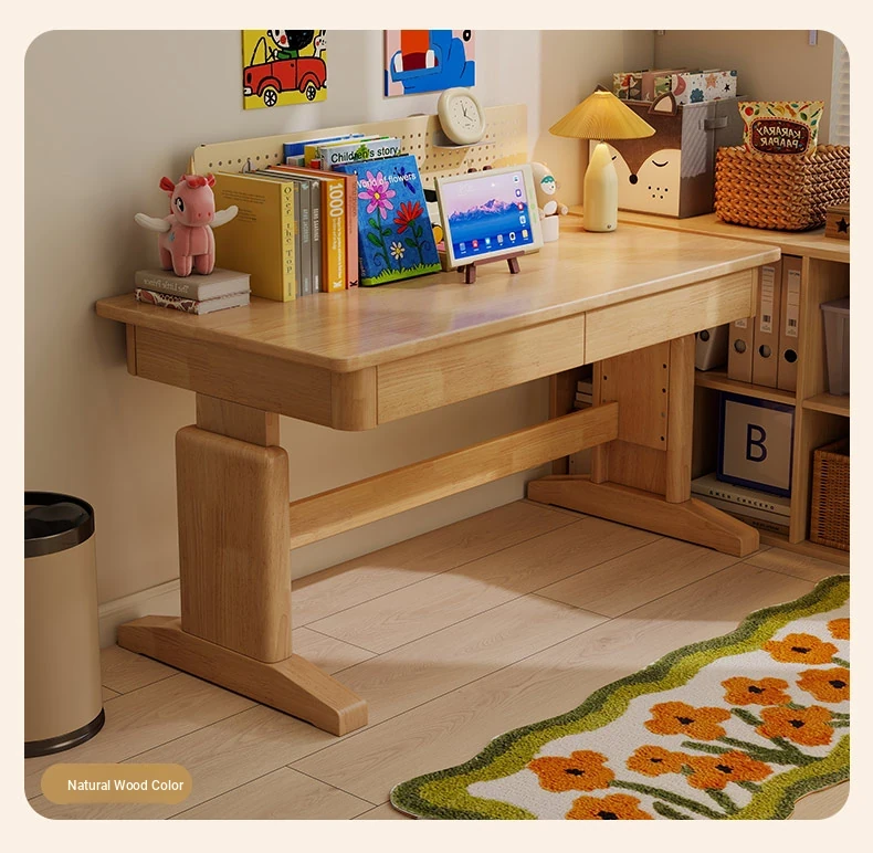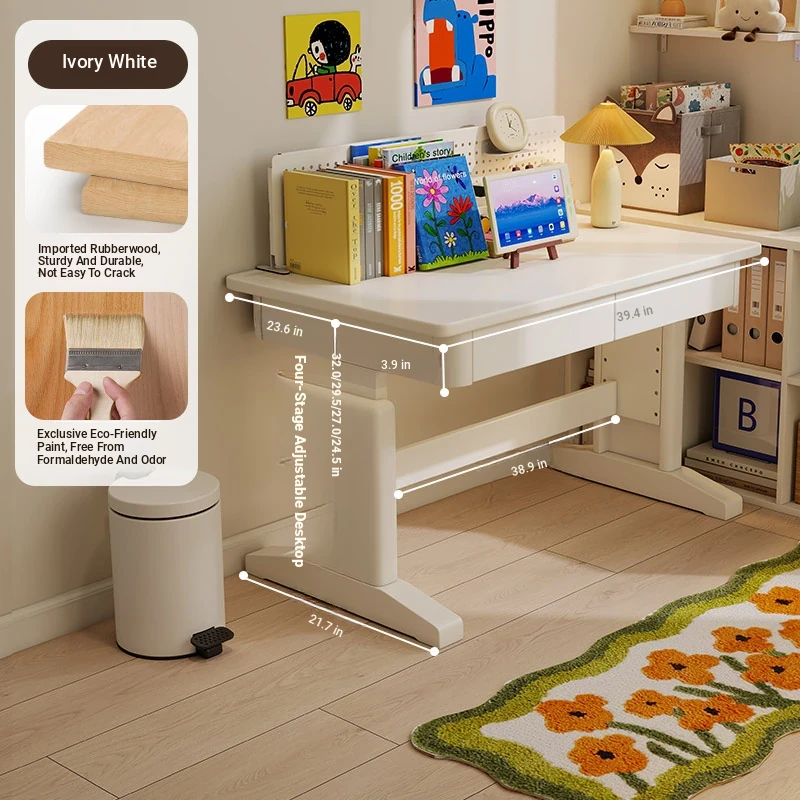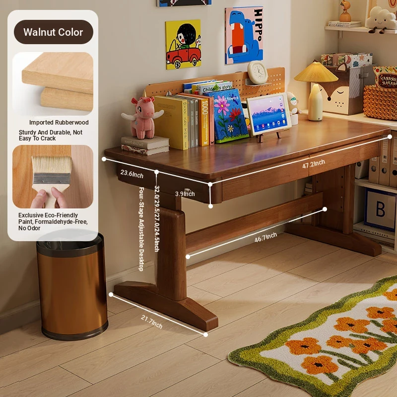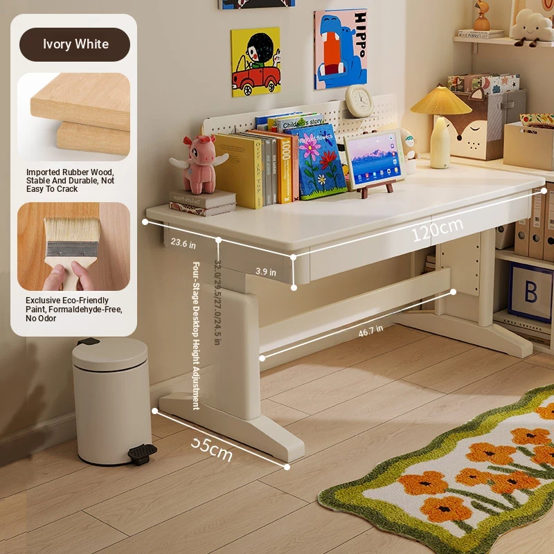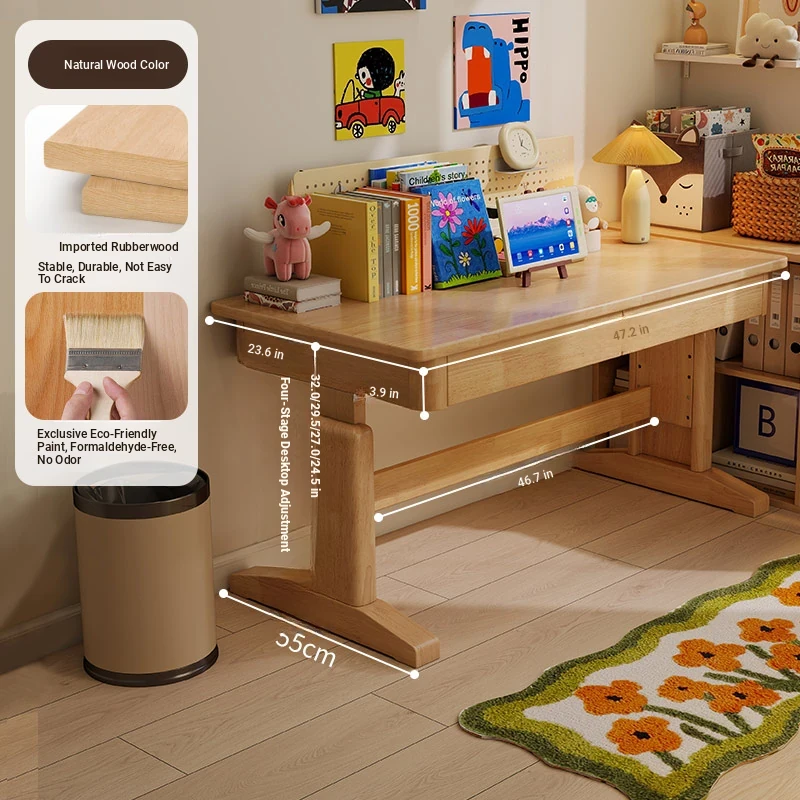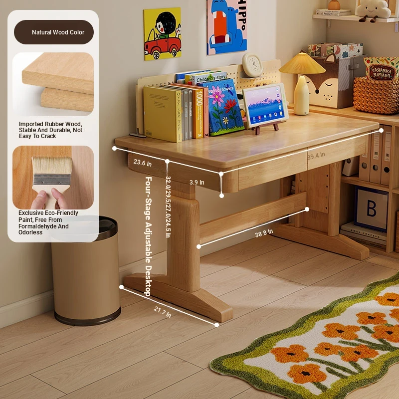 Adjustable Solid Wood Study Desk for Kids - Perfect for Home Use, Ideal for Elementary to High School Students, Compact Design for Bedroom or Bedside, Simple Writing and Computer Desk