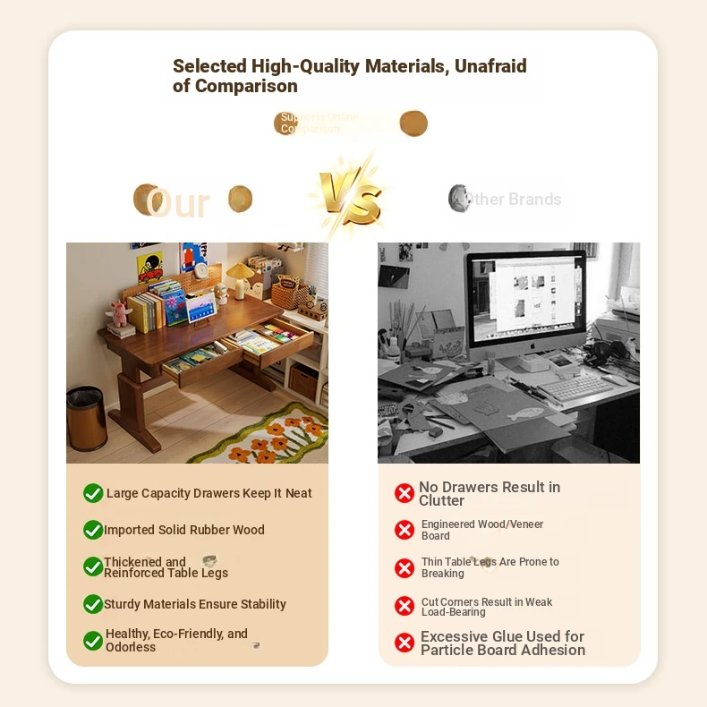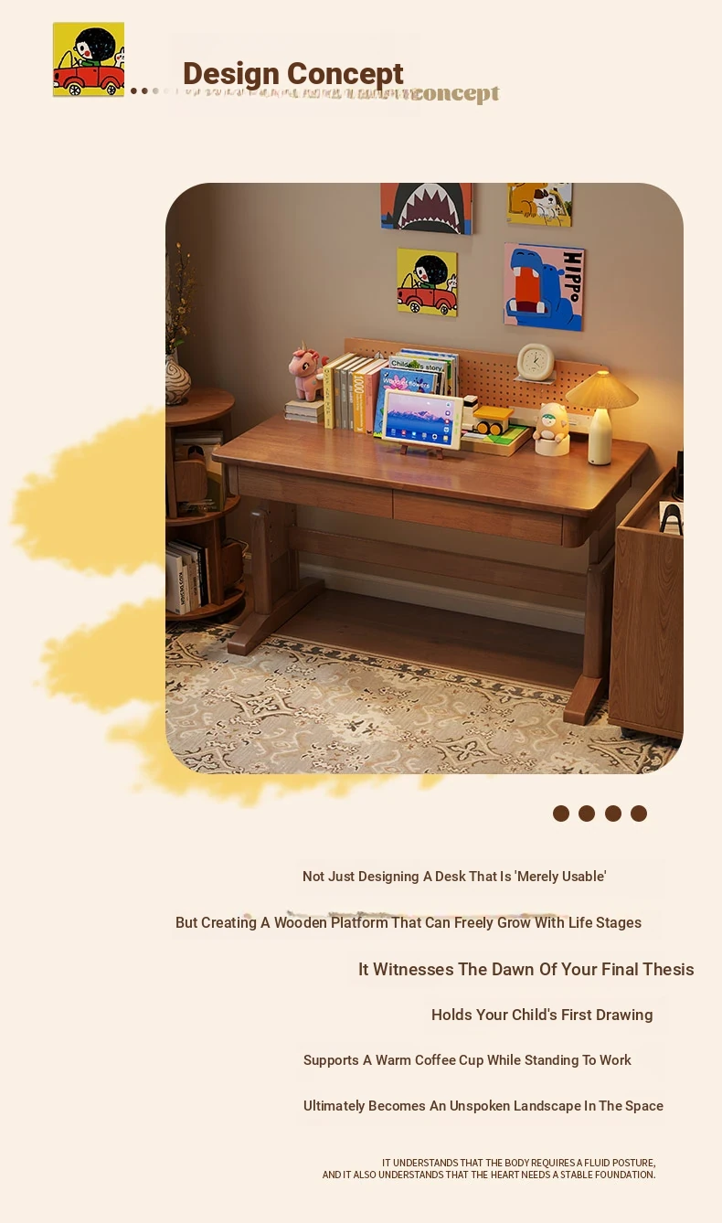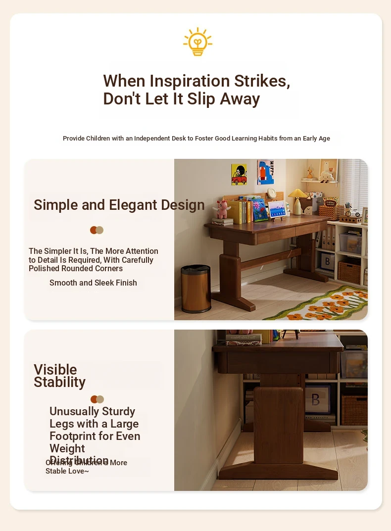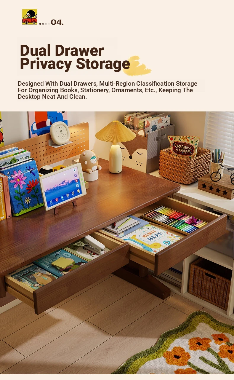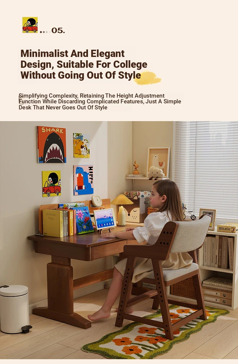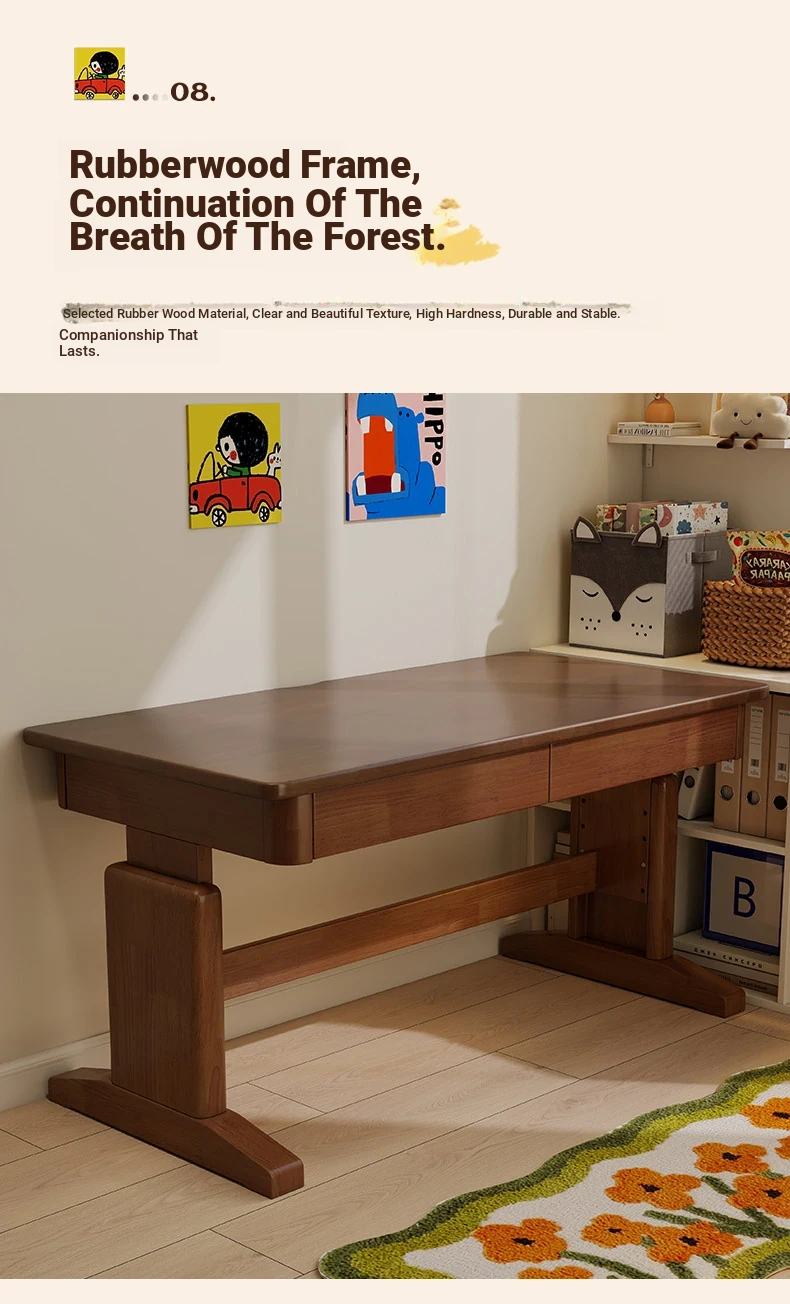 Adjustable Solid Wood Study Desk for Kids - Perfect for Home Use, Ideal for Elementary to High School Students, Compact Design for Bedroom or Bedside, Simple Writing and Computer Desk