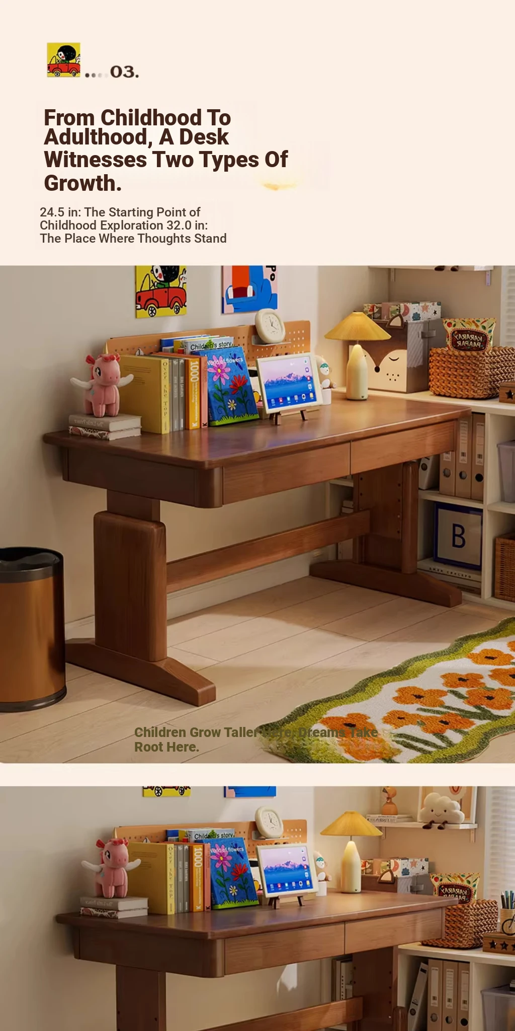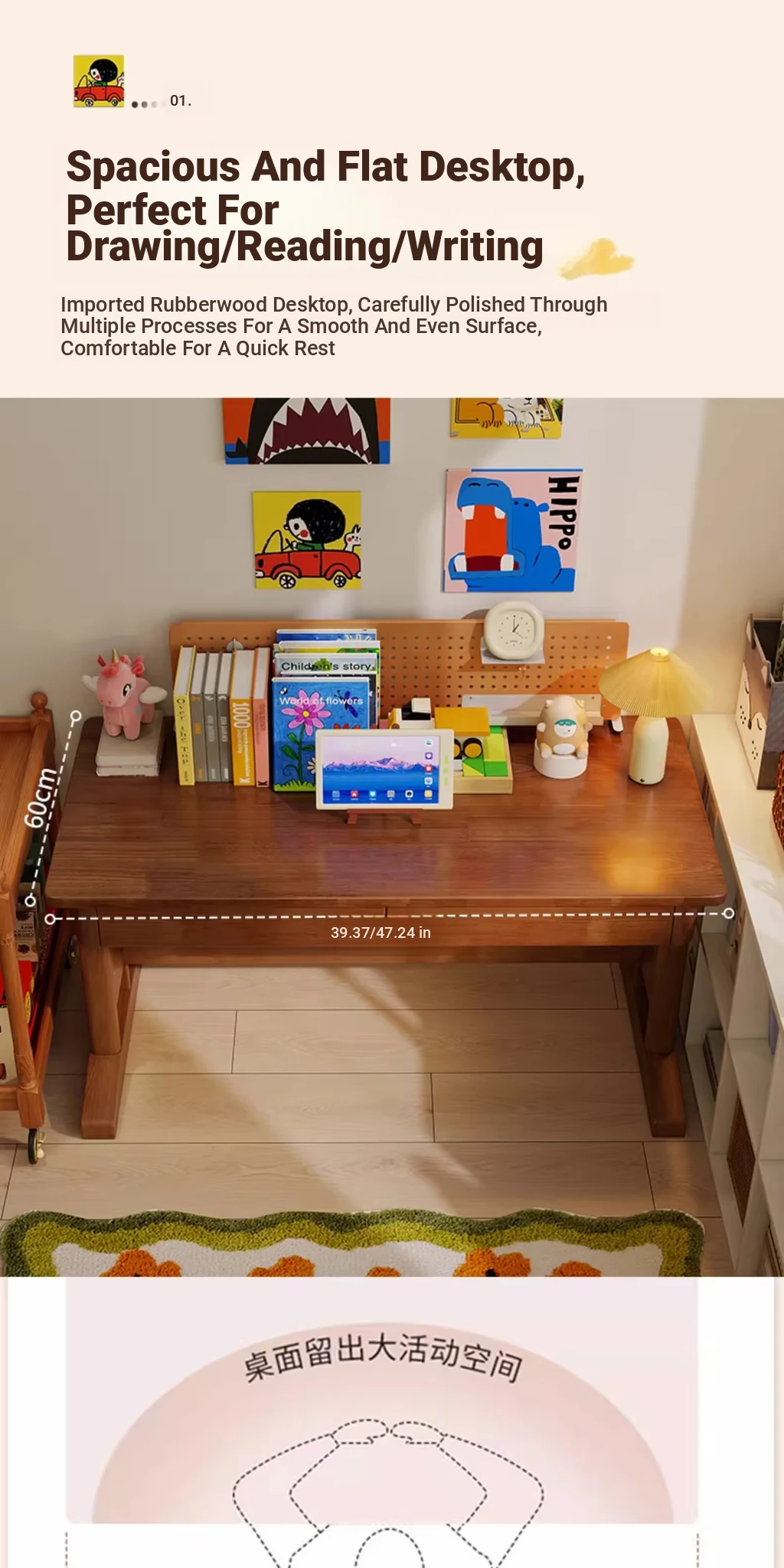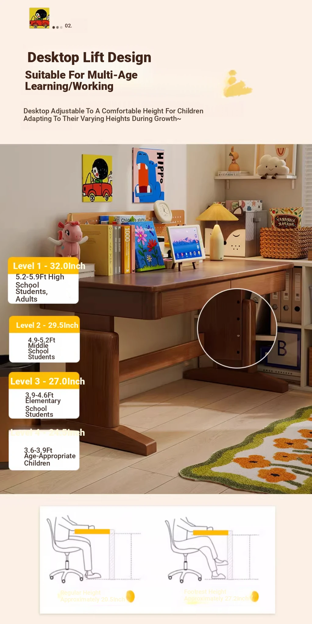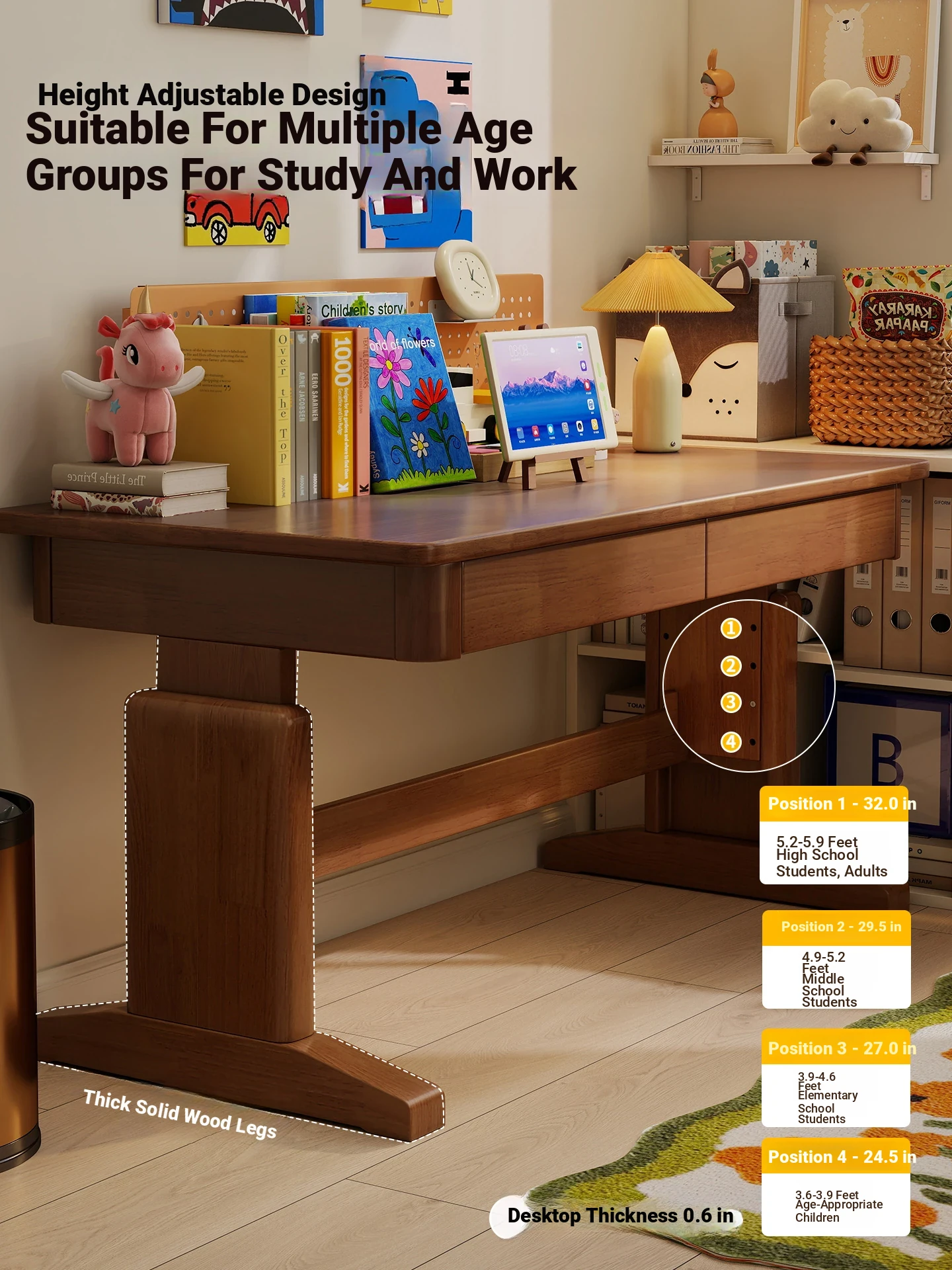 39.37in [Natural Wood Color] Four-Level Height Adjustment