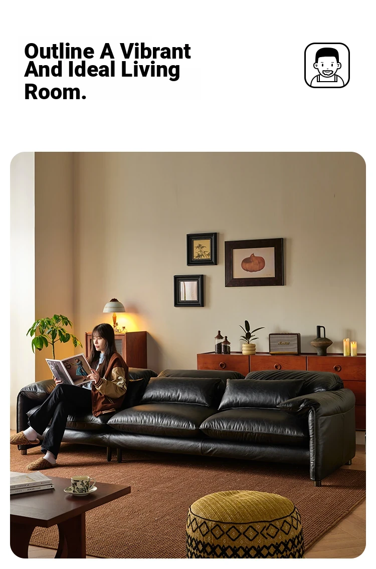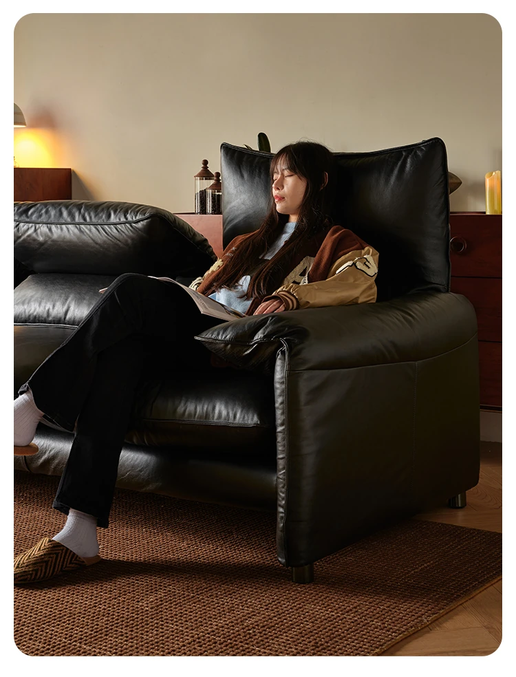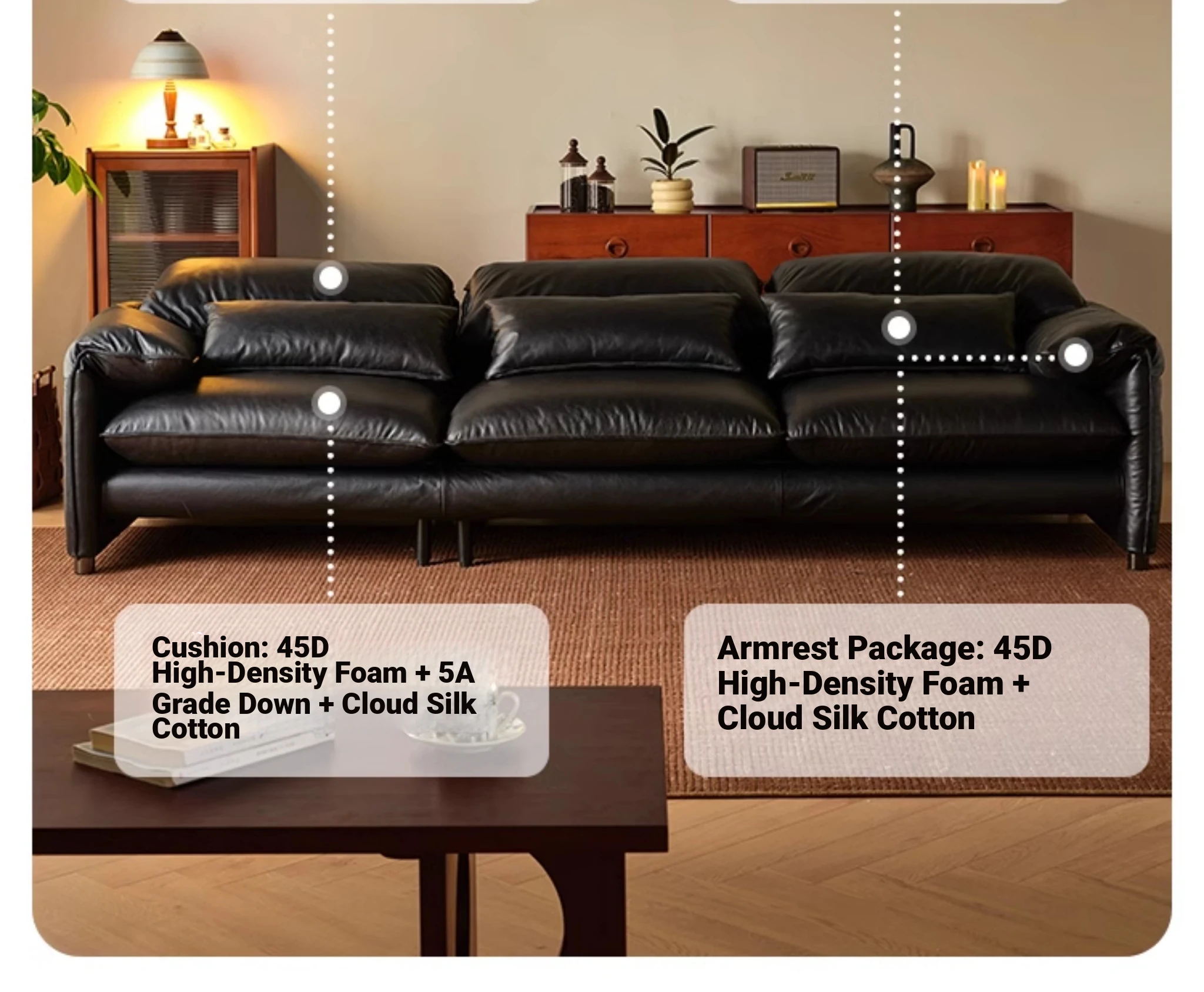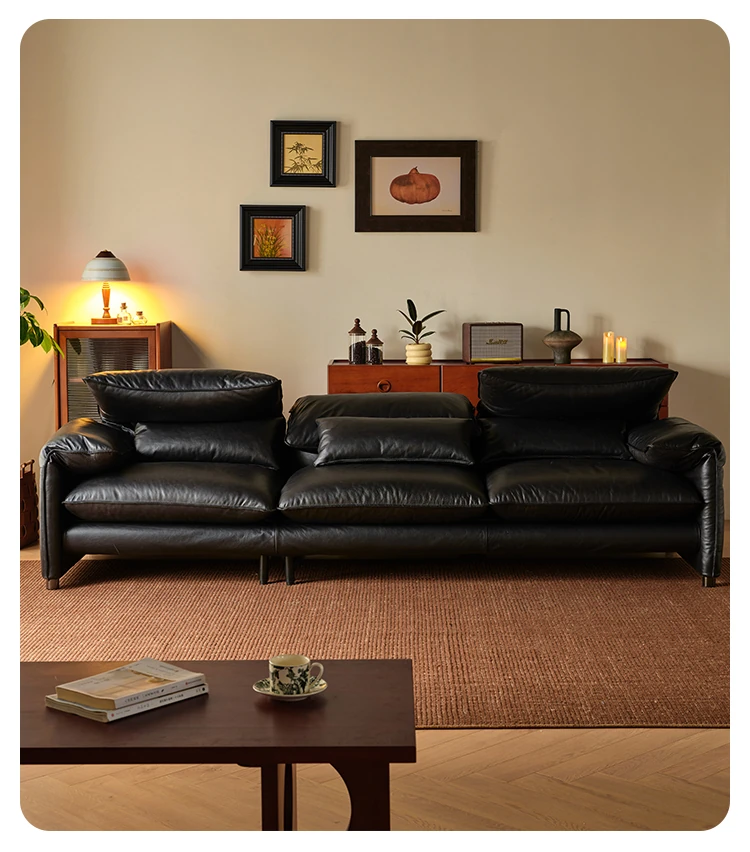 Cassina Maralunga Vintage Black Leather Sofa - Retro Style Foldable Armchair for Living Room, Crafted with Premium Waxed Leather