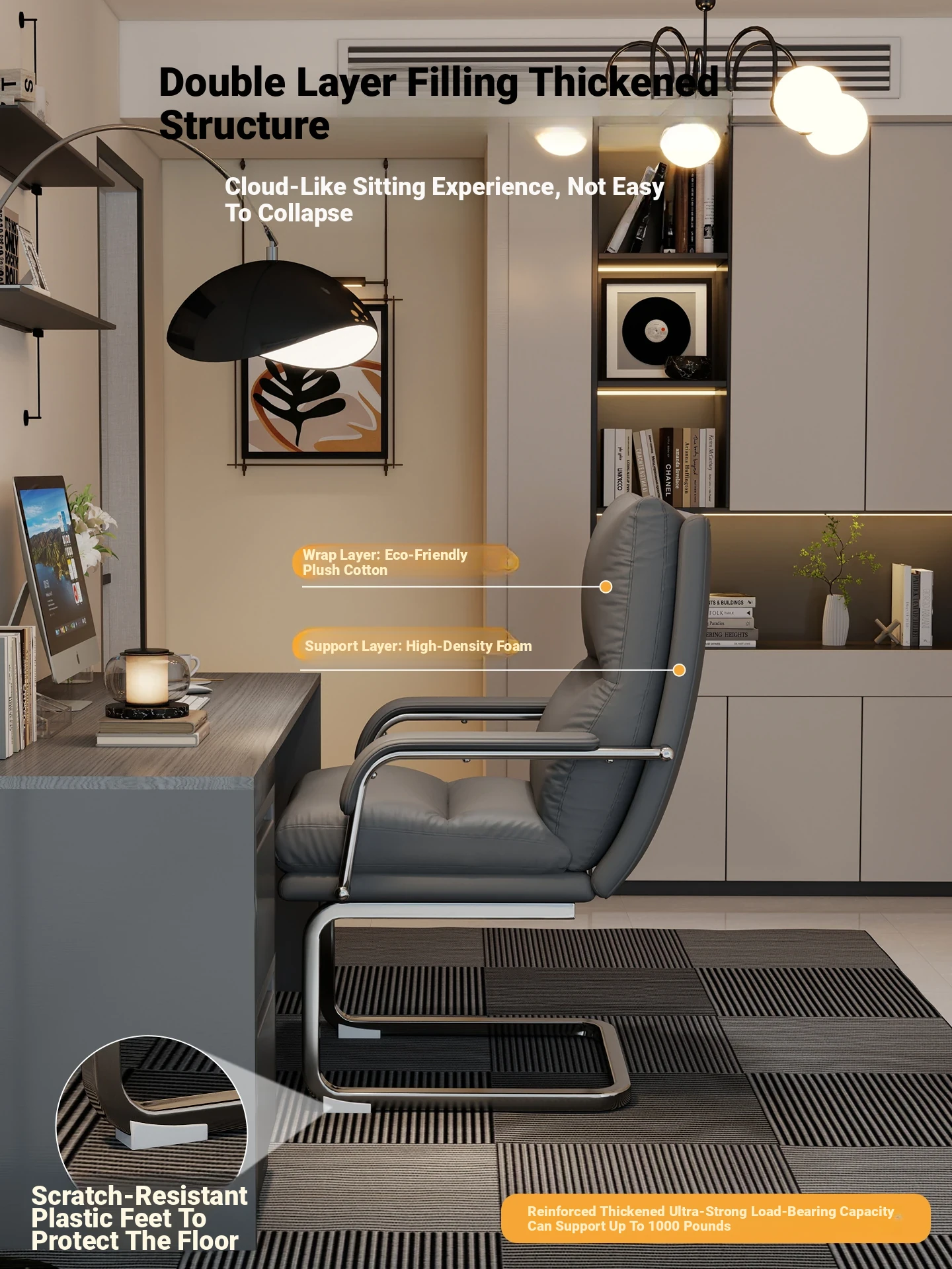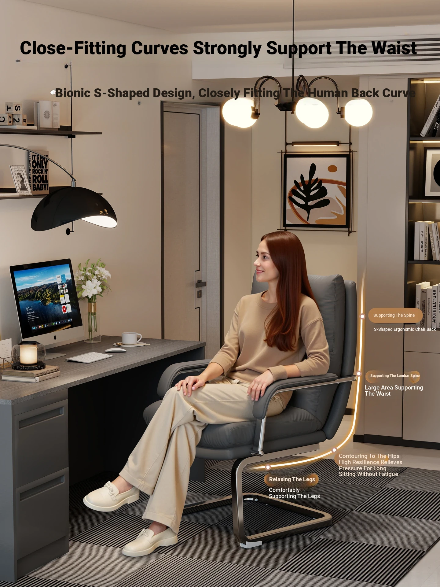 Comfortable Home Office Chair - Stylish Single Sofa for Leisure, Perfect for Long Hours at Your Desk, Offers a Touch of Luxury and Elegance for Your Space. Ideal for Work or Relaxation!