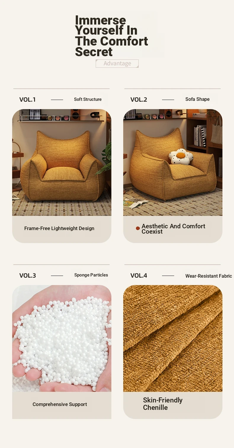 Comfortable Lazy Bean Bag Sofa - Versatile Sleeping and Lounging Chair for Bedroom and Balcony - Minimalist Tatami Lounge Chair for Relaxation and Leisure