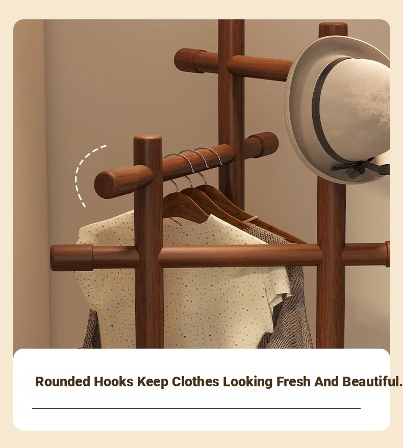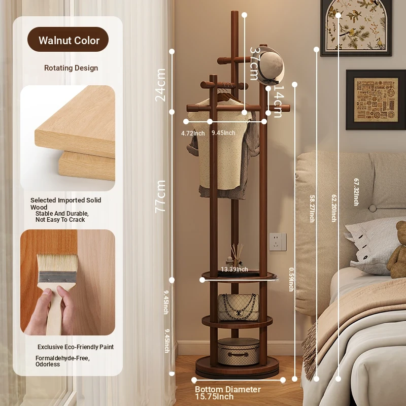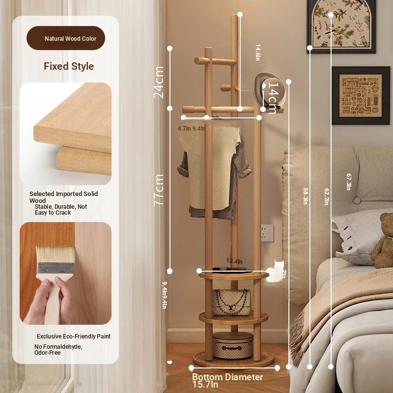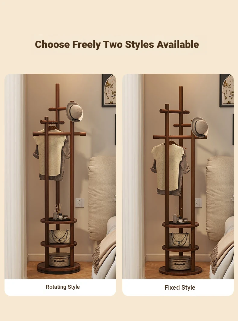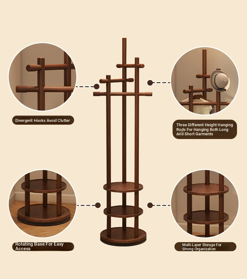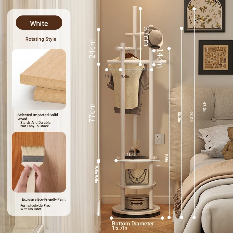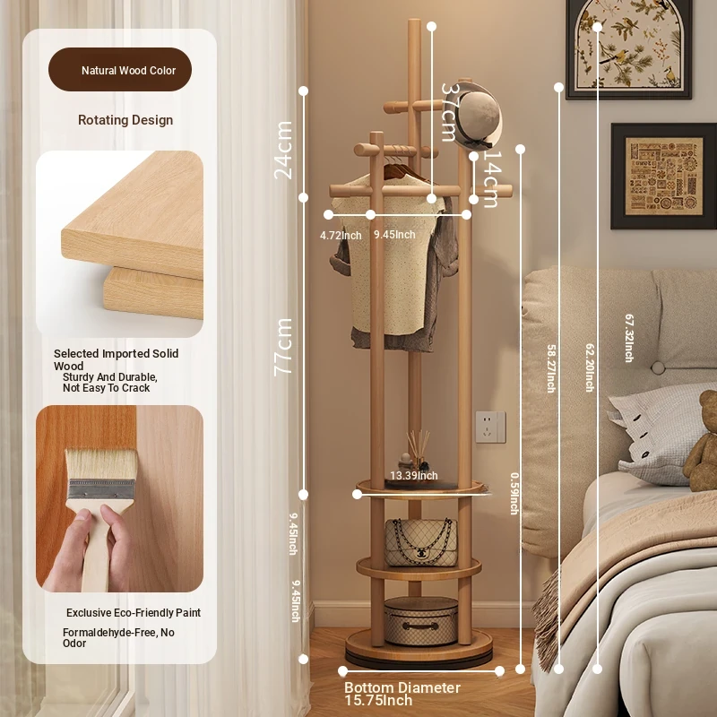Compact Rotating Solid Wood Clothes Rack - Space-Saving Bedroom & Home Use Coat Stand, Perfect for Small Rooms and Bedside Storage