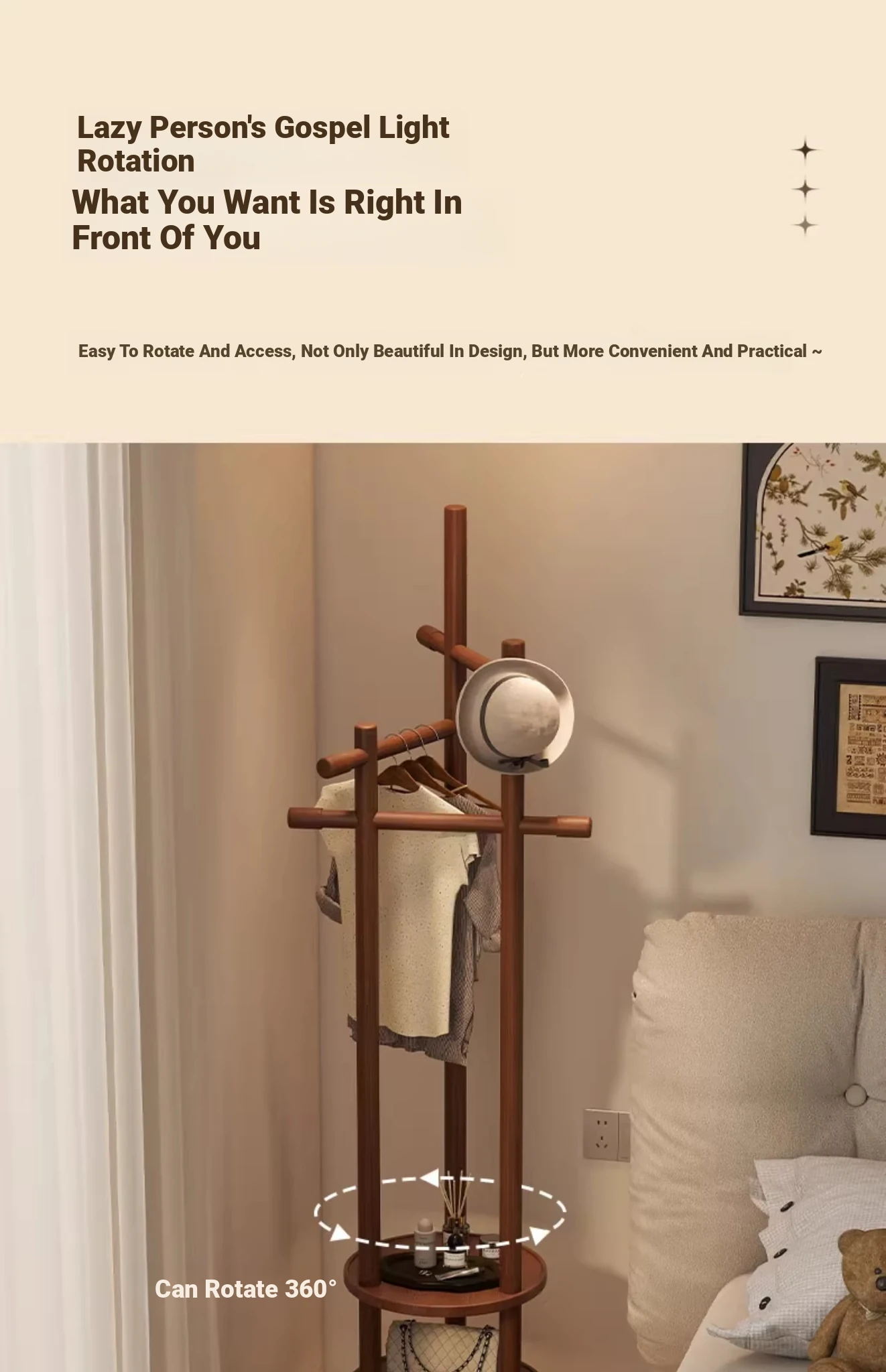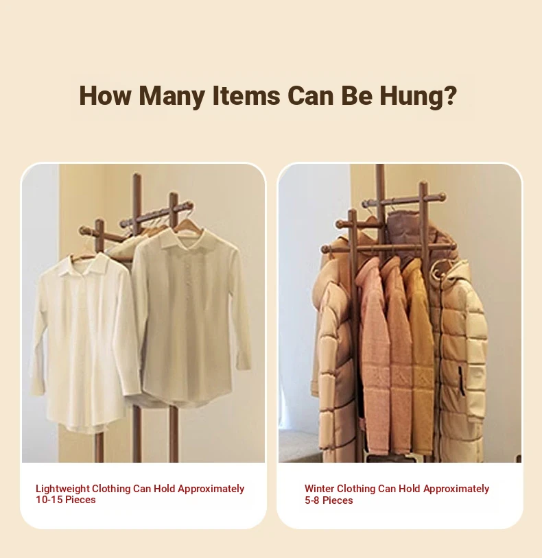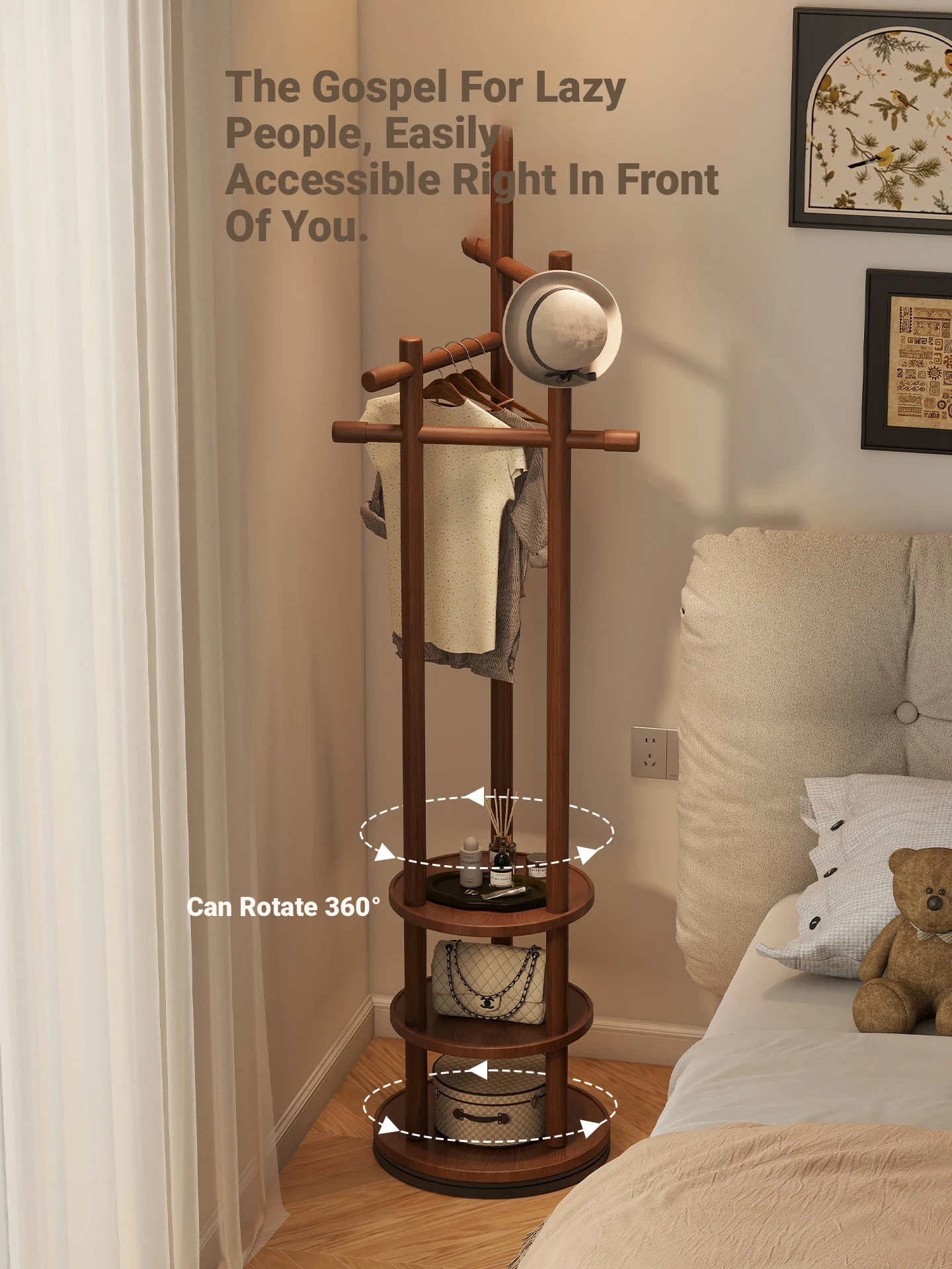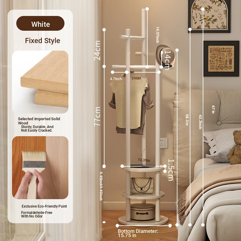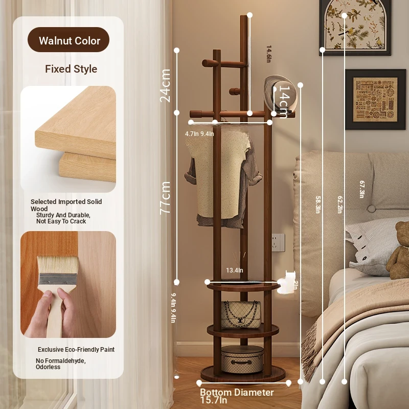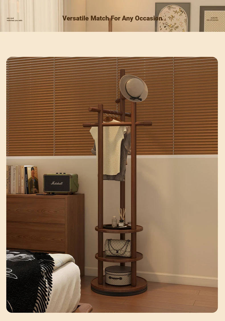 Compact Rotating Solid Wood Clothes Rack - Space-Saving Bedroom & Home Use Coat Stand, Perfect for Small Rooms and Bedside Storage