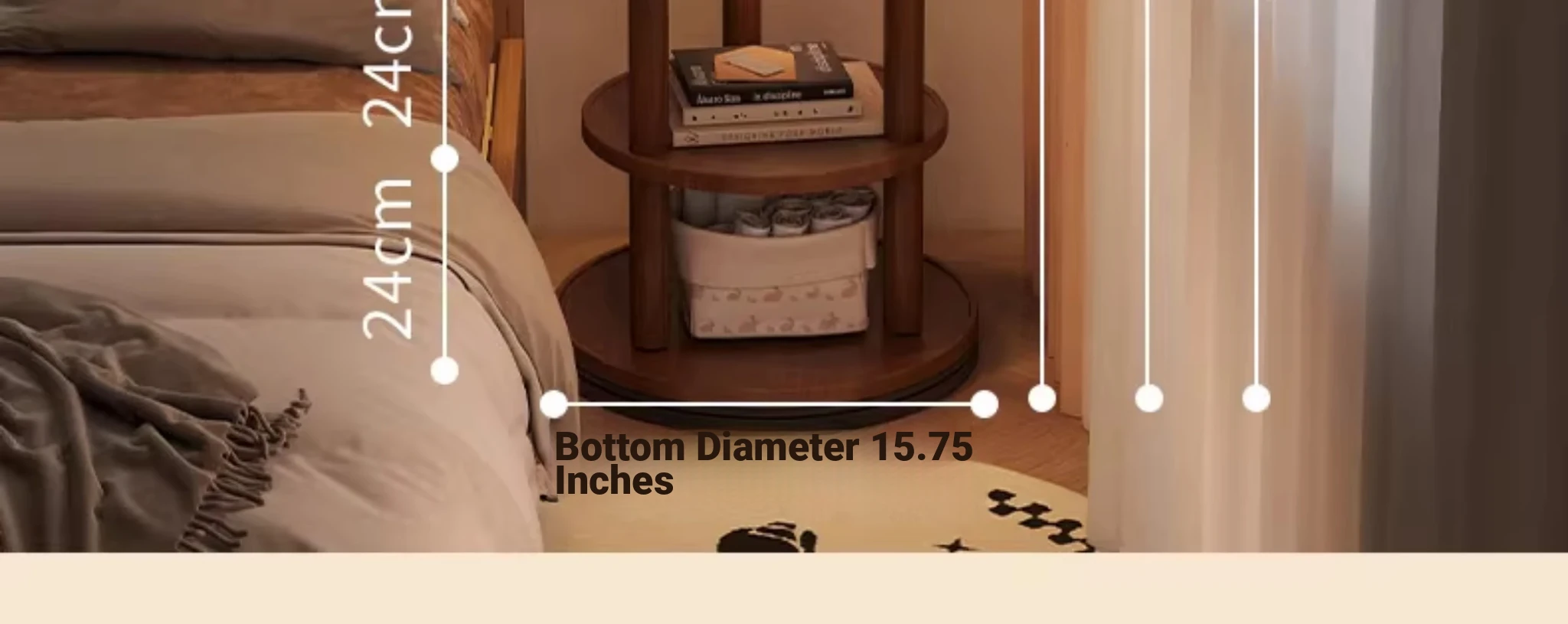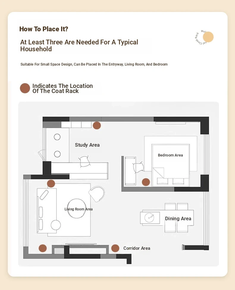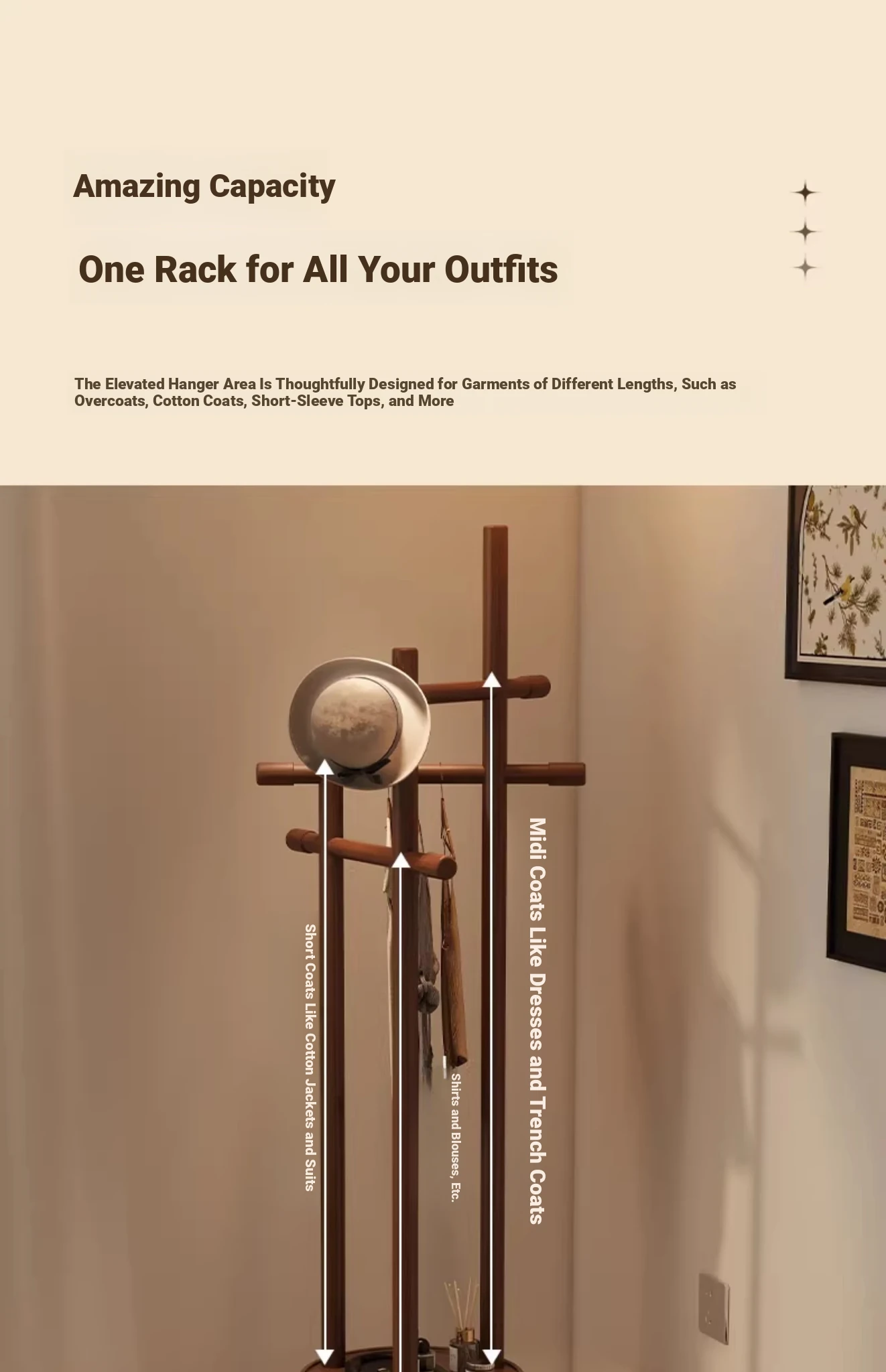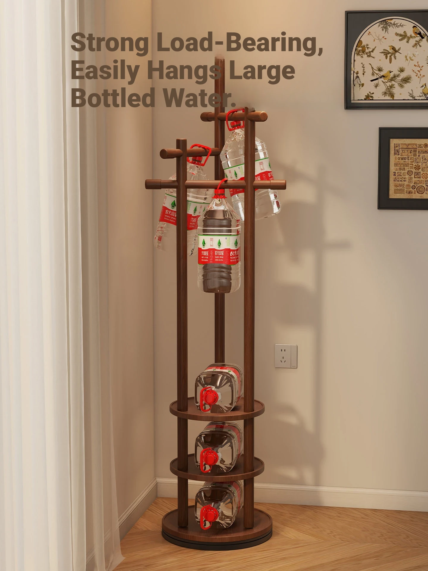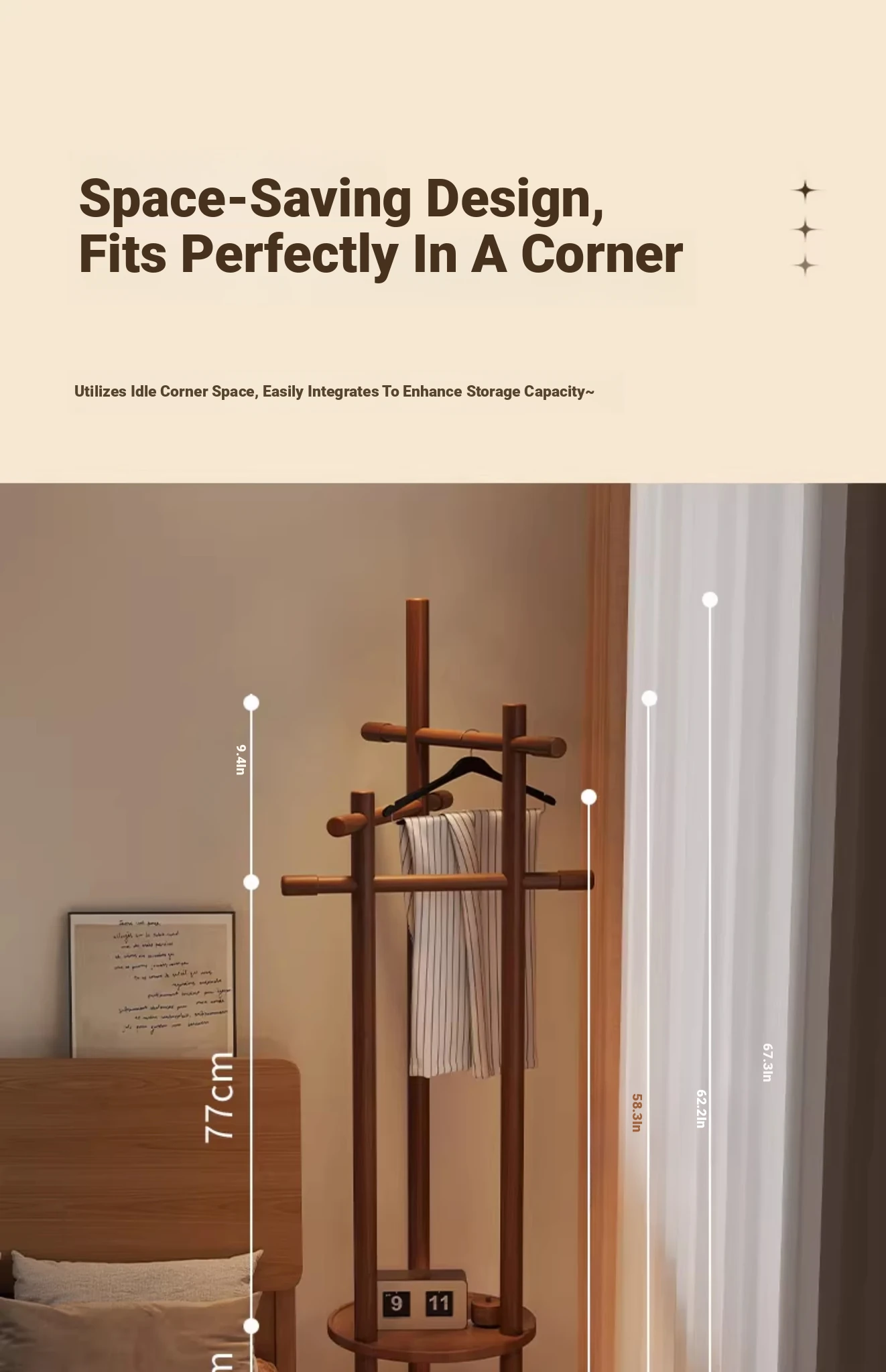 Compact Rotating Solid Wood Clothes Rack - Space-Saving Bedroom & Home Use Coat Stand, Perfect for Small Rooms and Bedside Storage