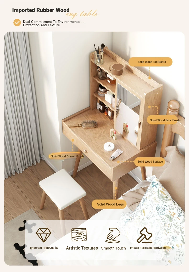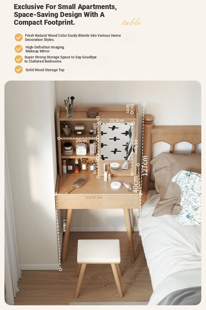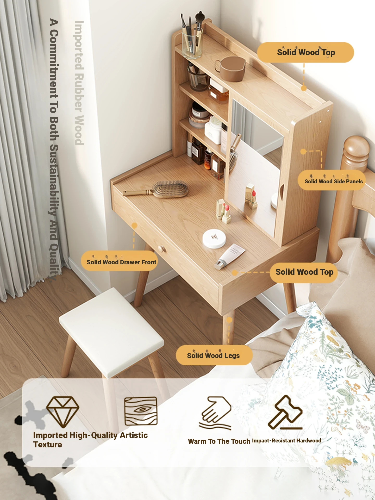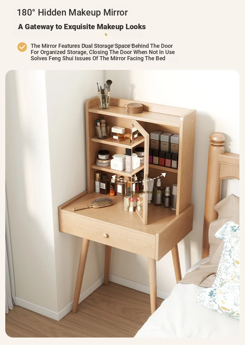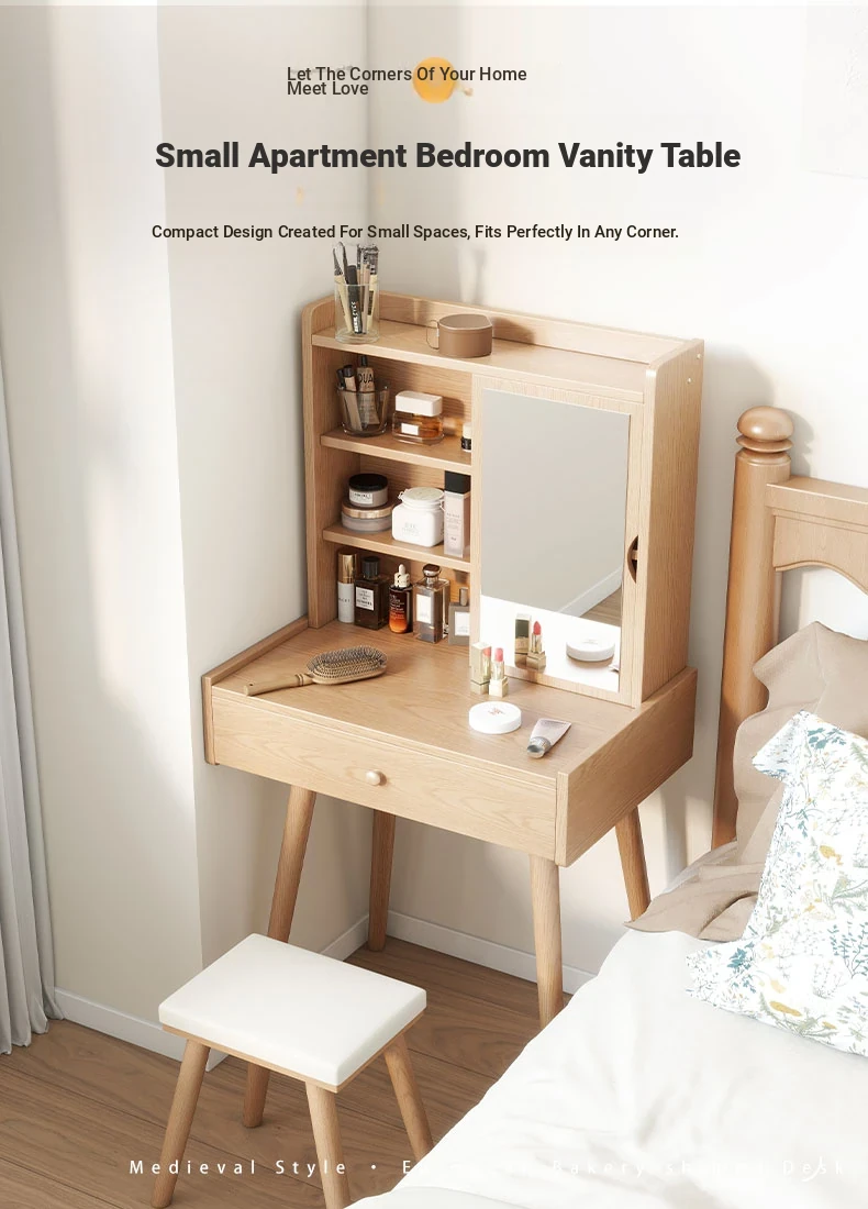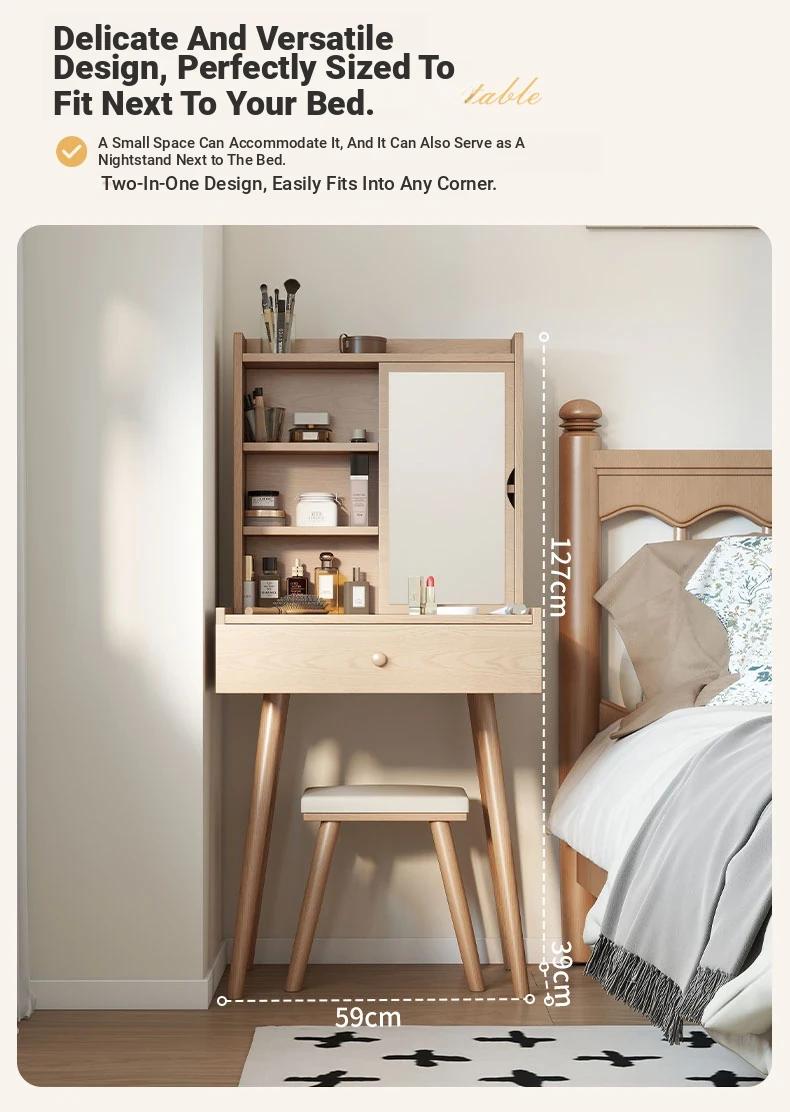 Compact Solid Wood Vanity Table with Mirror - Perfect for Small Bedrooms and Narrow Spaces, Stylish Makeup Desk for Cozy Homes