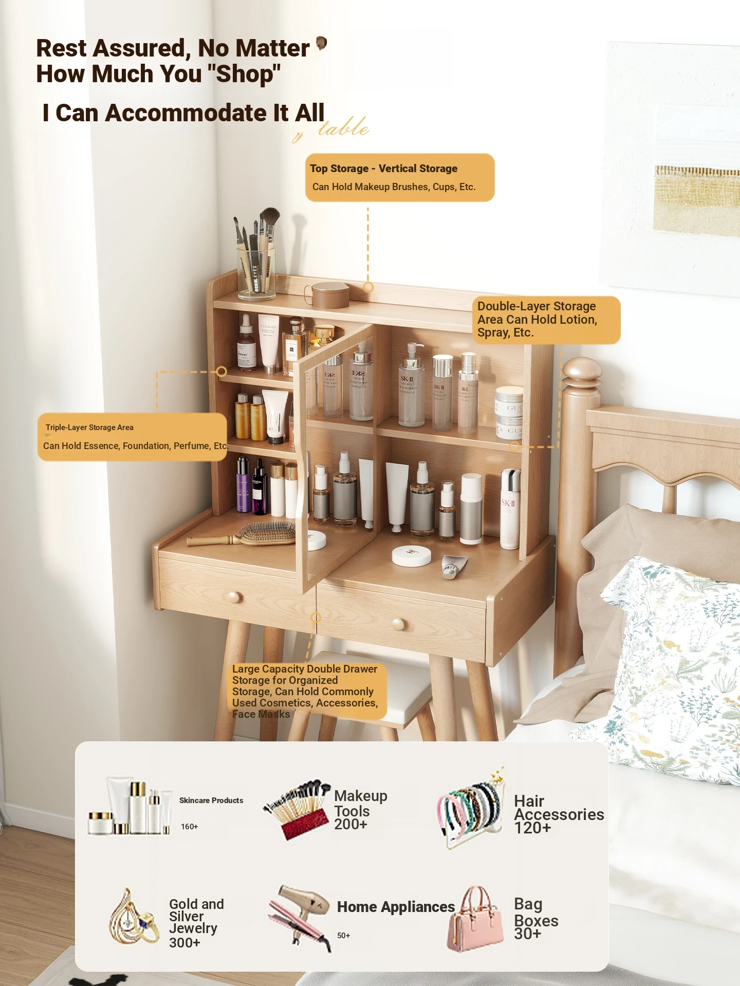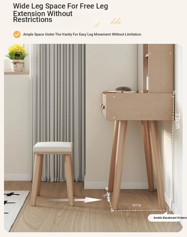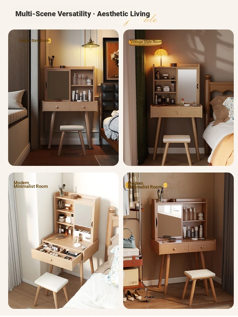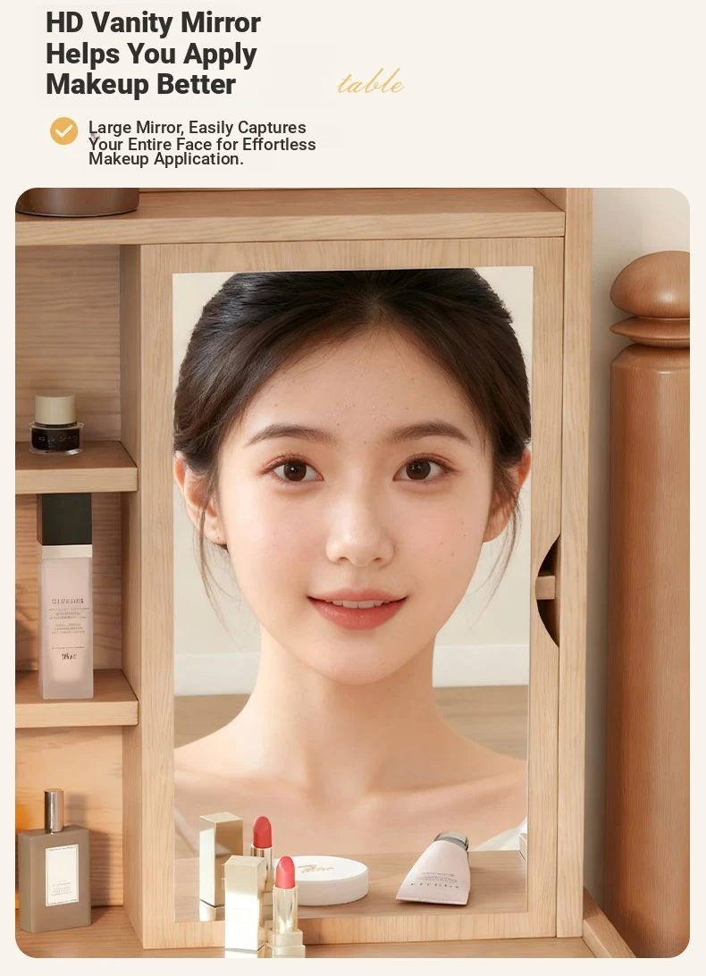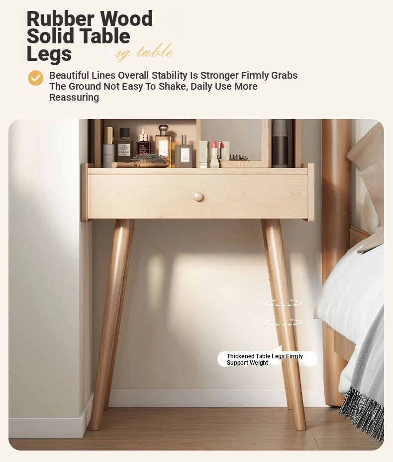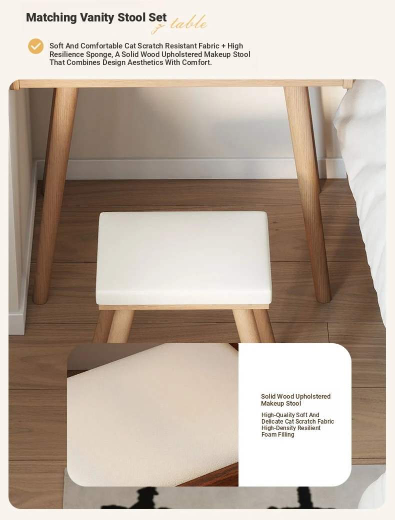 Compact Solid Wood Vanity Table with Mirror - Perfect for Small Bedrooms and Narrow Spaces, Stylish Makeup Desk for Cozy Homes