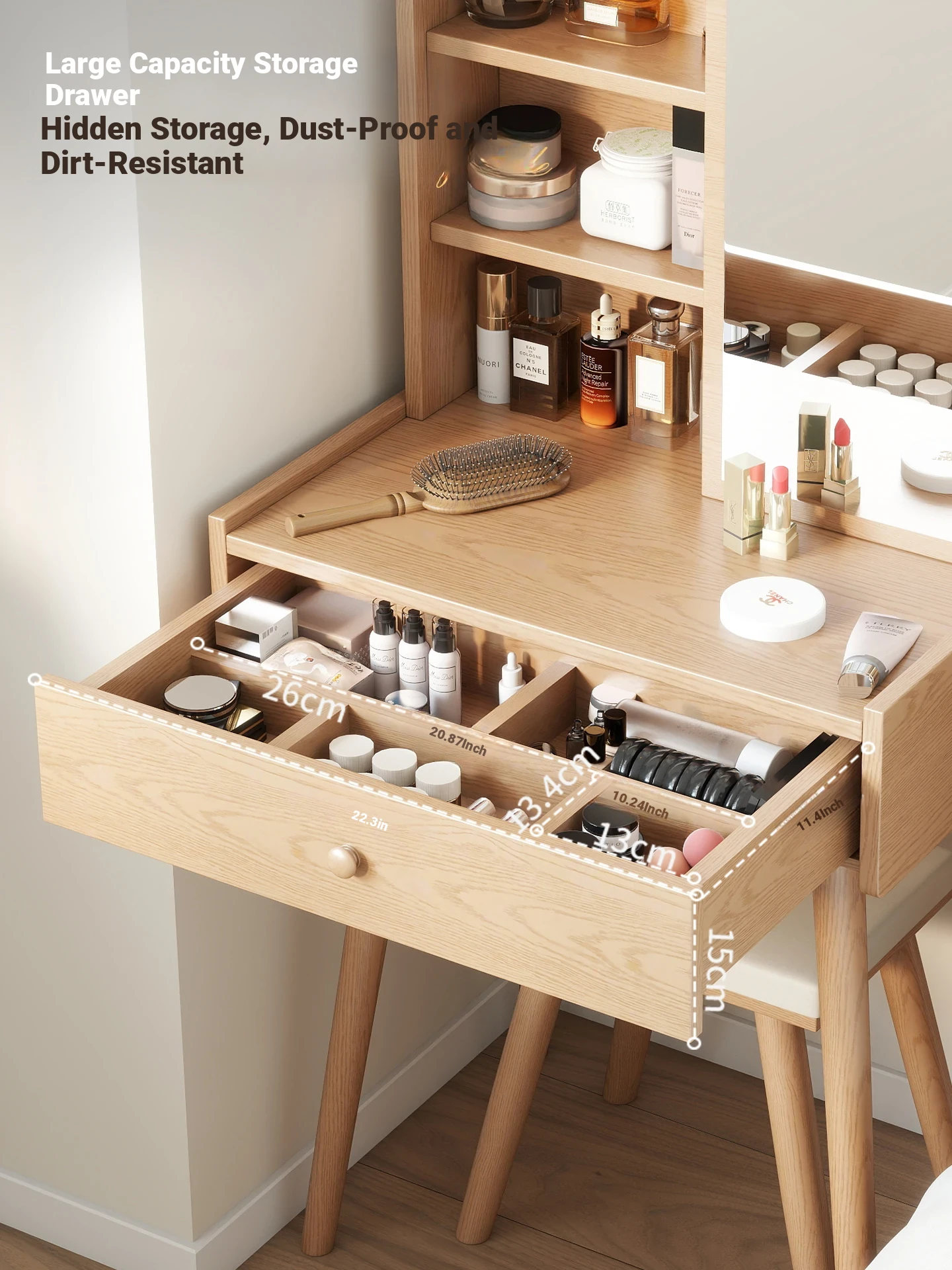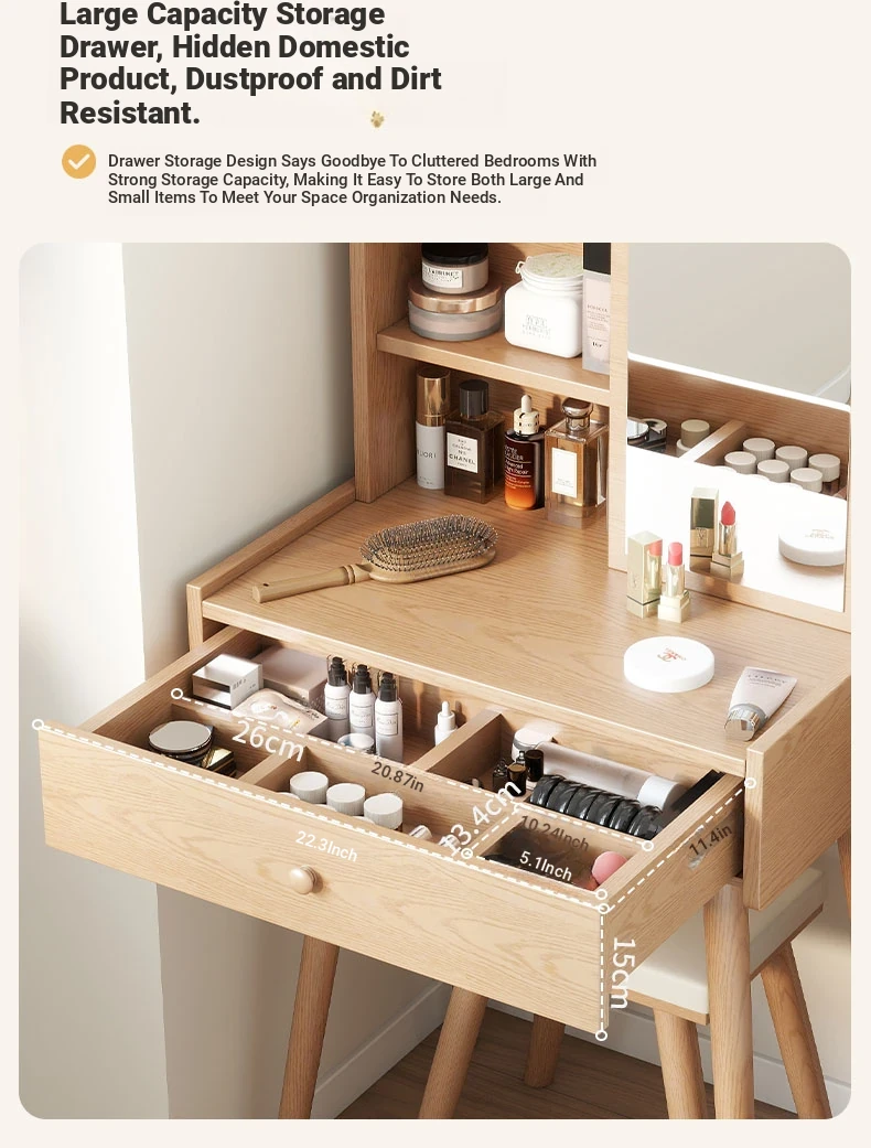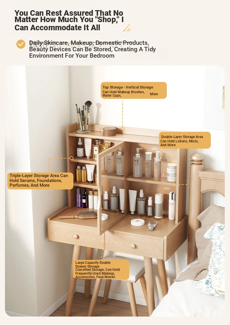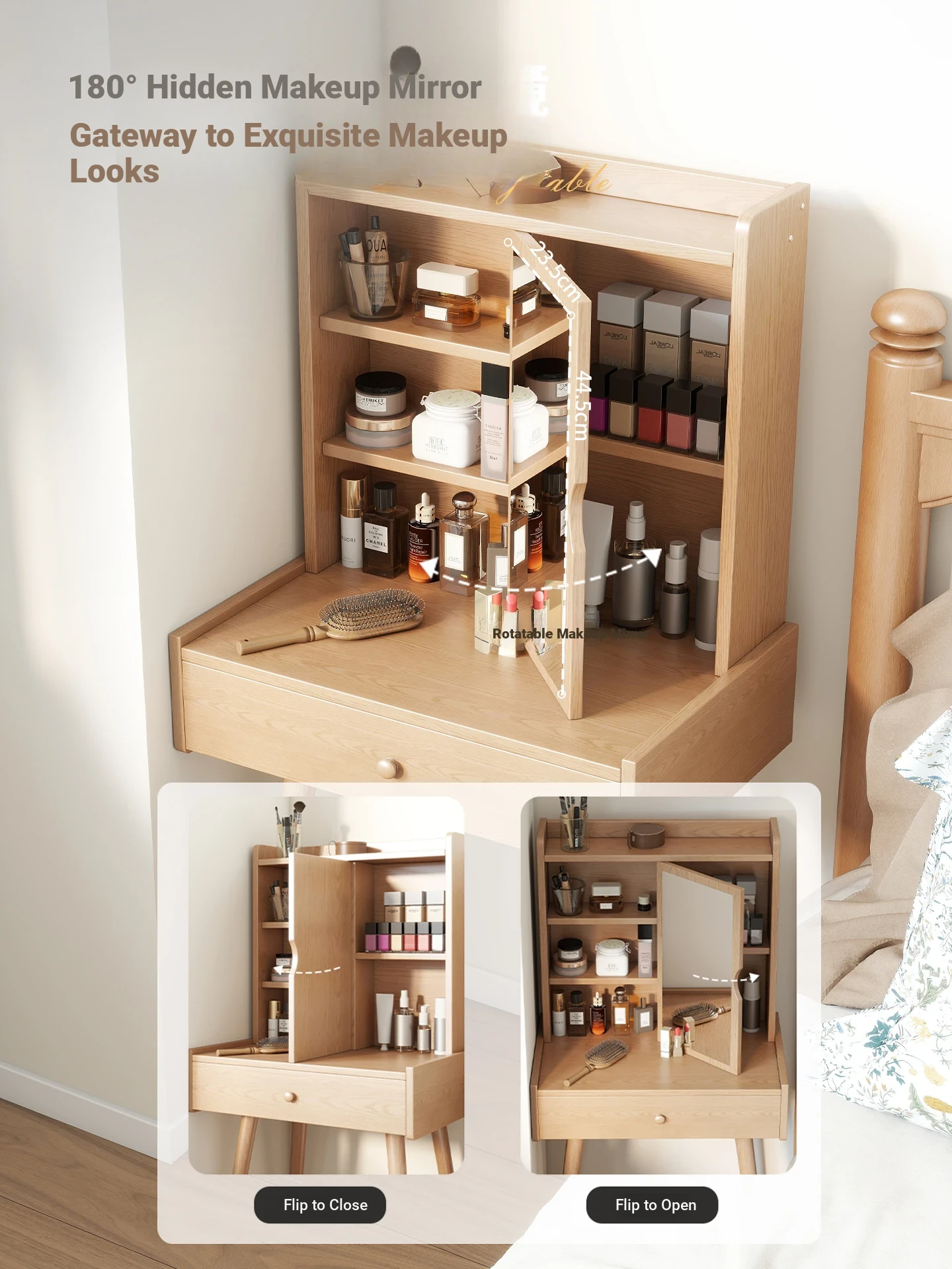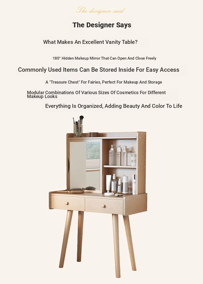 Compact Solid Wood Vanity Table with Mirror - Perfect for Small Bedrooms and Narrow Spaces, Stylish Makeup Desk for Cozy Homes