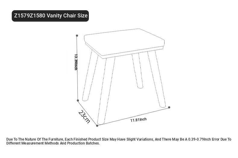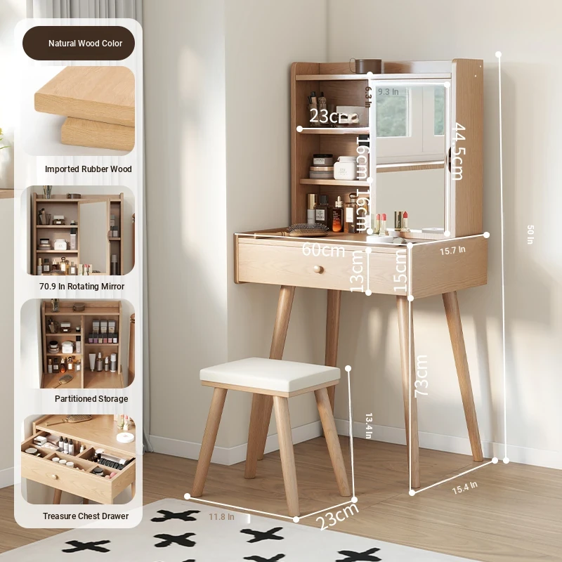 Table and Stool Set [Log Color 23.62in] 180 ° Flip Cosmetic Mirror | Fas Rubber Wood