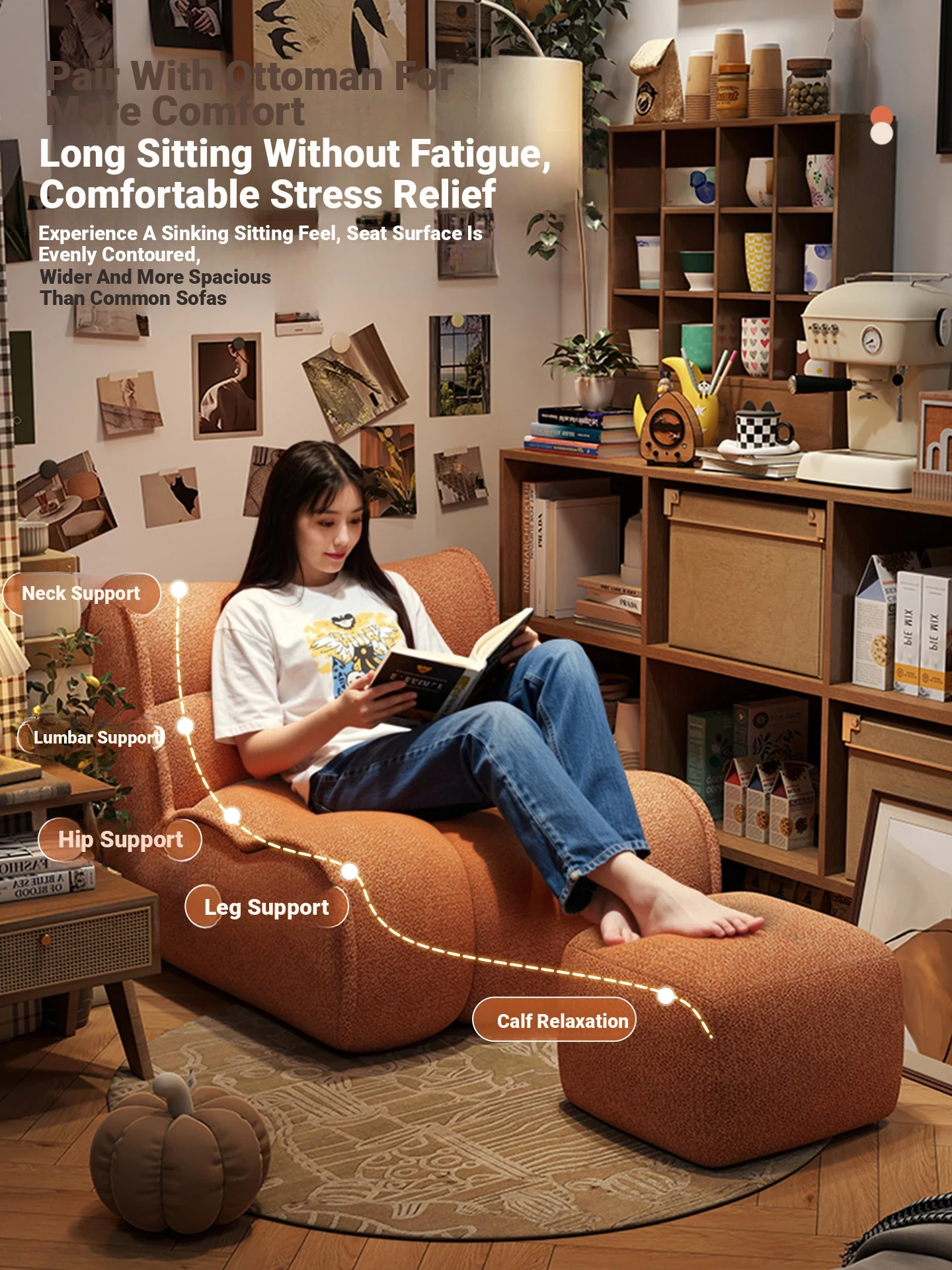 Cozy Caterpillar Lazy Sofa Chair - Versatile Lounger for Balcony & Bedroom, Perfect for Relaxing or Napping, Compact Design for Small Spaces