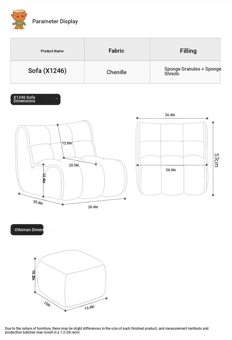 【Skin-Friendly Chenille】Off-White + Footrest