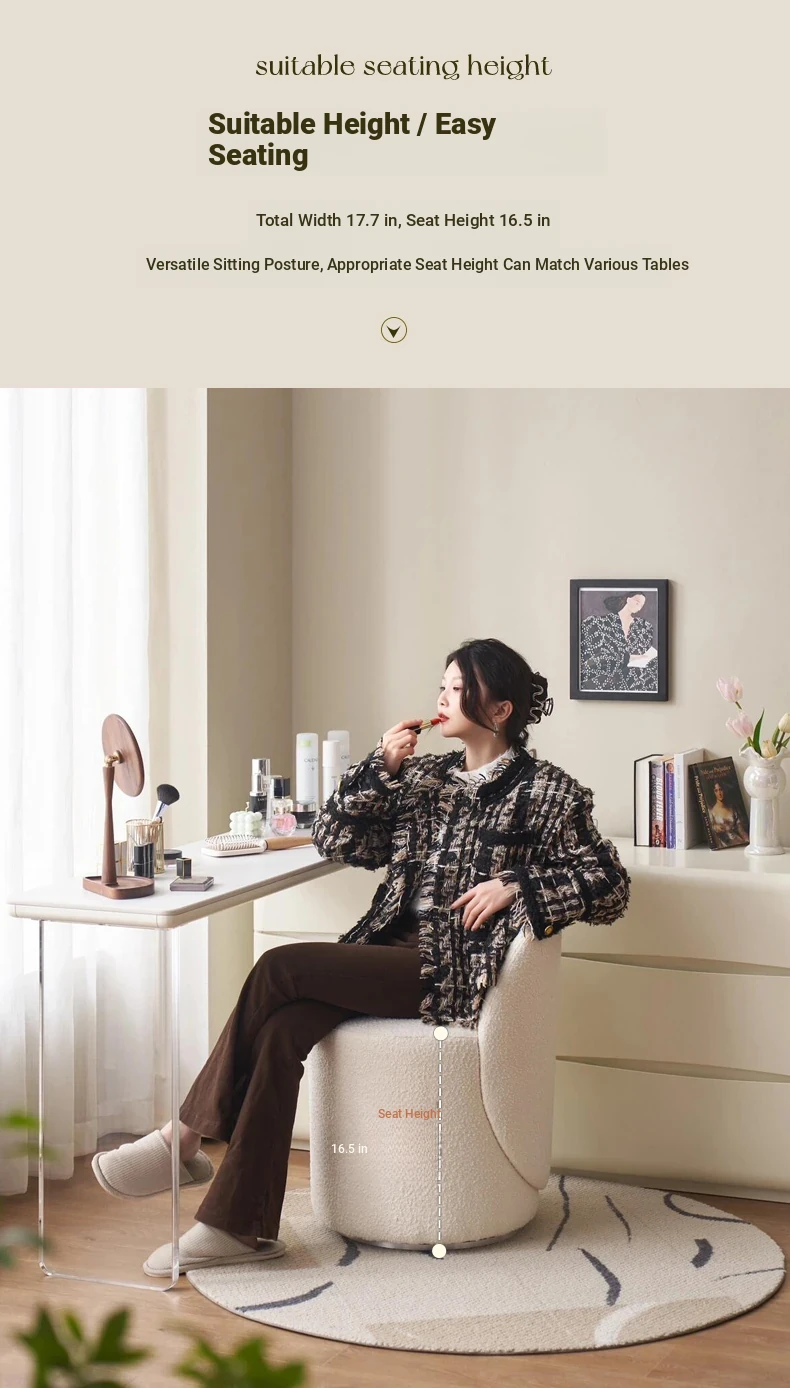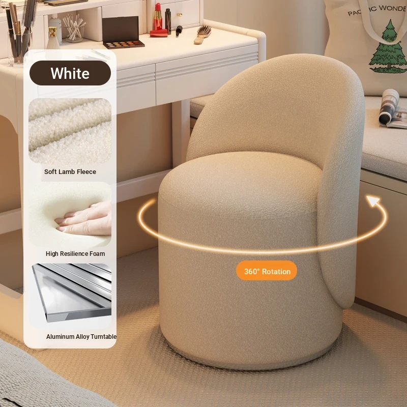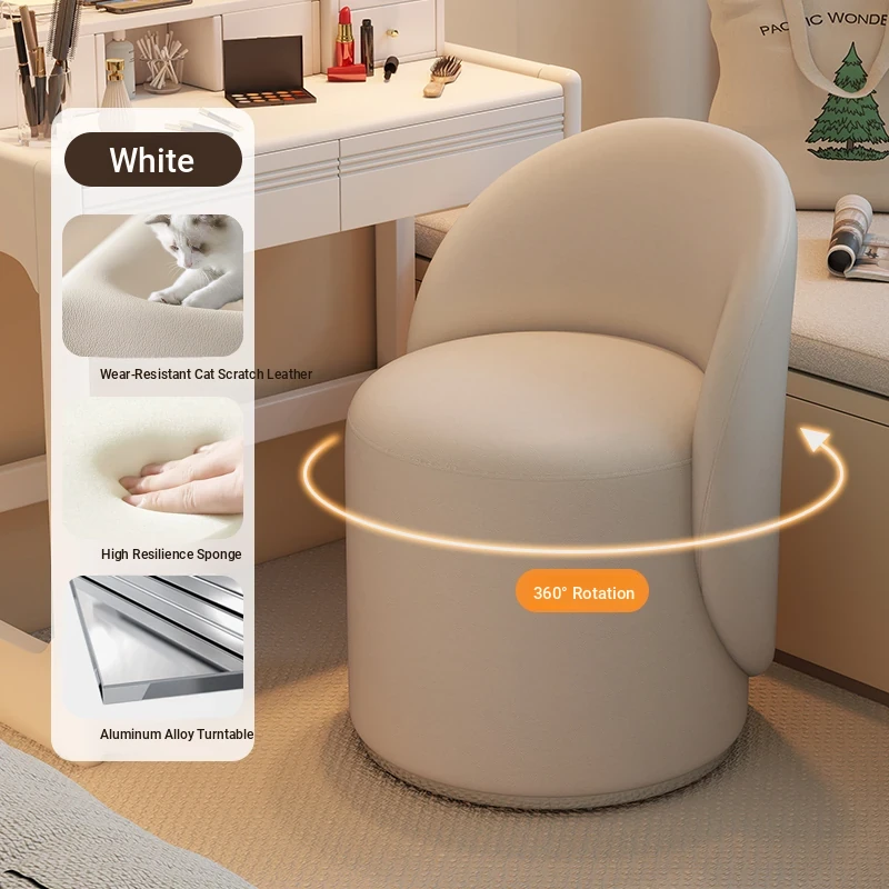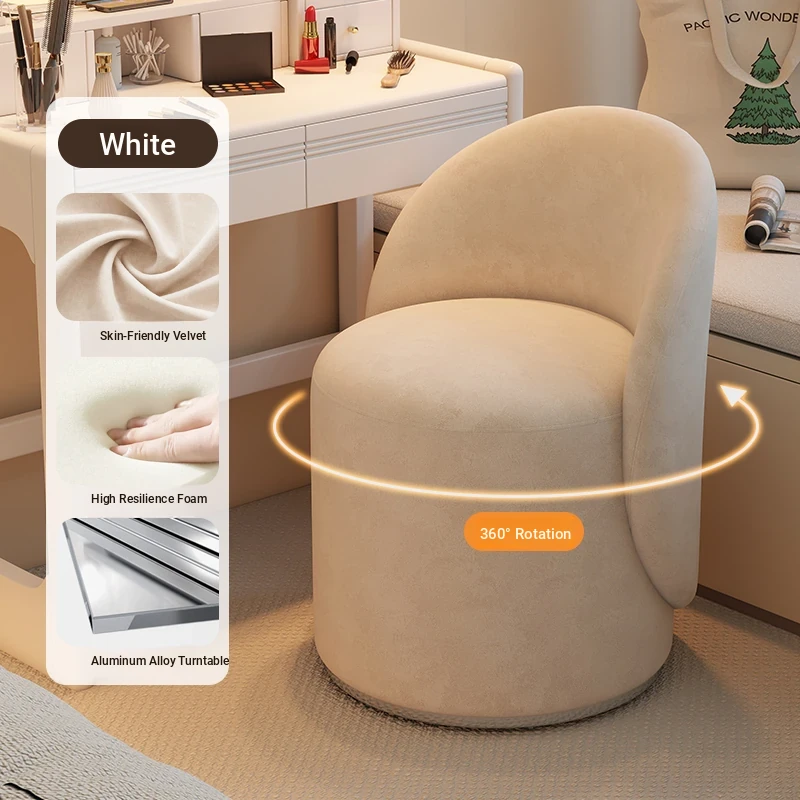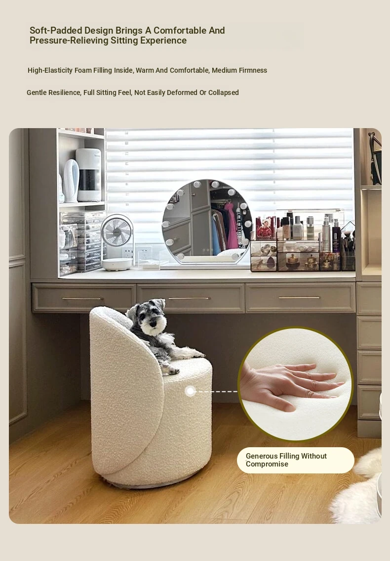 Creamy Chic Vanity Stool for Home – Elegant Rotating Makeup Chair for Women’s Bedrooms, Perfect for Your Glamorous Dressing Table!