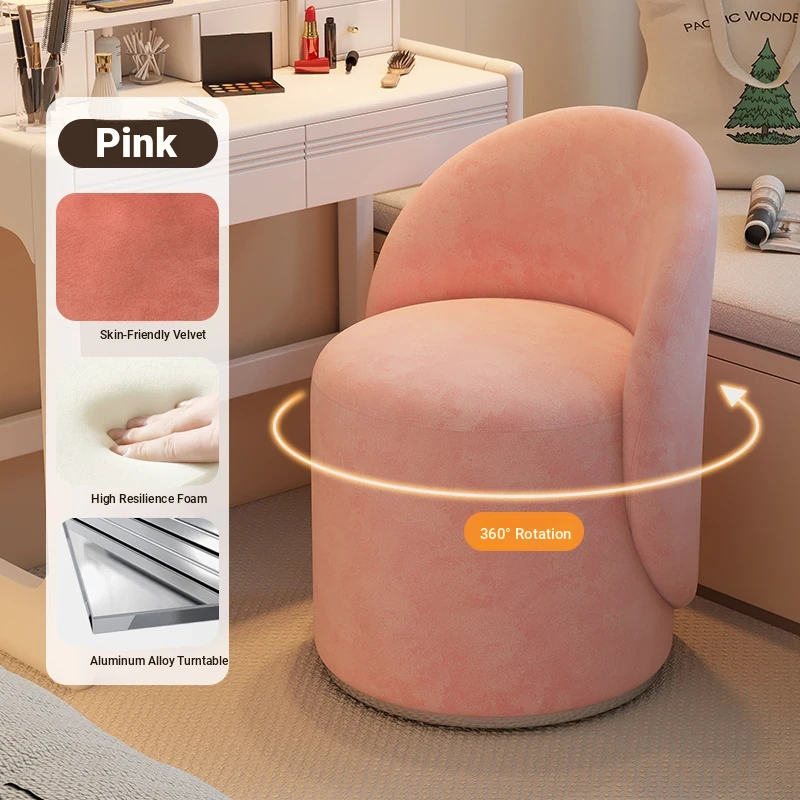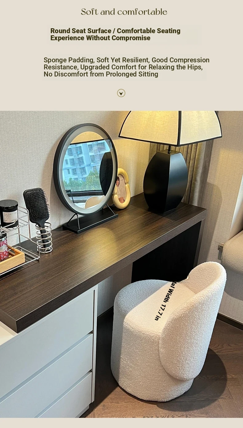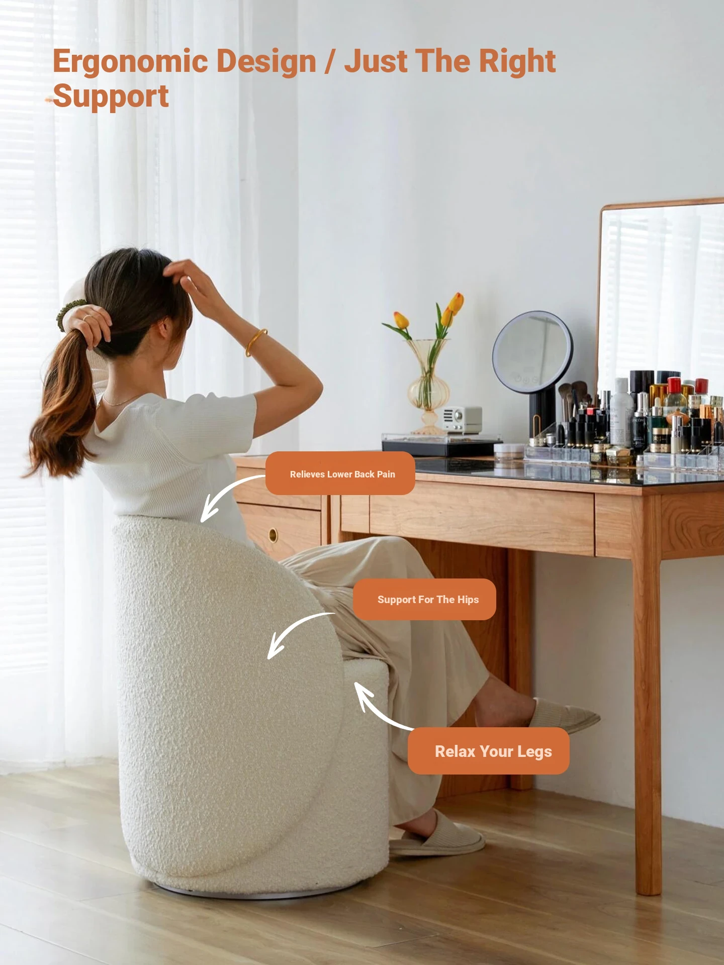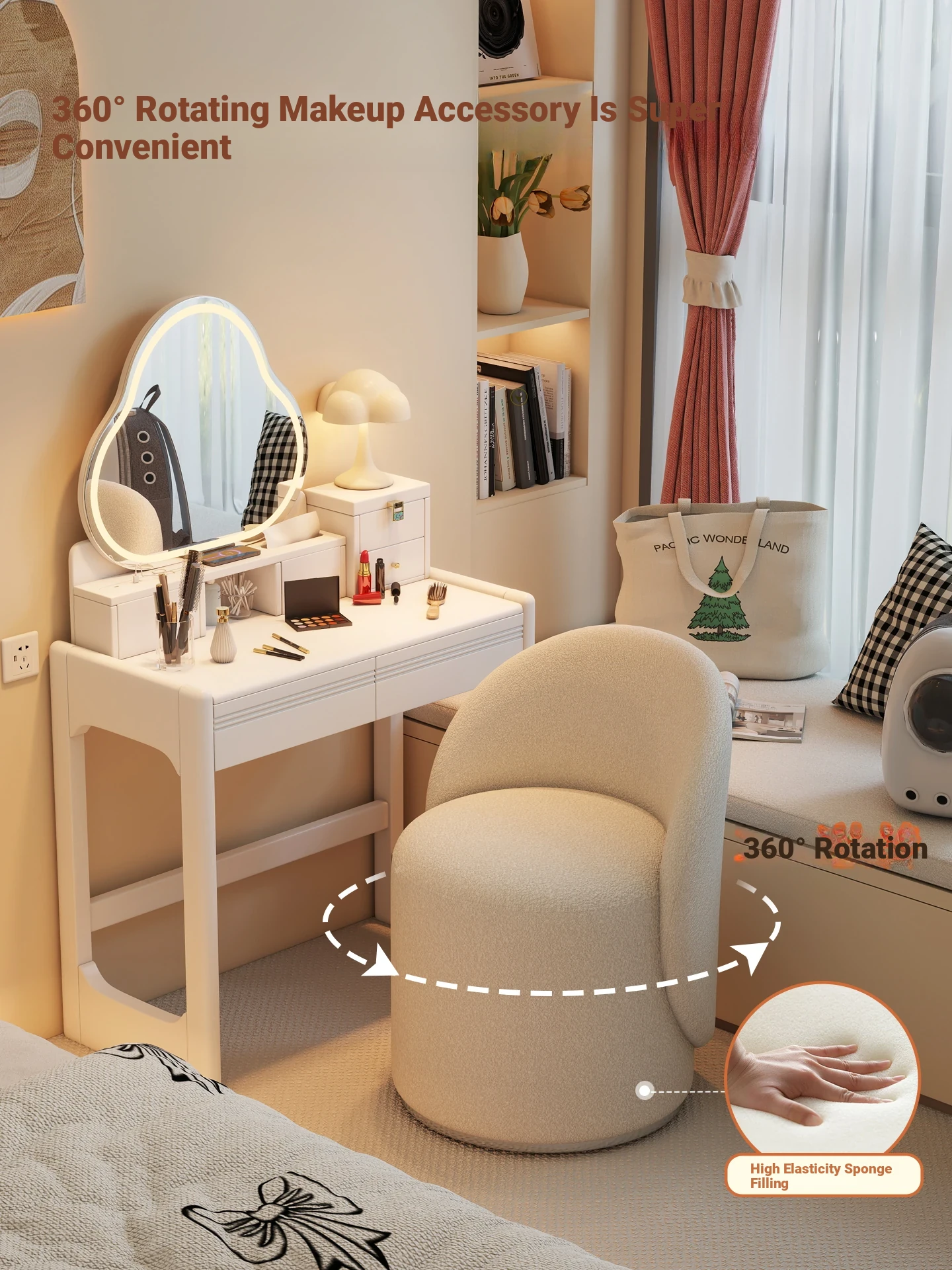 Creamy Chic Vanity Stool for Home – Elegant Rotating Makeup Chair for Women’s Bedrooms, Perfect for Your Glamorous Dressing Table!