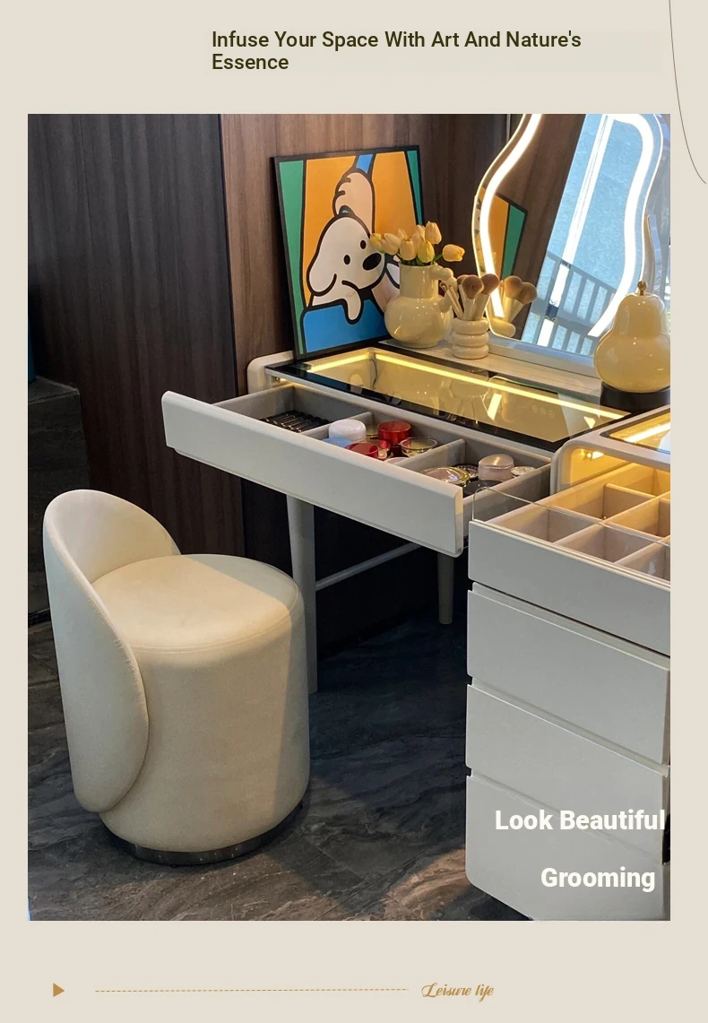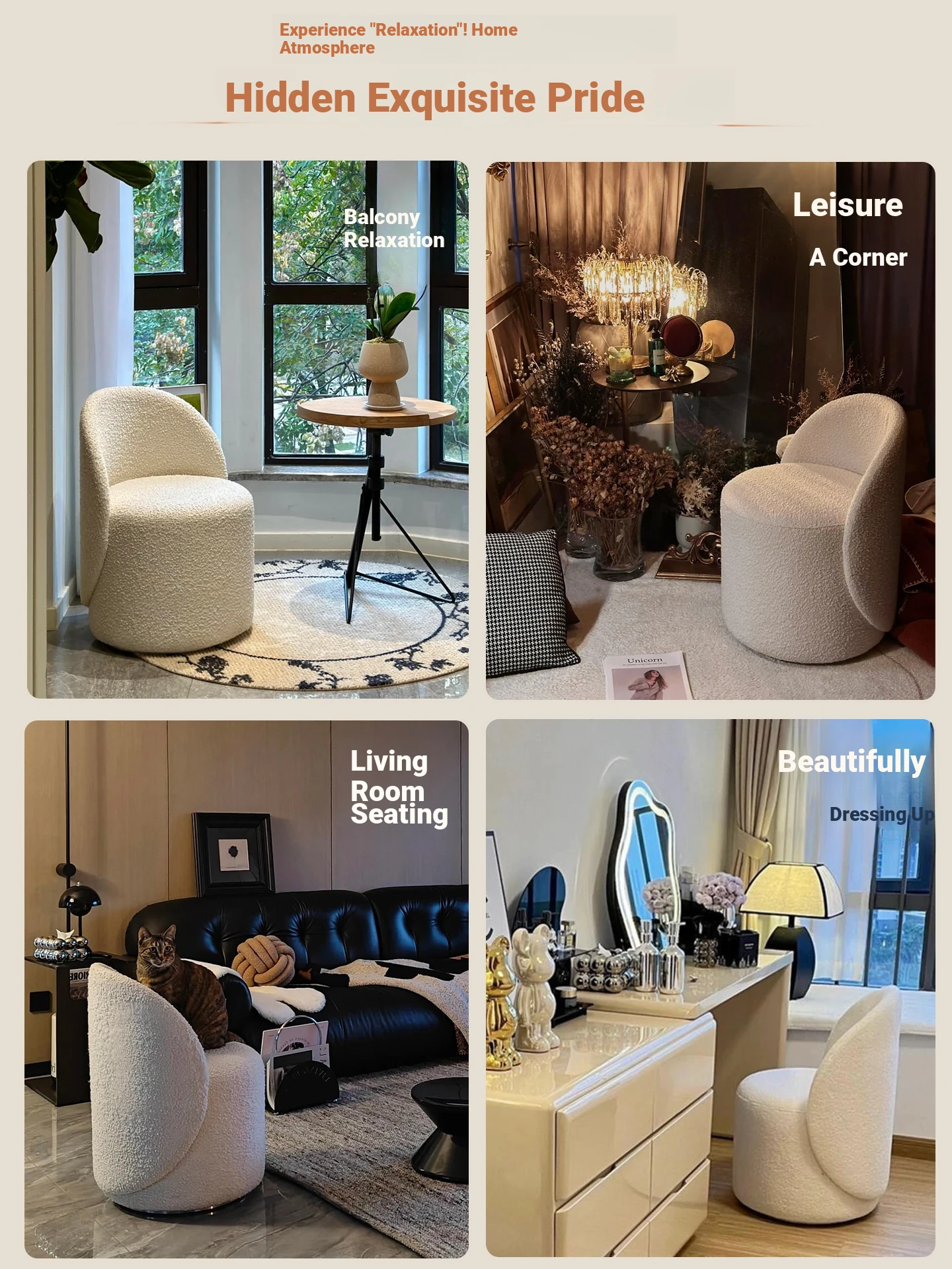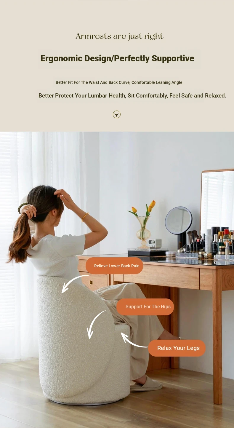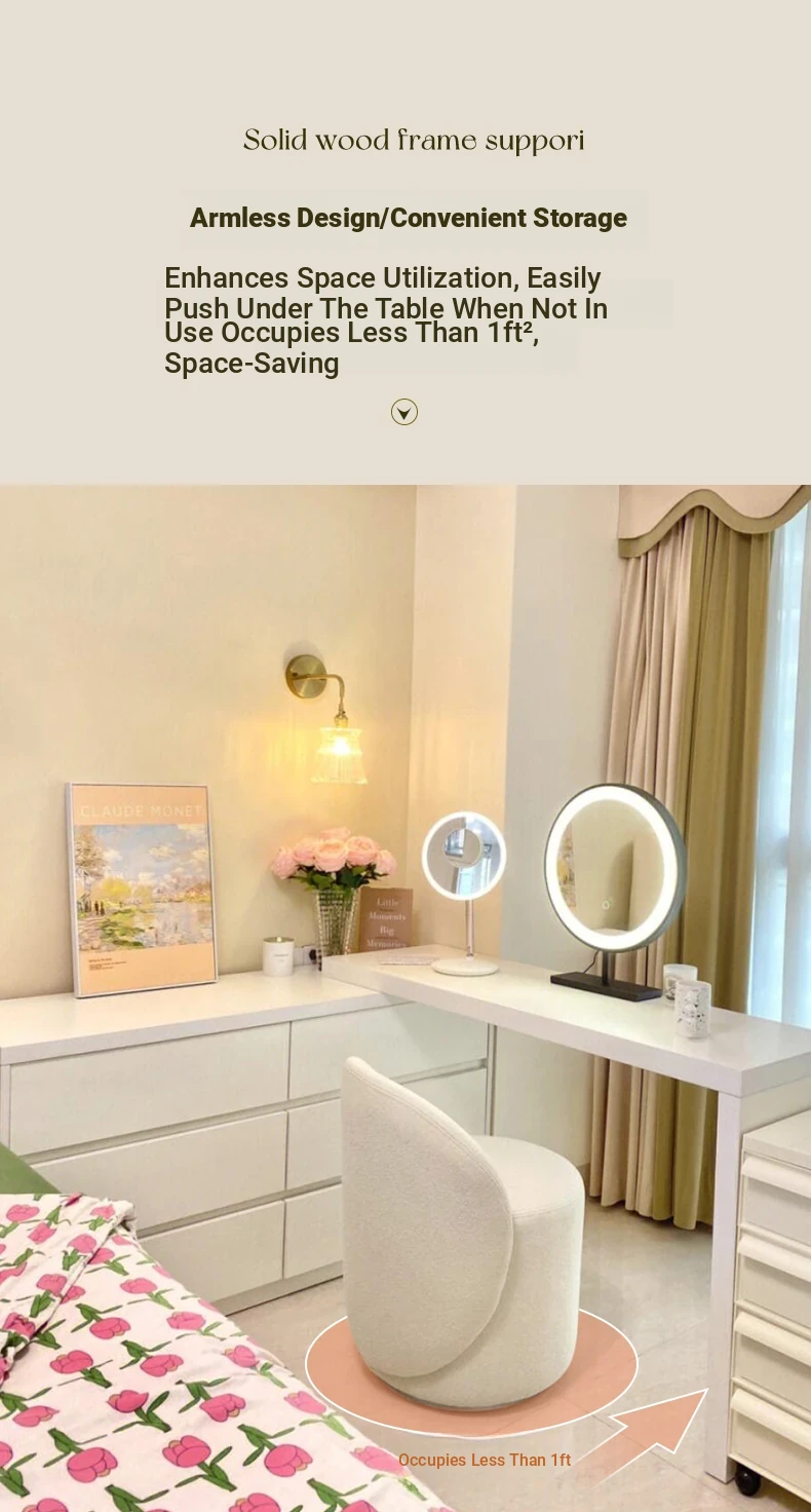 Creamy Chic Vanity Stool for Home – Elegant Rotating Makeup Chair for Women’s Bedrooms, Perfect for Your Glamorous Dressing Table!
