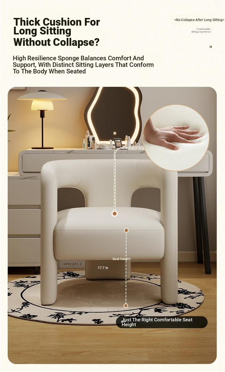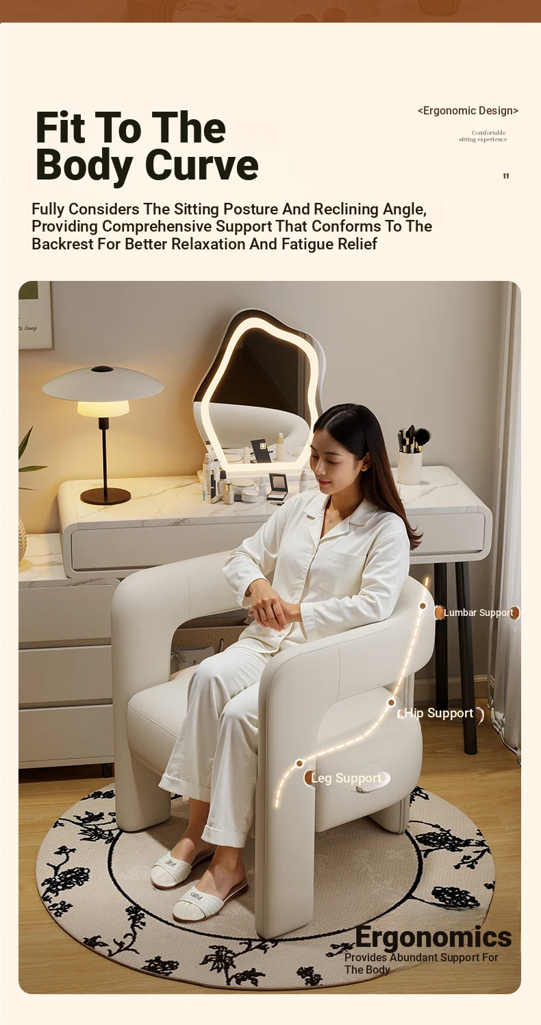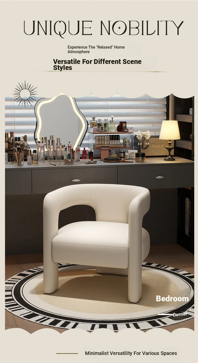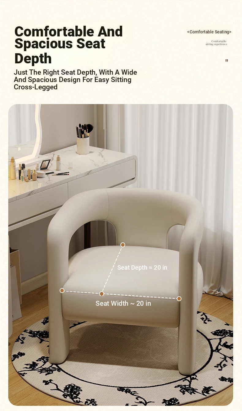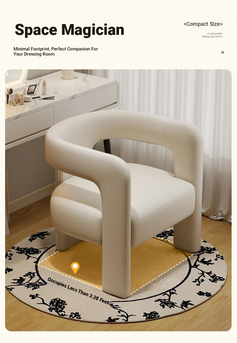 Creamy Luxe Makeup Chair - Elegant Single Sofa for Women’s Bedroom, Premium Vanity Stool, Stylish Dressing Chair, Perfect for Makeup and Conversations.