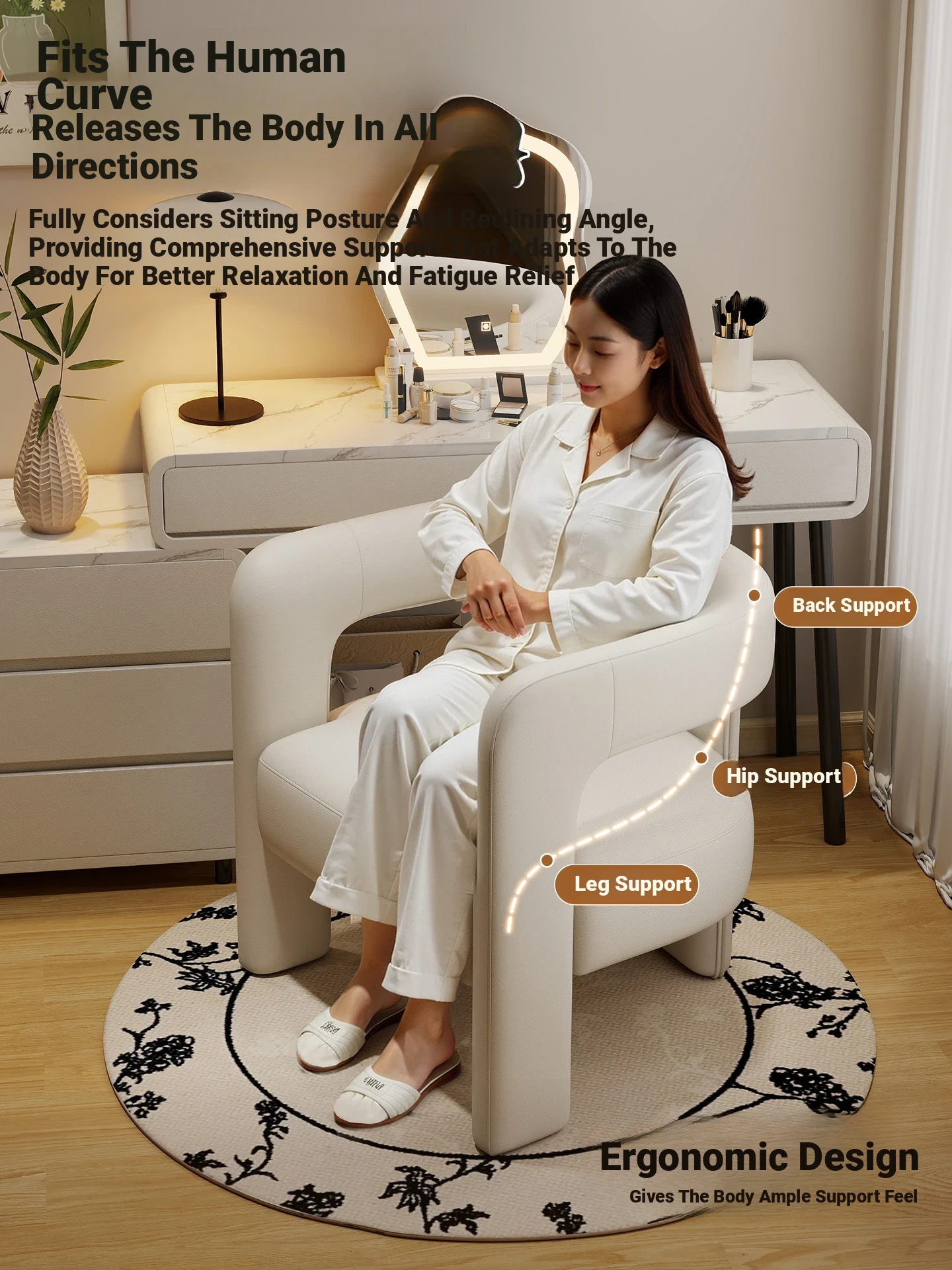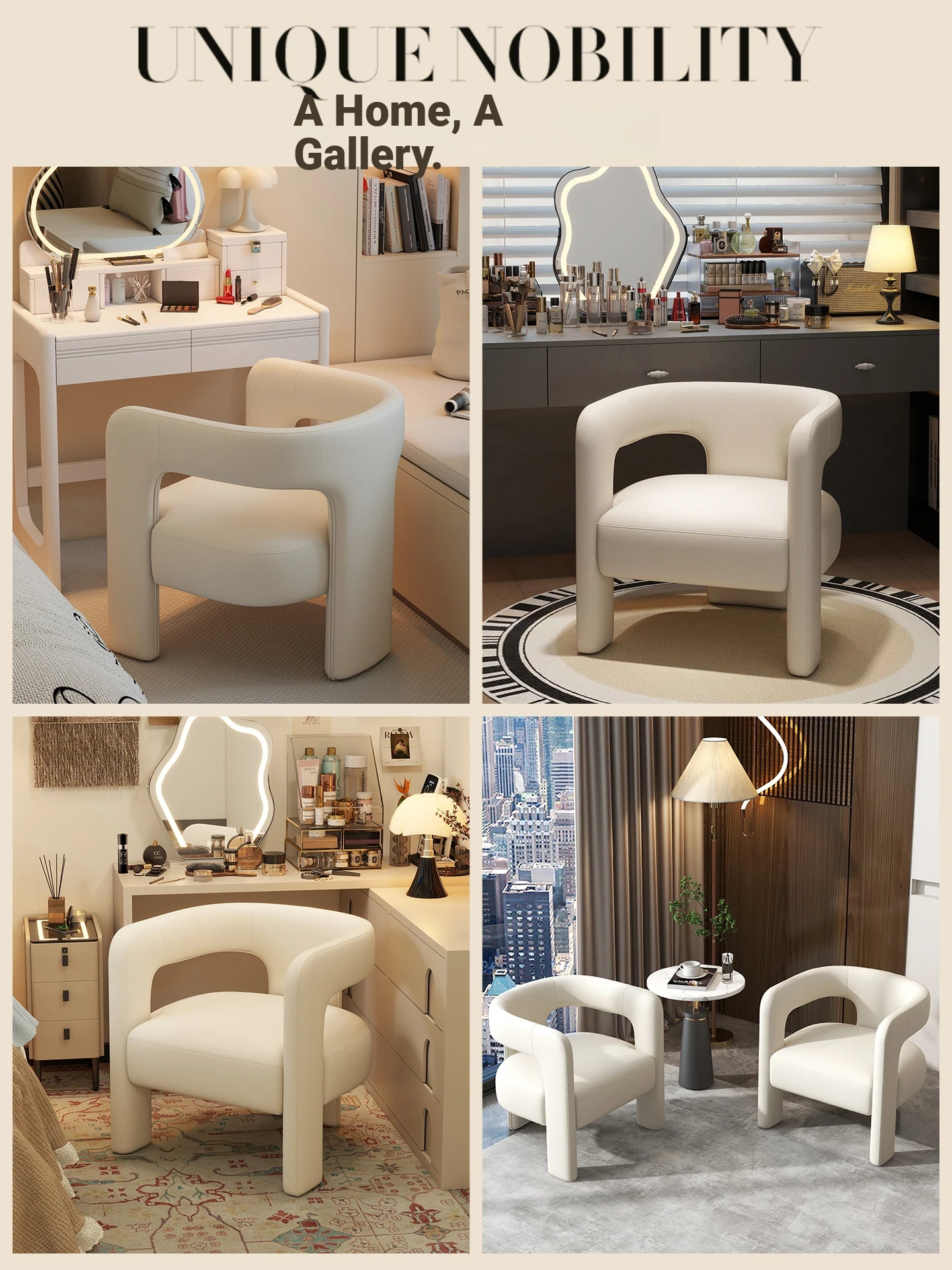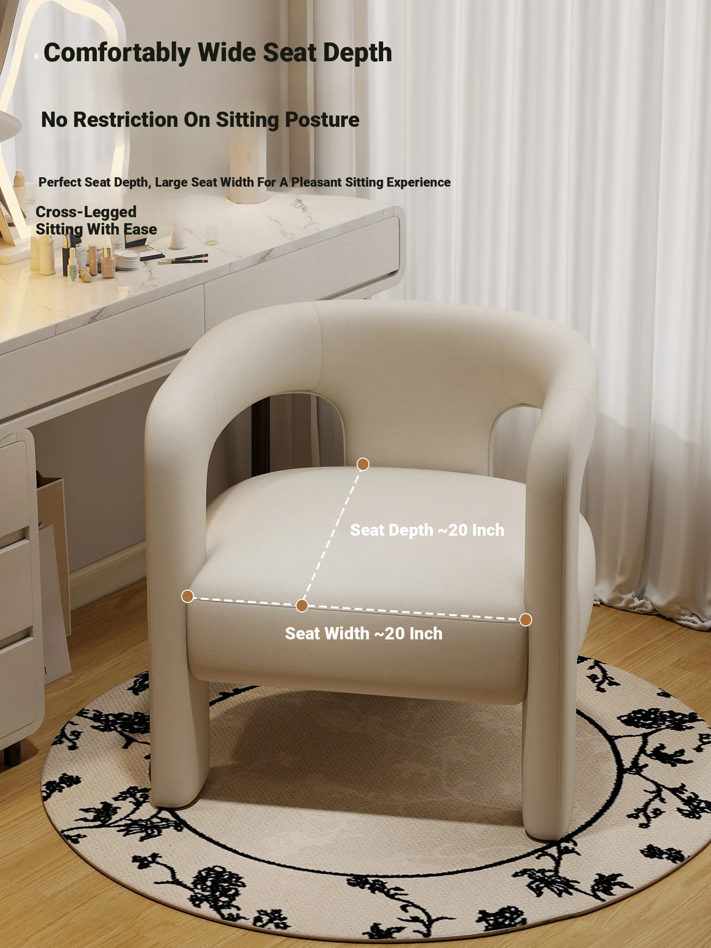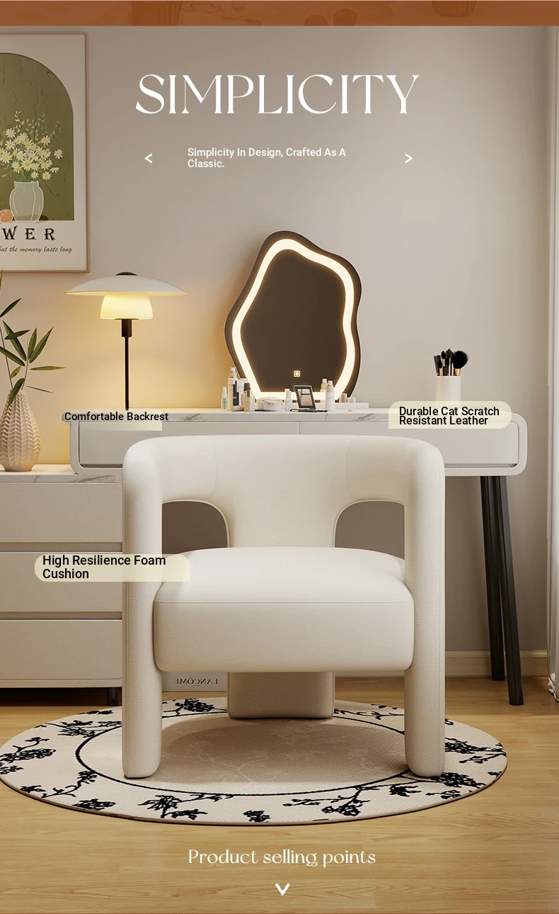 Creamy Luxe Makeup Chair - Elegant Single Sofa for Women’s Bedroom, Premium Vanity Stool, Stylish Dressing Chair, Perfect for Makeup and Conversations.
