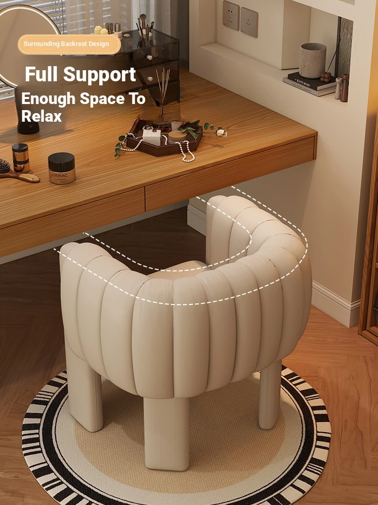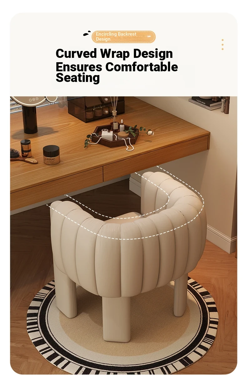 Elegant Makeup Stool for Girls - Chic Princess Vanity Chair with Backrest, Perfect for Bedrooms and Nail Art, Adding a Touch of Luxury to Your Grooming Space.