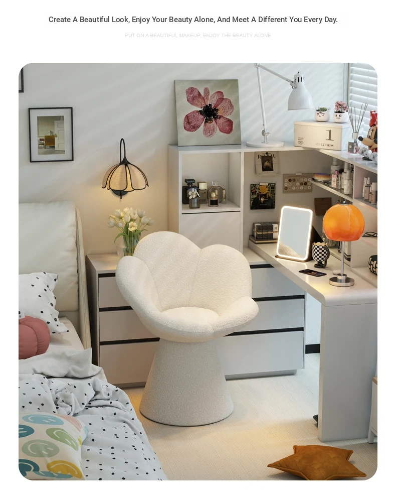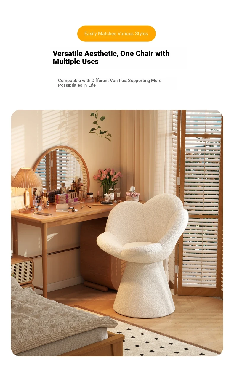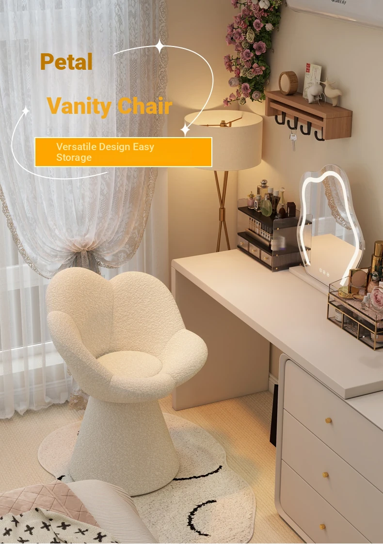 Elegant Makeup Stool for Girls - Stylish Vanity Chair with Petal Design, Perfect for Bedrooms and Nail Art. Embrace Luxury with Our Newest Collection!