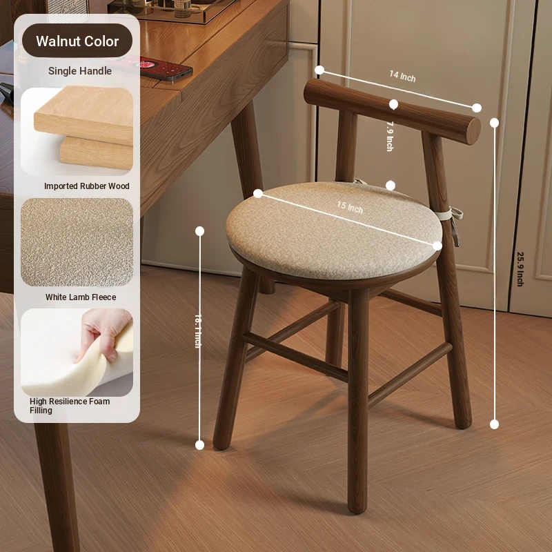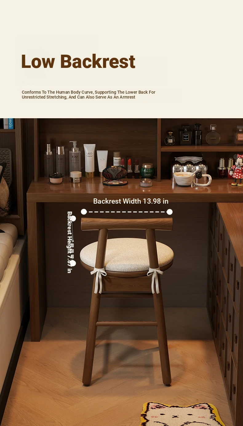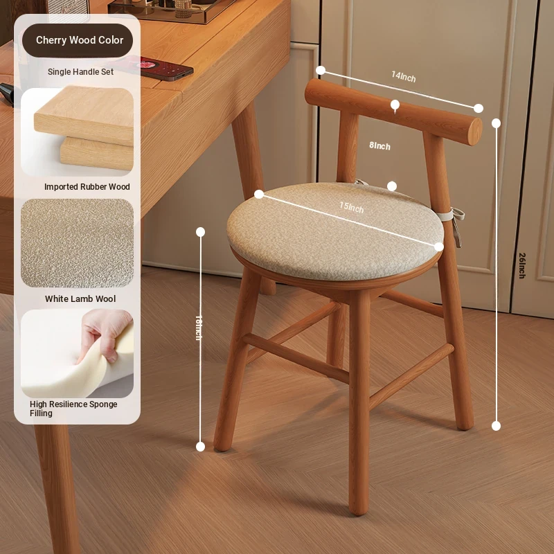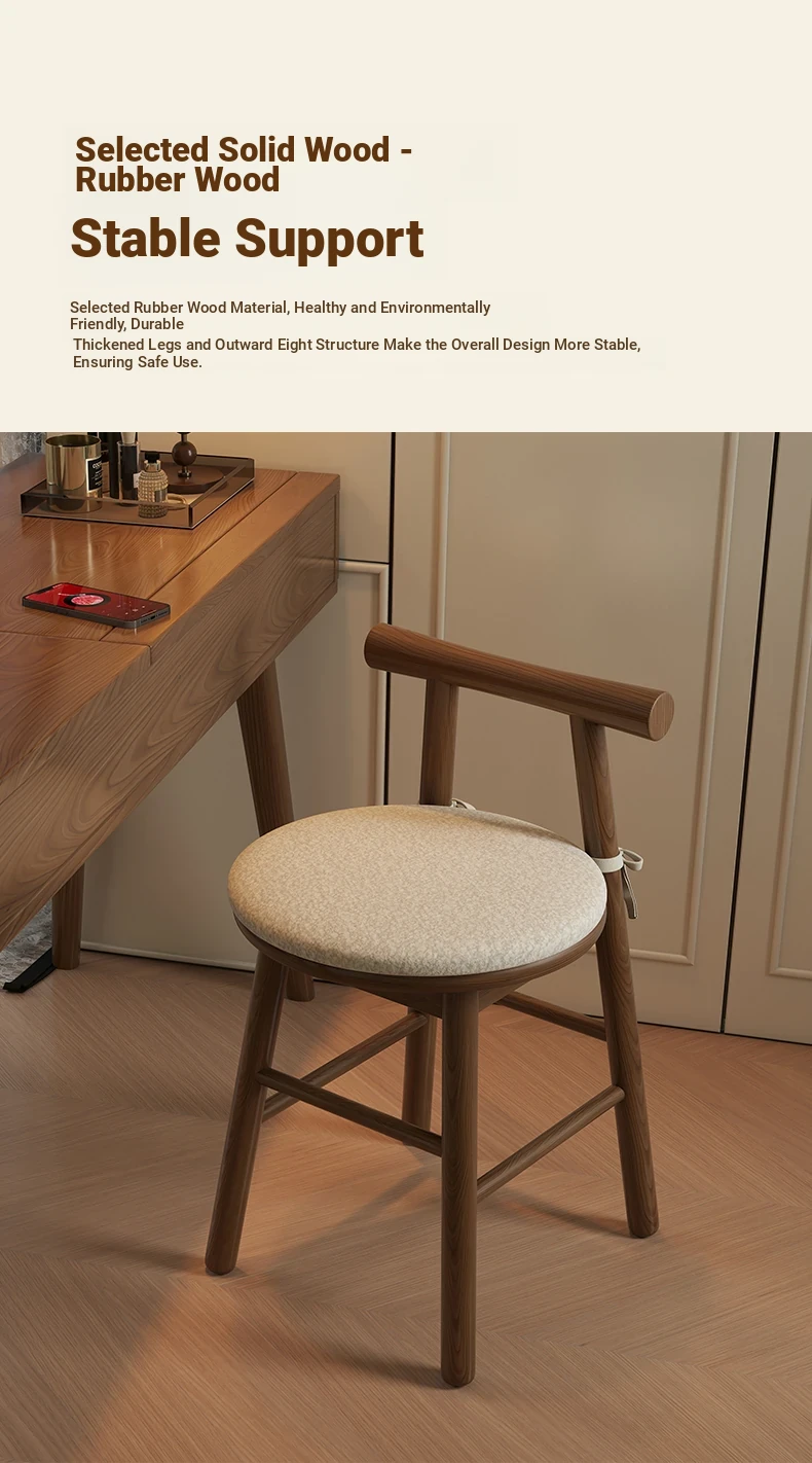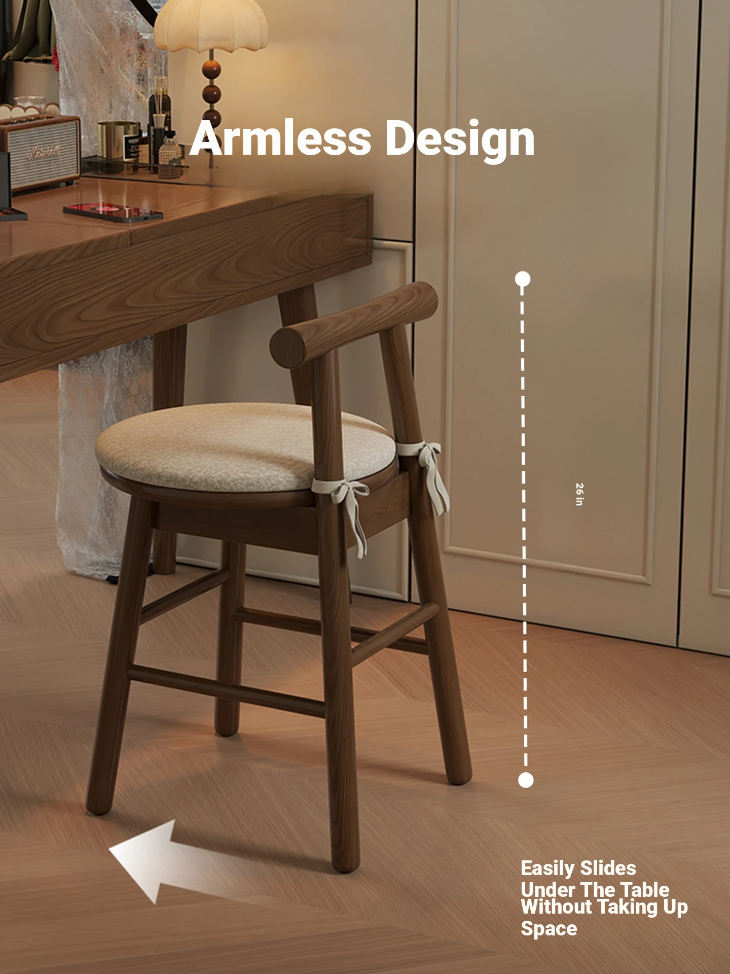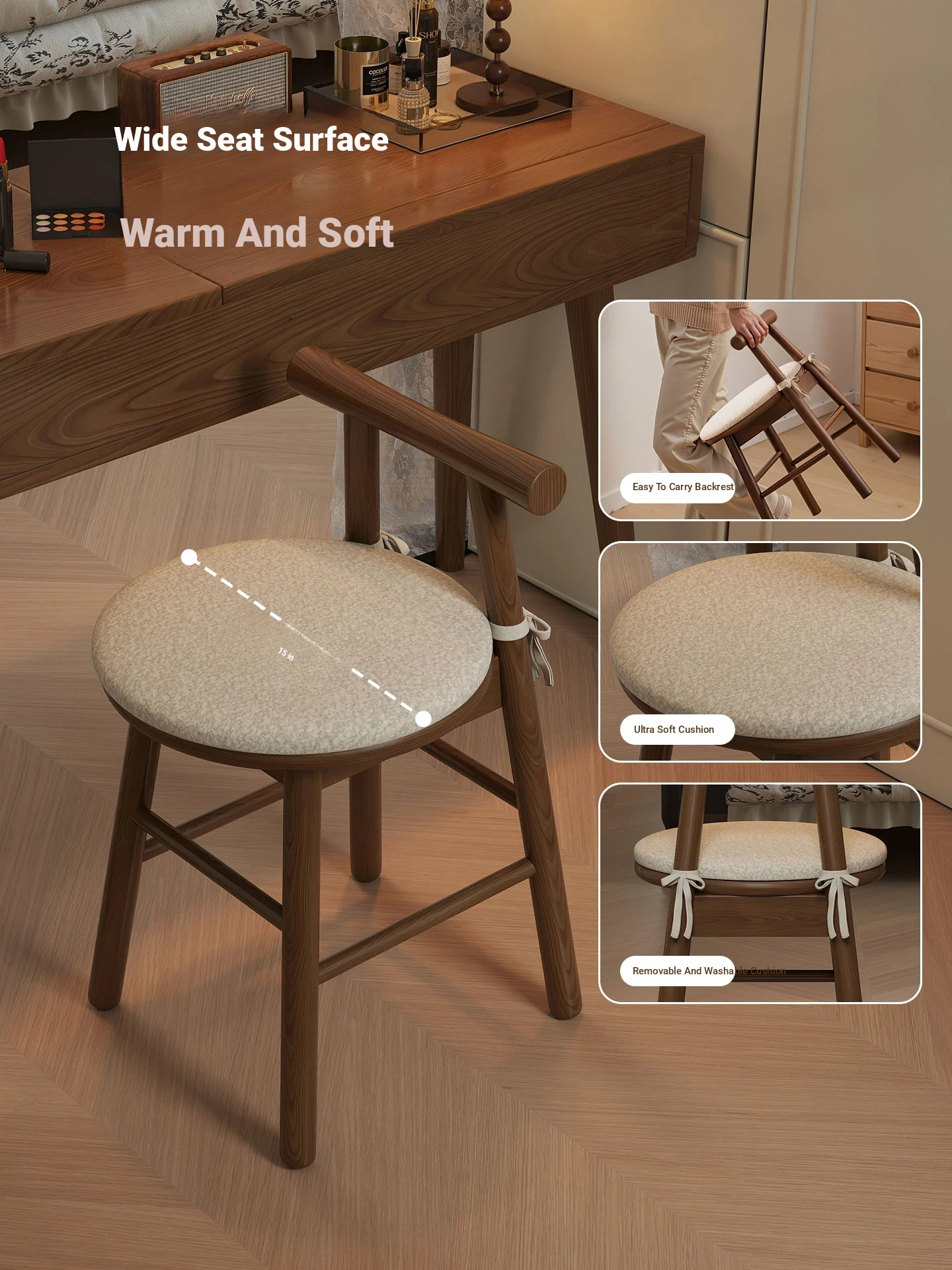 Elegant Makeup Stool with Backrest - Removable and Washable, Solid Wood Vanity Chair for Home Use, Perfect for Dressing Rooms and Boudoirs, Stylish Butterfly Design