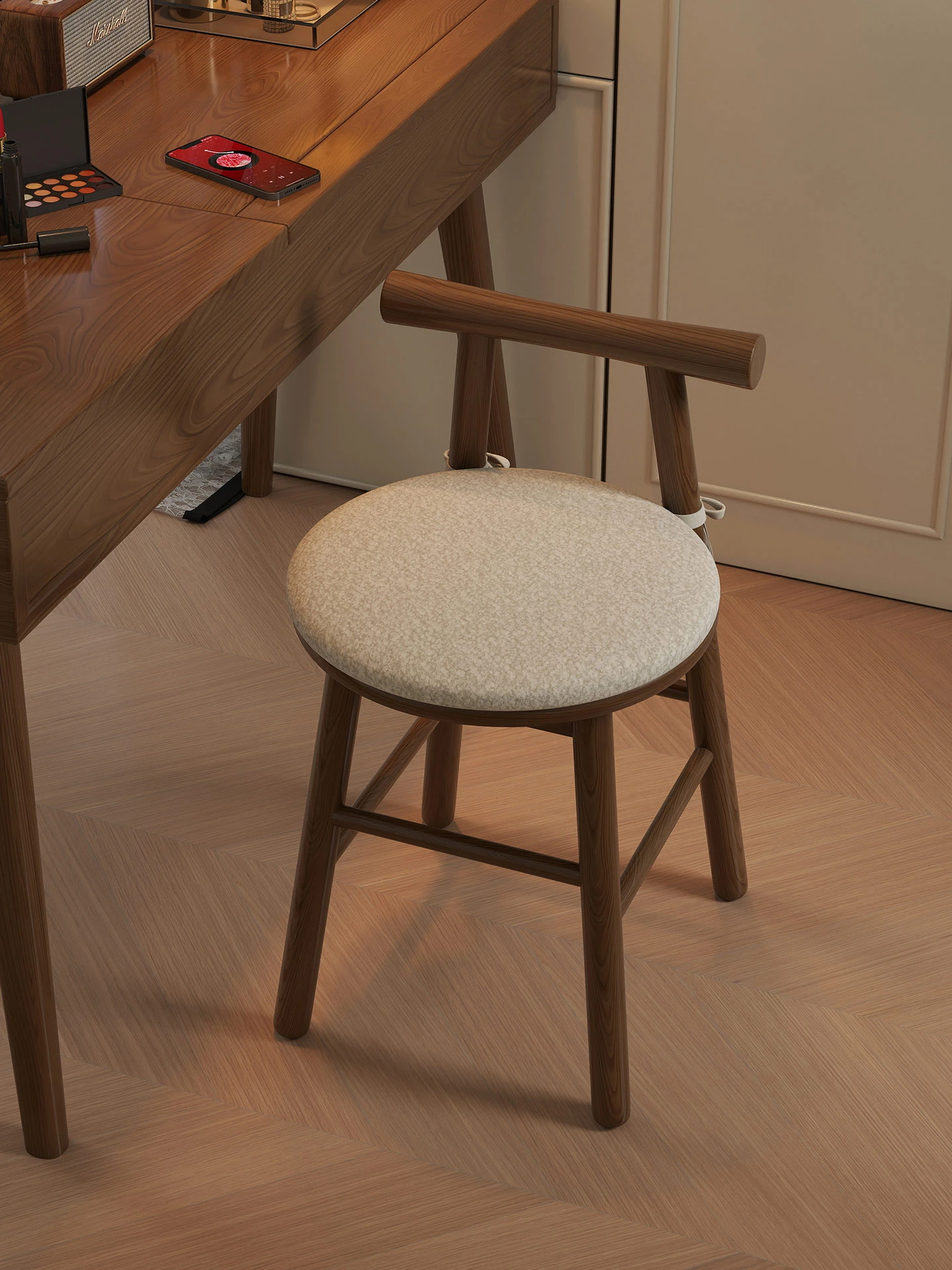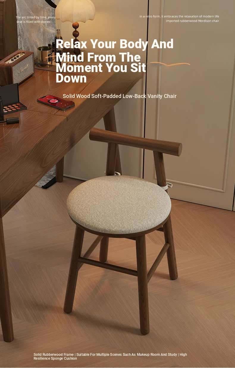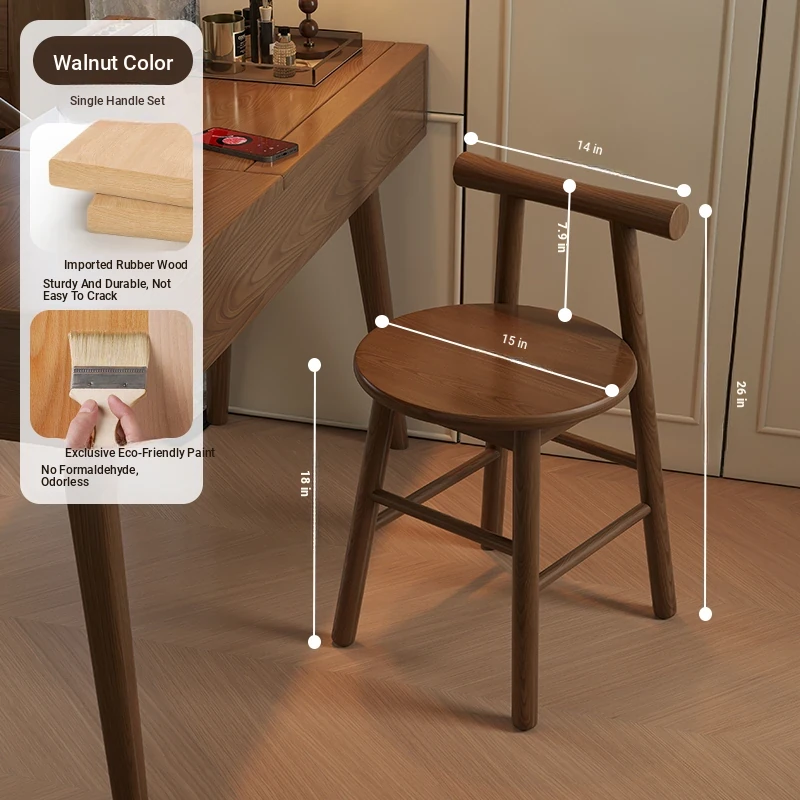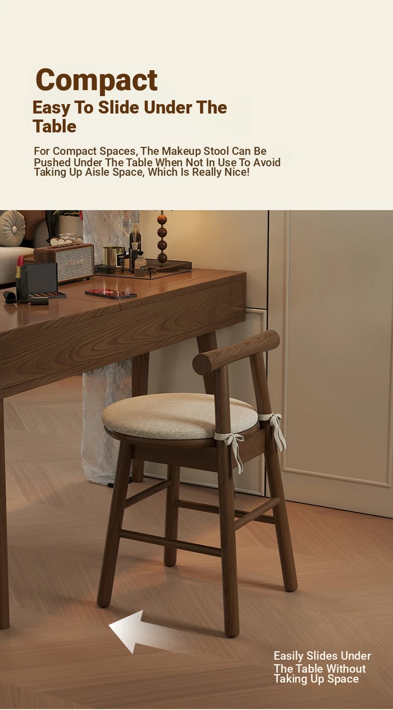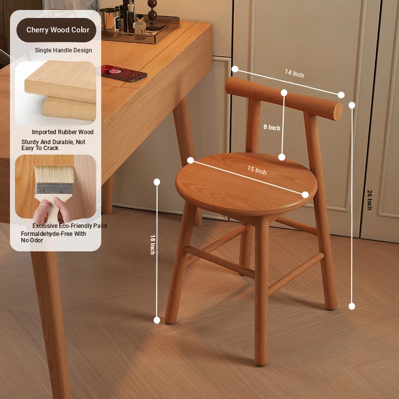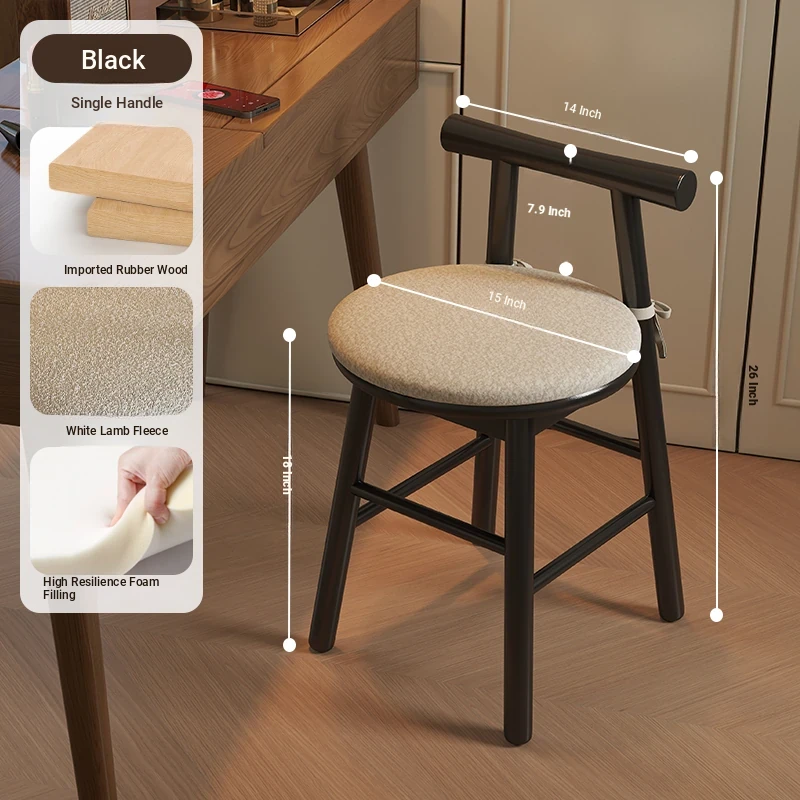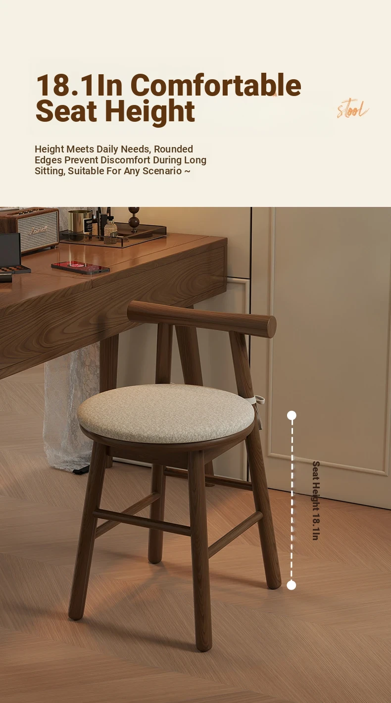 Elegant Makeup Stool with Backrest - Removable and Washable, Solid Wood Vanity Chair for Home Use, Perfect for Dressing Rooms and Boudoirs, Stylish Butterfly Design
