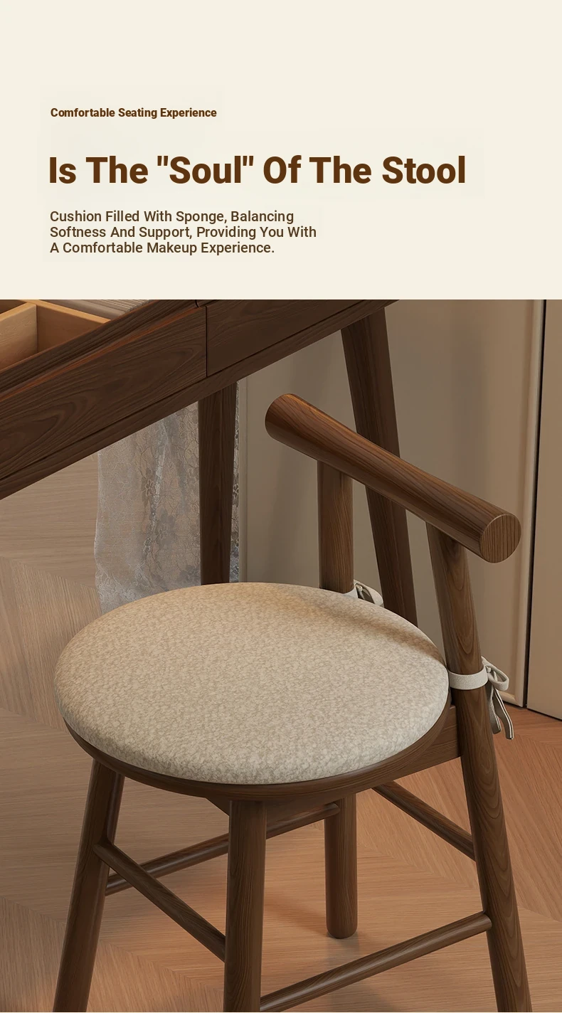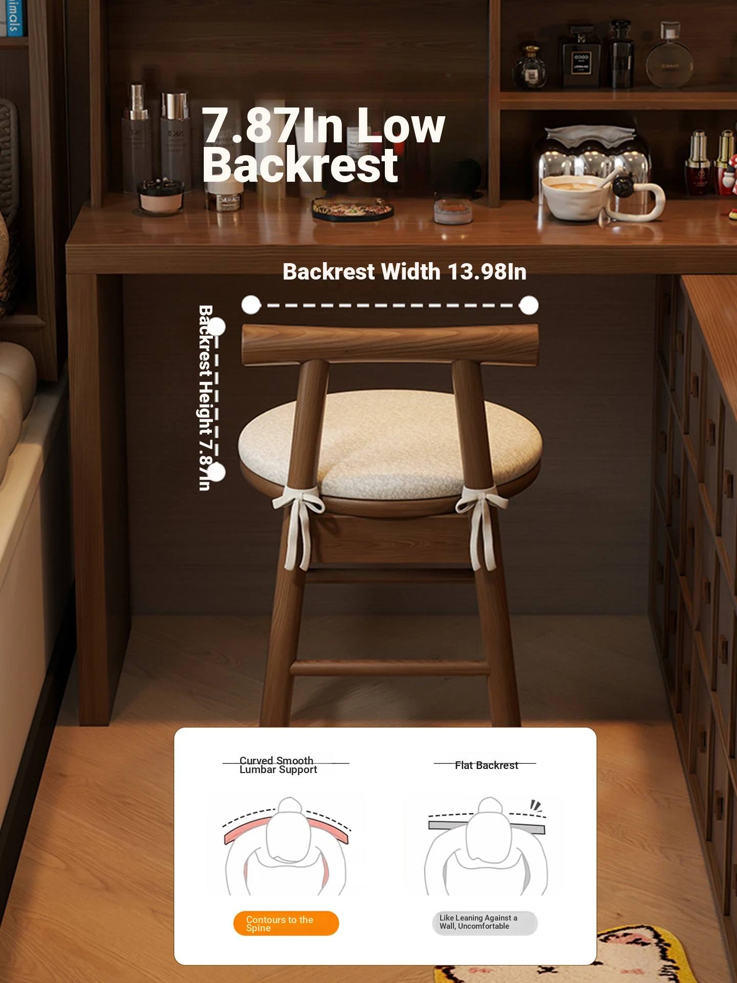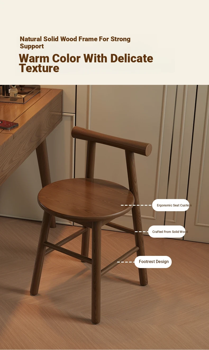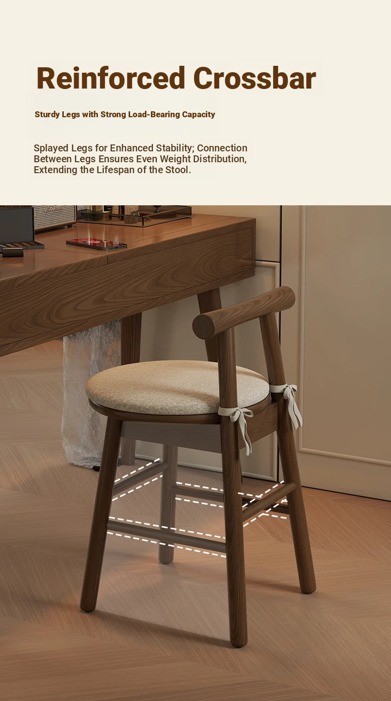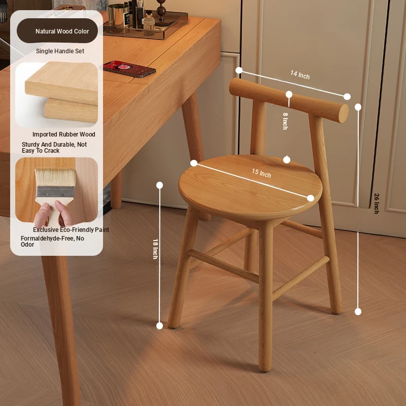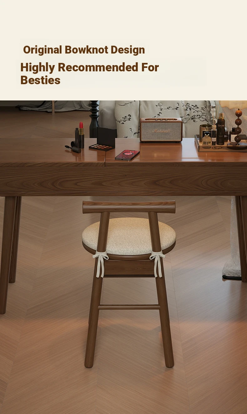 Elegant Makeup Stool with Backrest - Removable and Washable, Solid Wood Vanity Chair for Home Use, Perfect for Dressing Rooms and Boudoirs, Stylish Butterfly Design