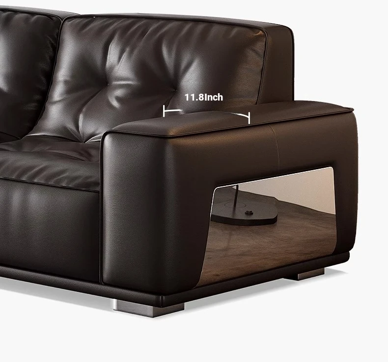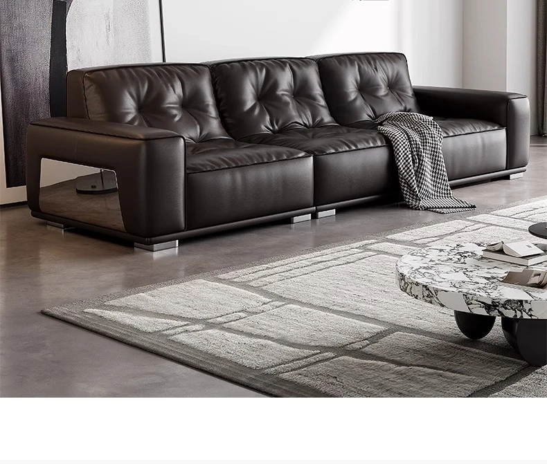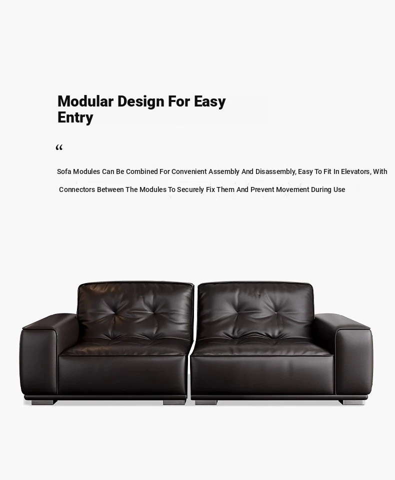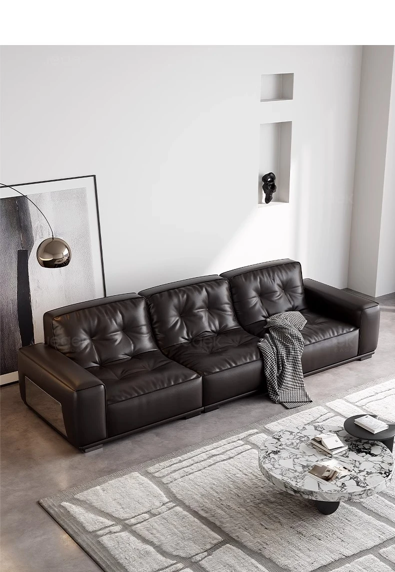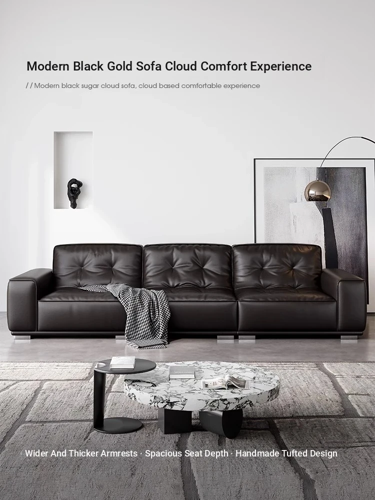 Elegant Minimalist Black Gold Sand Sofa for Living Room - 2025 New Retro Design, Premium Top-Grain Leather, Perfect for Small Spaces