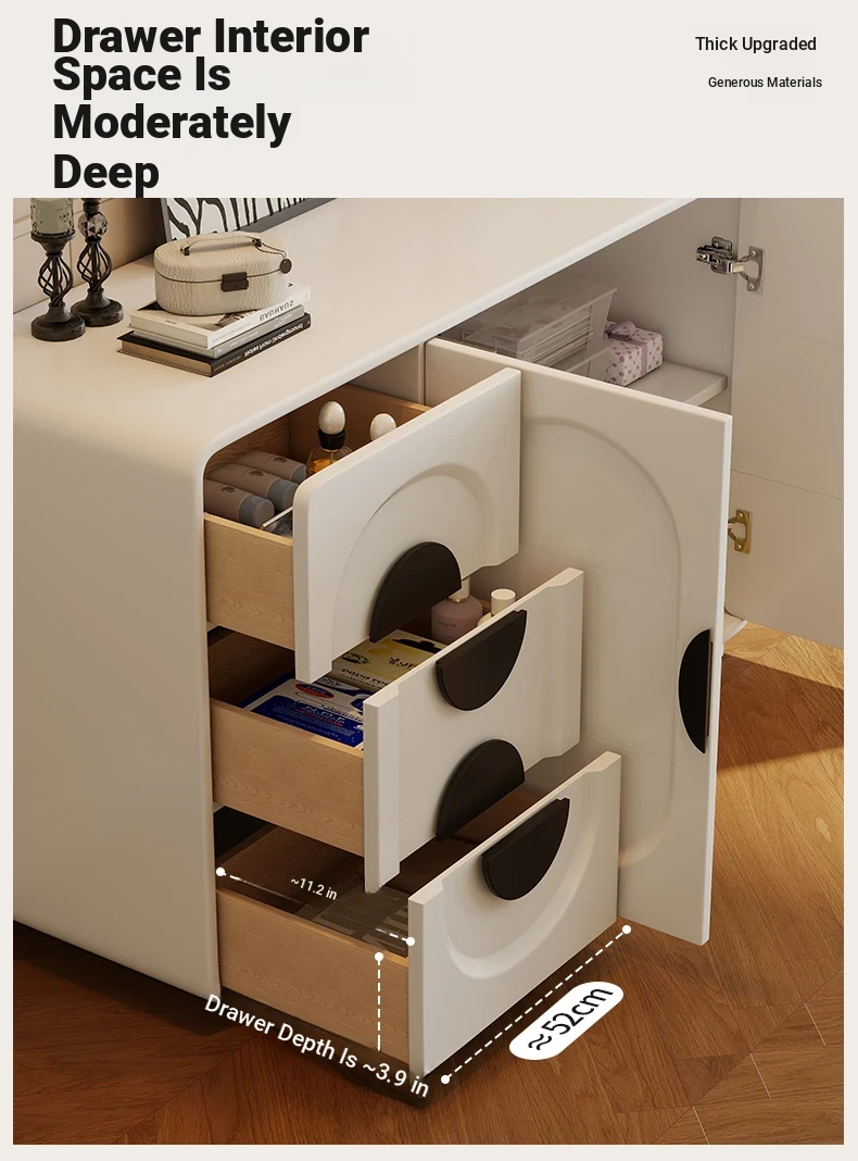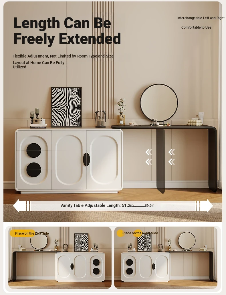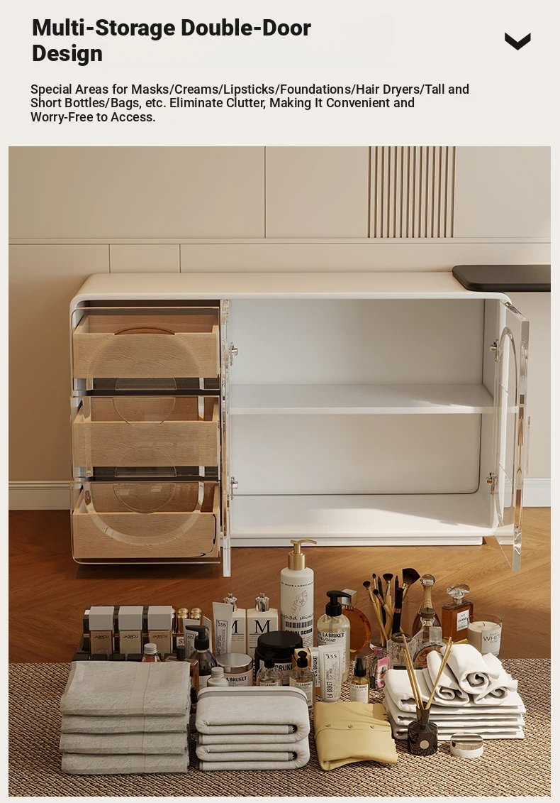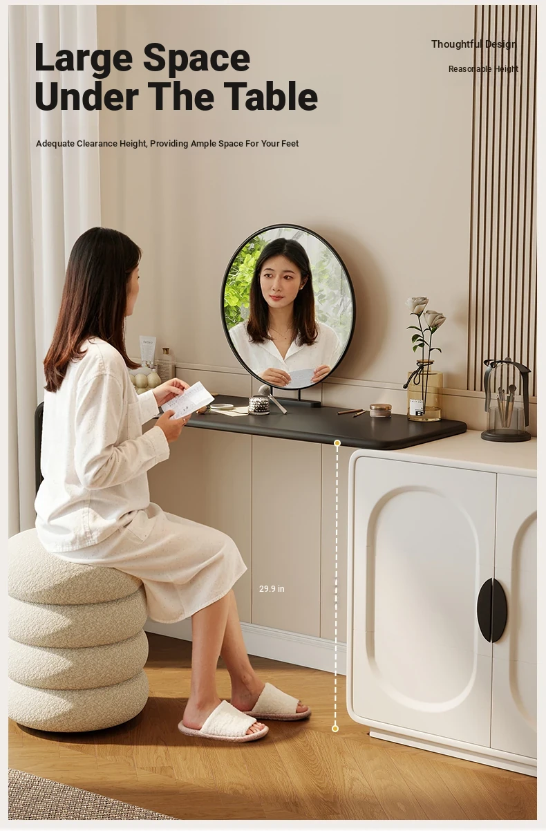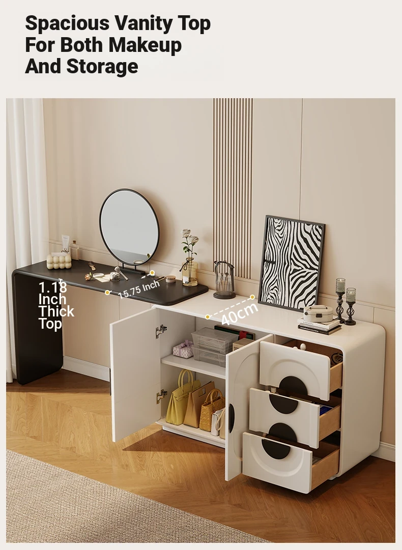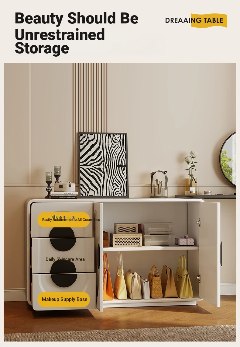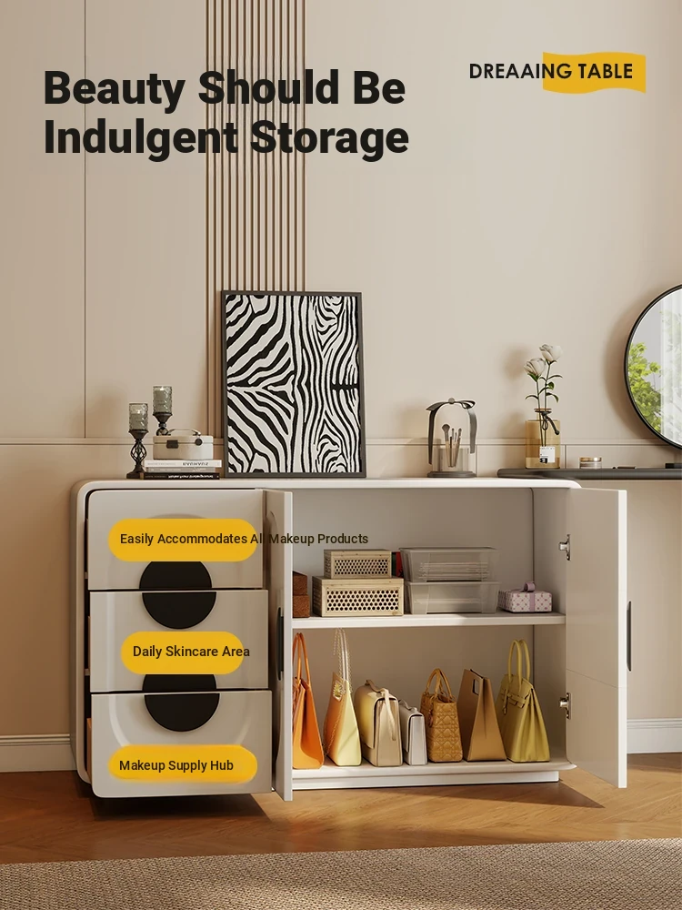 Elegant Modern Vanity Table with Integrated Storage – Luxurious Makeup Desk and Chest of Drawers for Your Master Bedroom, Perfect for a Chic and Organized Space.