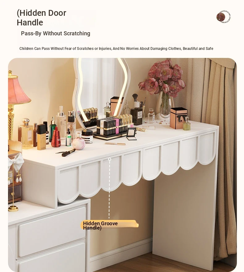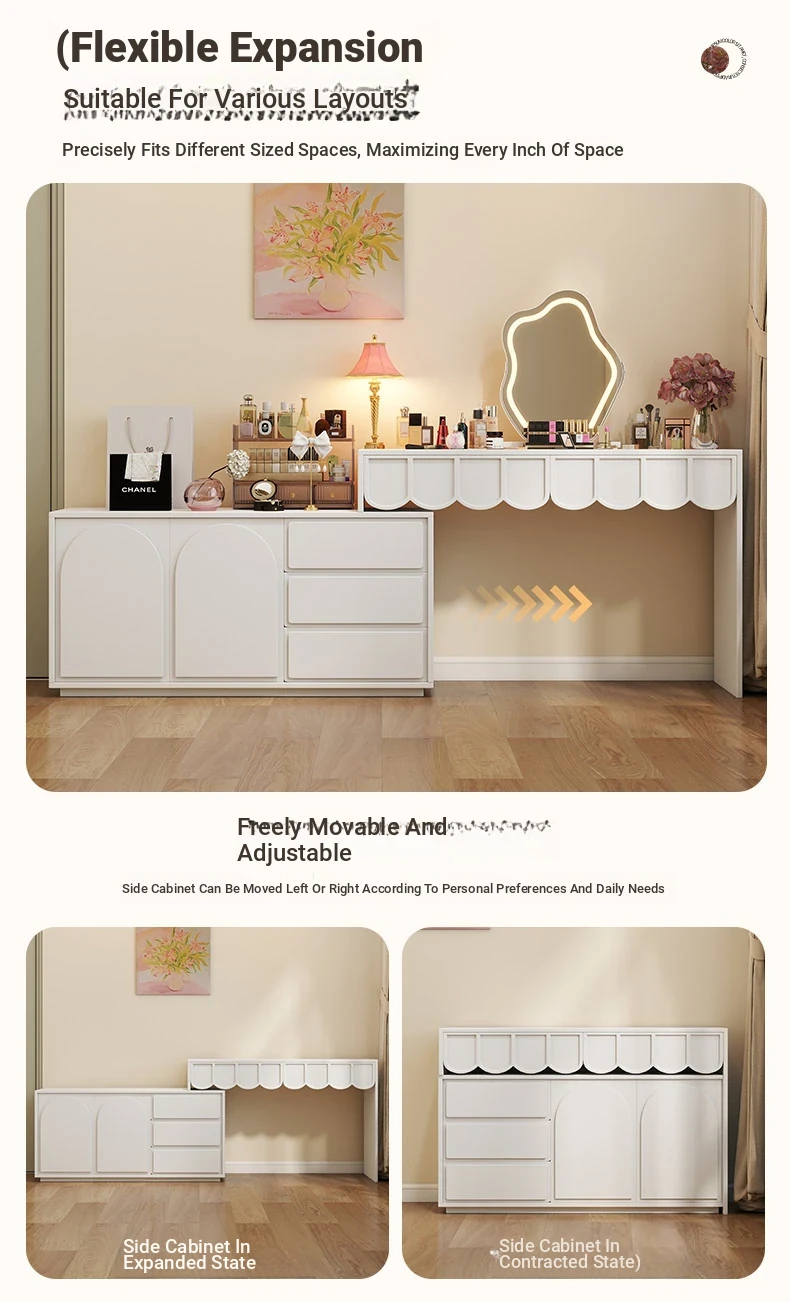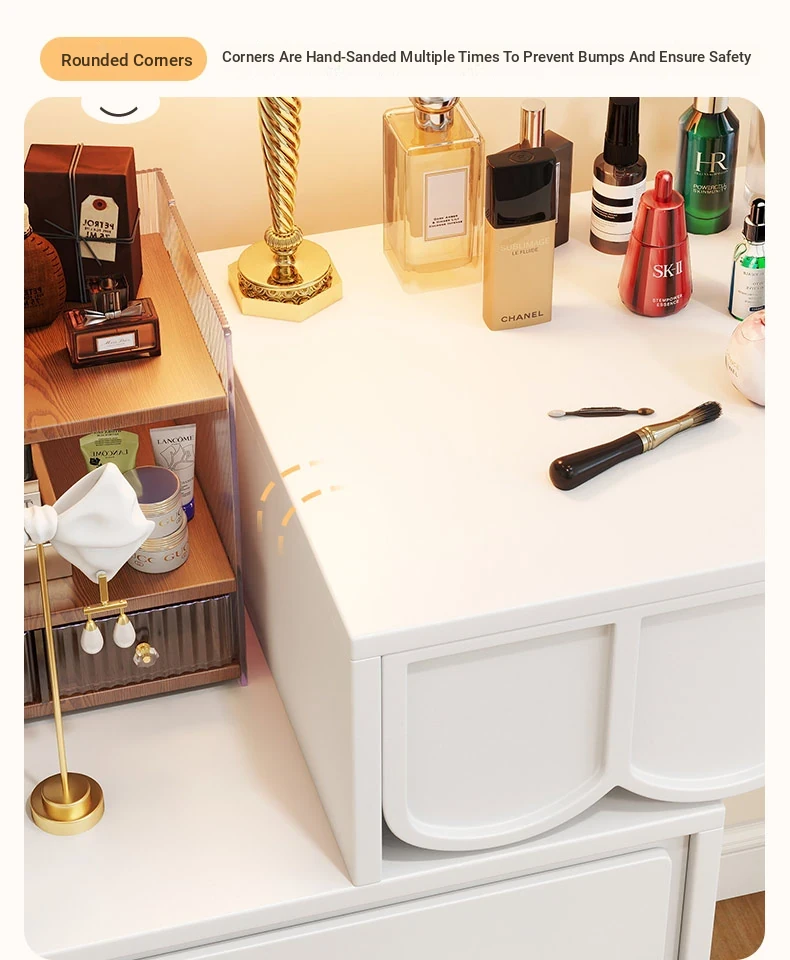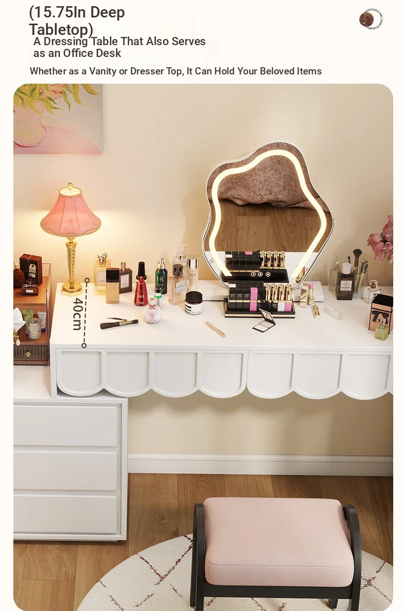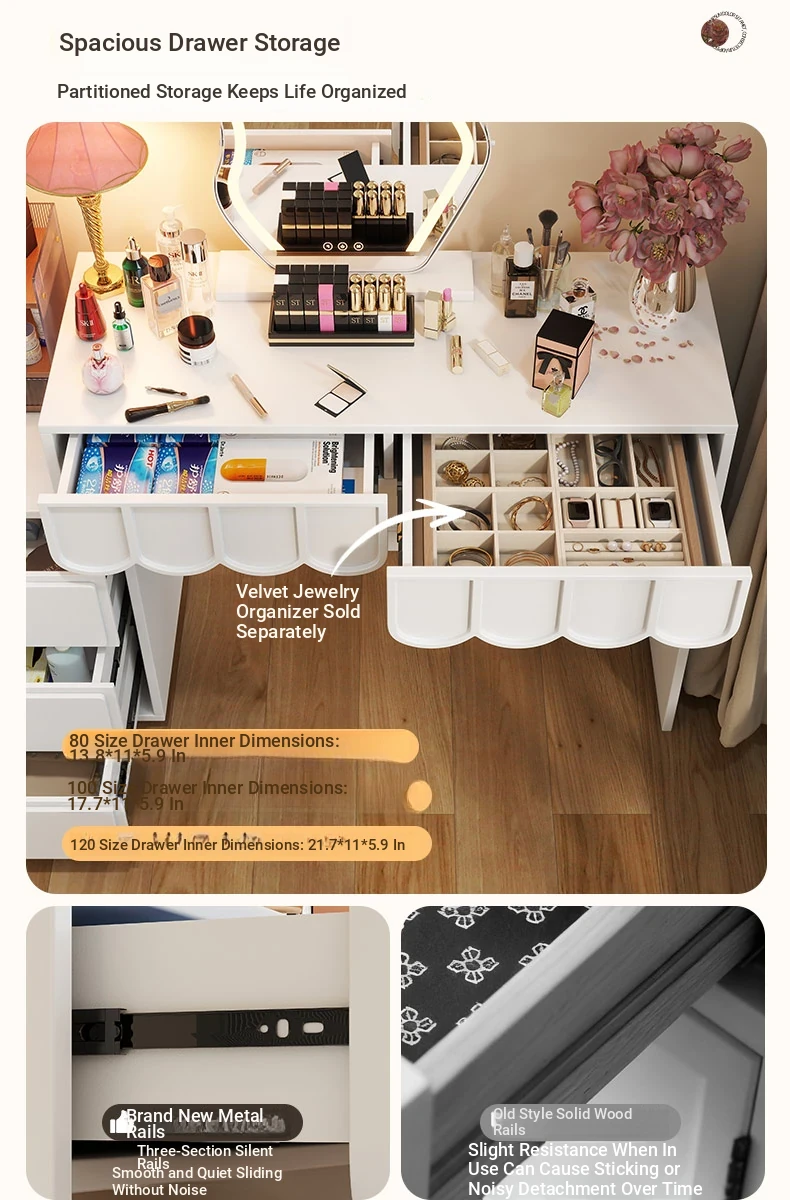 Elegant White Solid Wood Vanity Table with Mirror and Storage Cabinet – Chic and Minimalist Makeup Desk for Your Bedroom