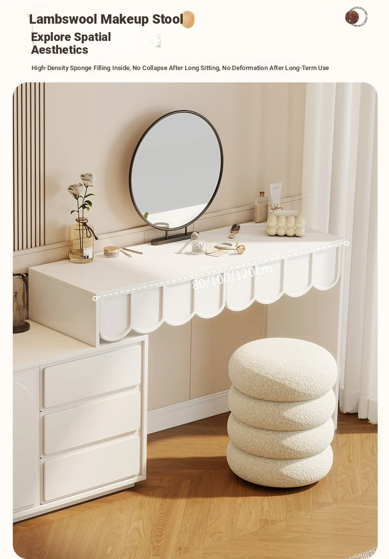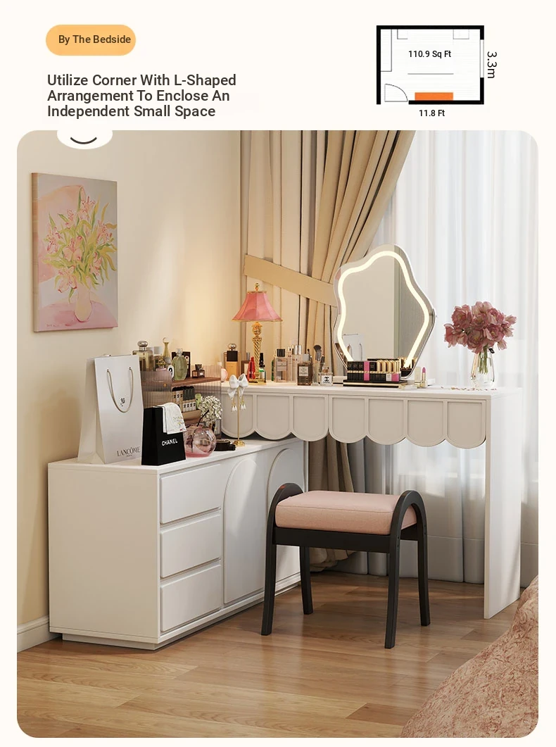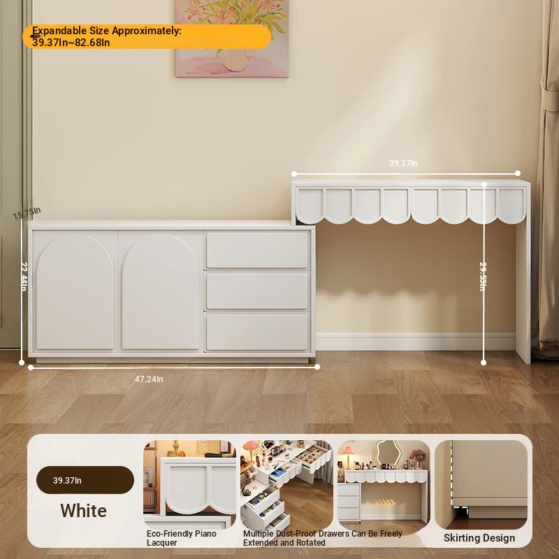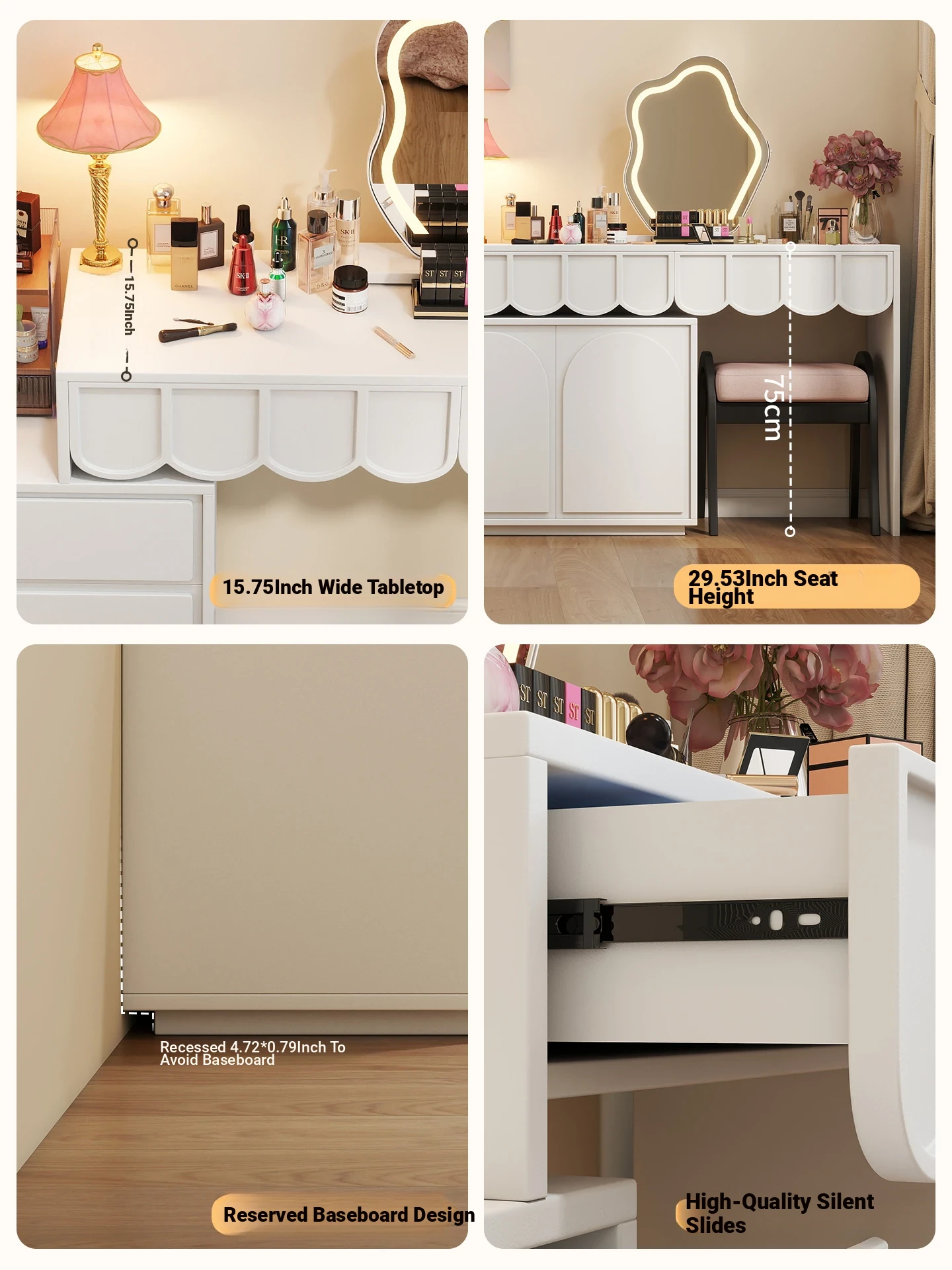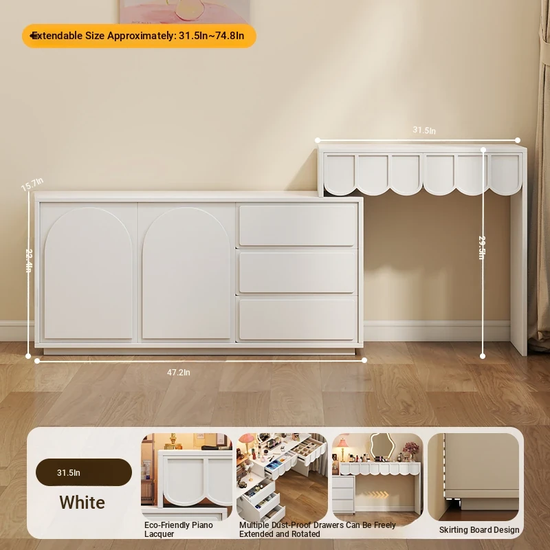 Elegant White Solid Wood Vanity Table with Mirror and Storage Cabinet – Chic and Minimalist Makeup Desk for Your Bedroom