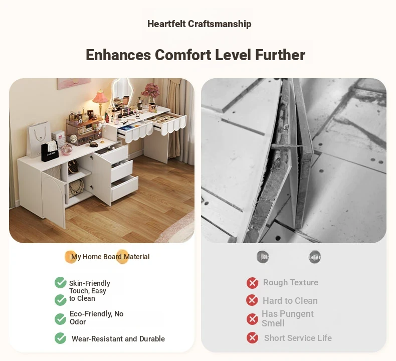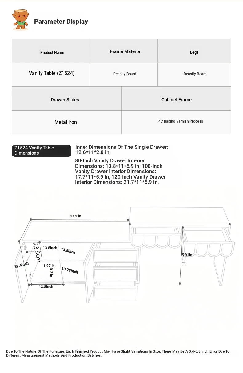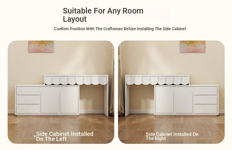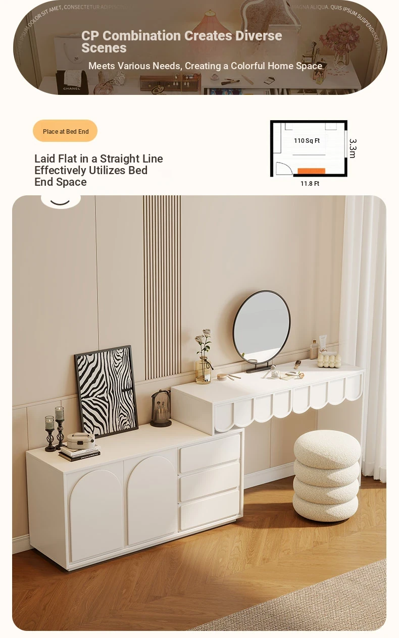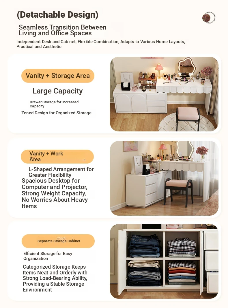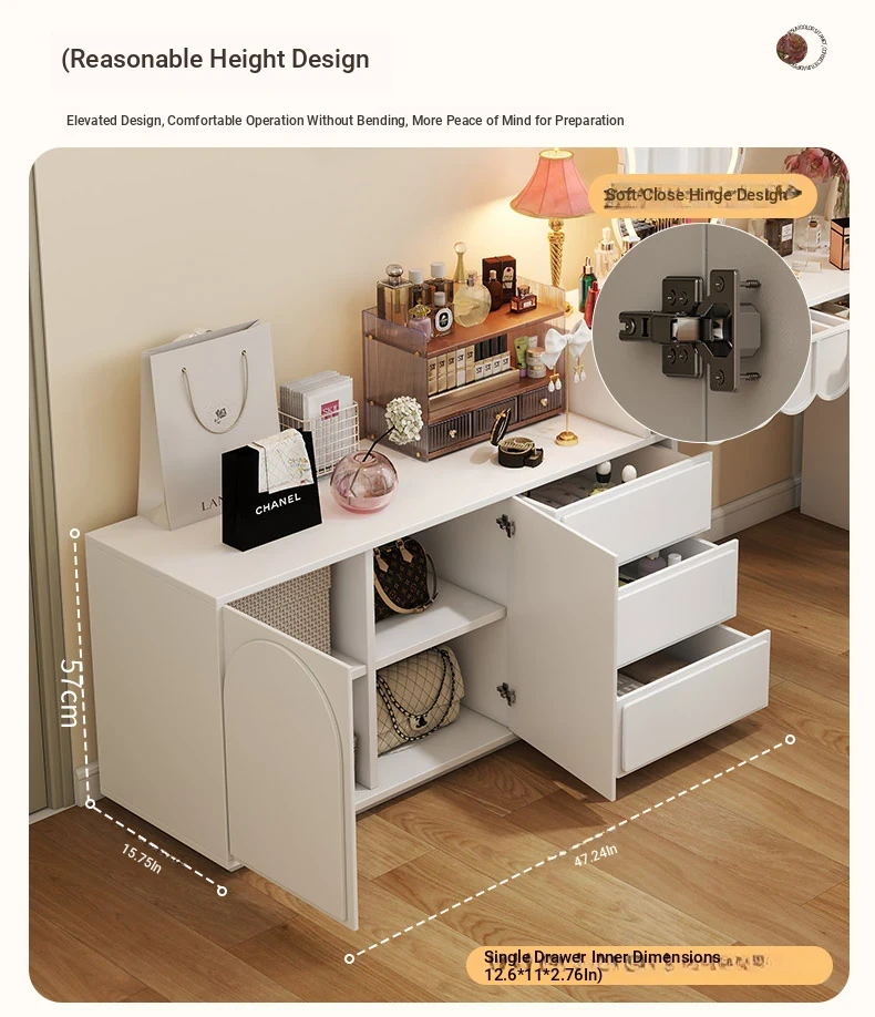 Elegant White Solid Wood Vanity Table with Mirror and Storage Cabinet – Chic and Minimalist Makeup Desk for Your Bedroom