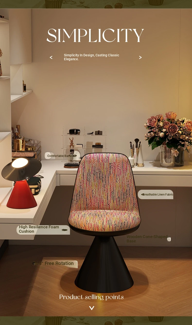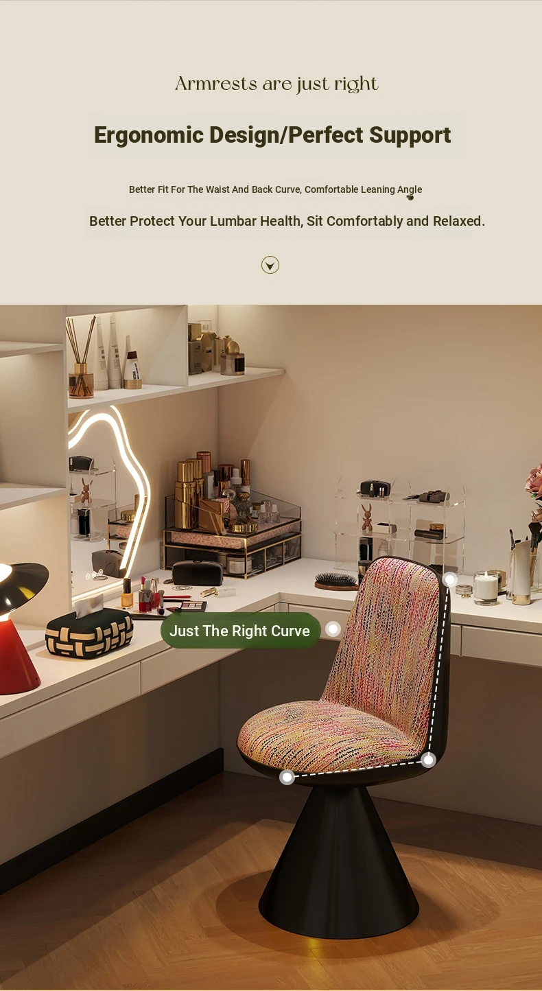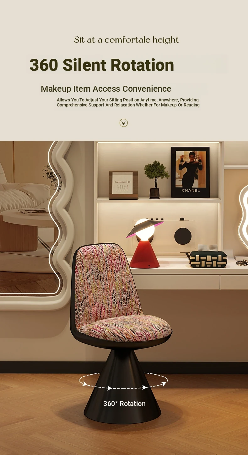 Elevate Your Bedroom with Our Luxurious Nordic Rotating Makeup Chair - Perfect for Women’s Vanity! Stylish and Functional Stool for Home Use, Ideal for a Chic Makeup Experience.