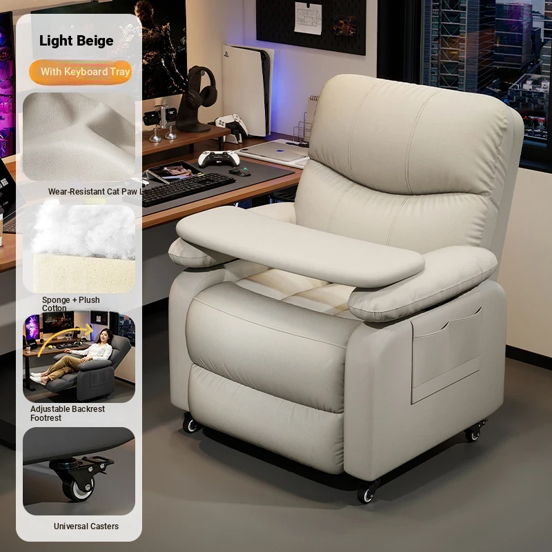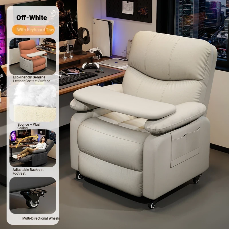 【Adjustable Armrests】Off-White + Keyboard Tray + Spring Seat Cushion + Universal Casters - Wear-Resistant Cat-Scratch Leather