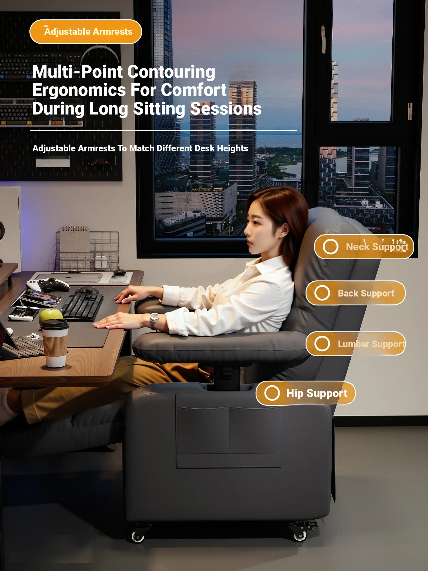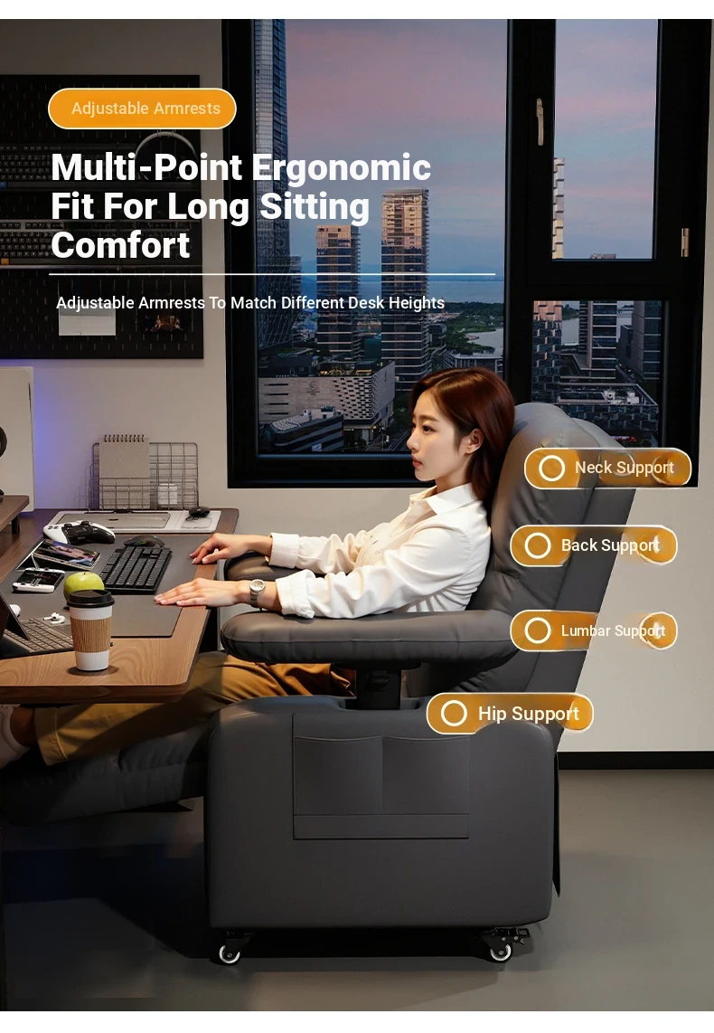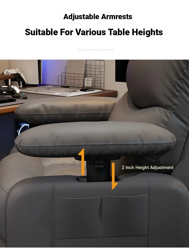 【Adjustable Armrests】Premium Grey + Spring Seat Cushion + Universal Casters - Wear-Resistant Cat-Scratch Leather