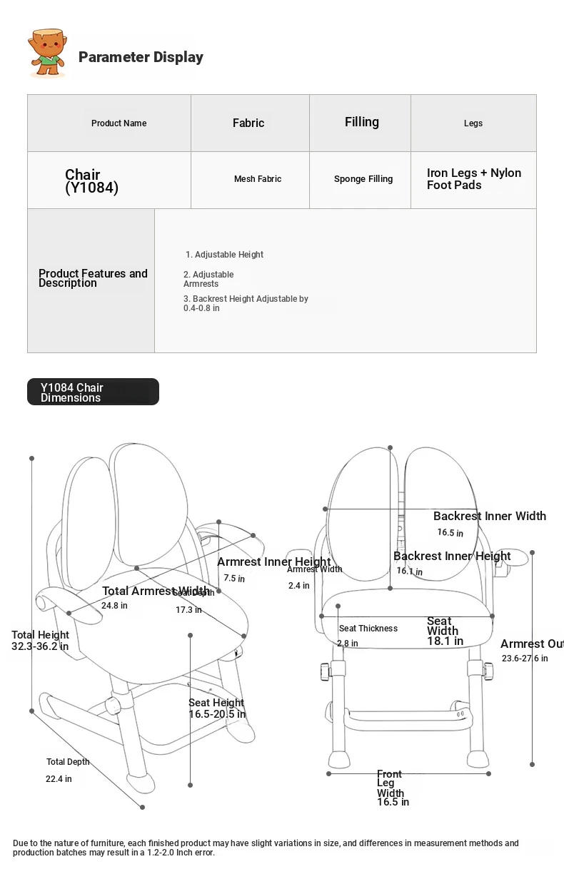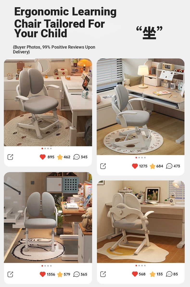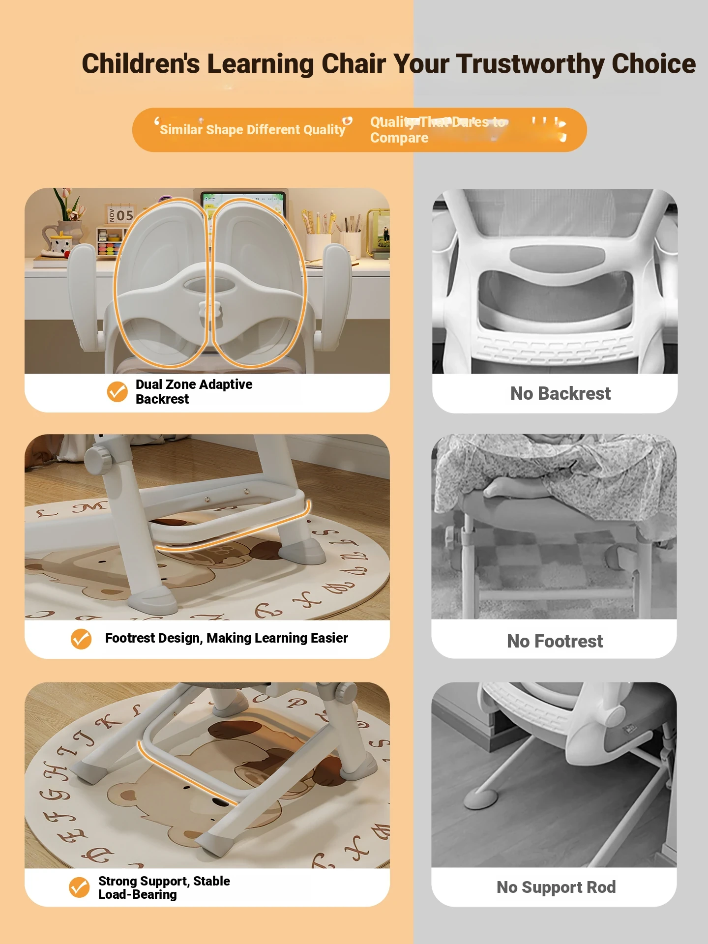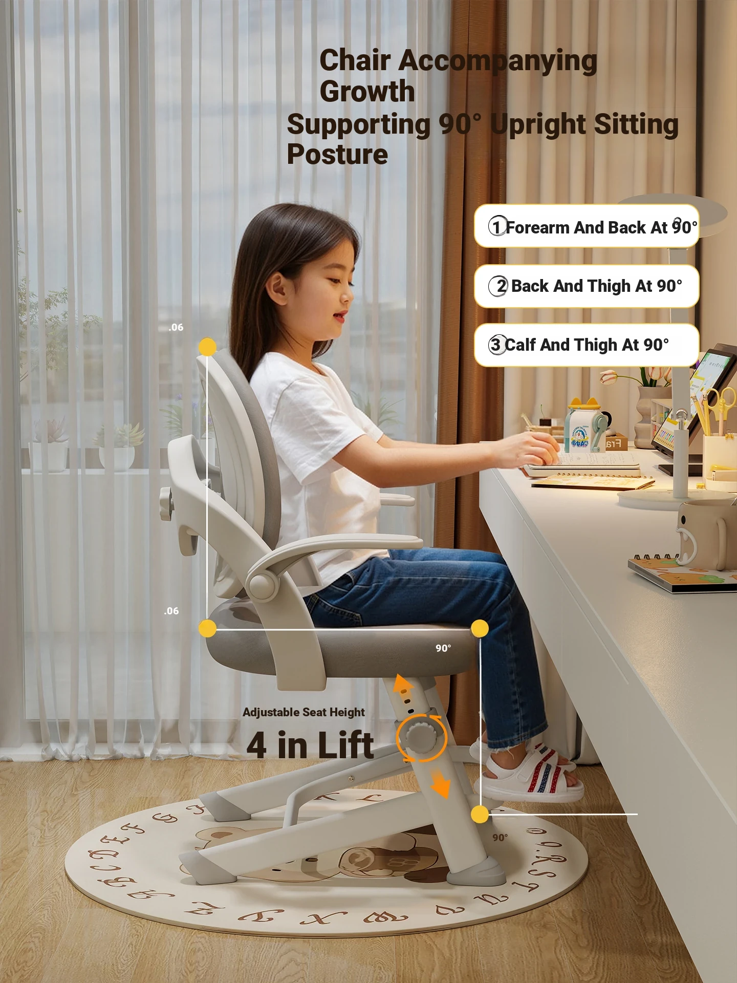Ergonomic Kids Study Chair - Adjustable Desk Chair for Elementary Students, Posture Correcting, Perfect for Home Learning and Writing
