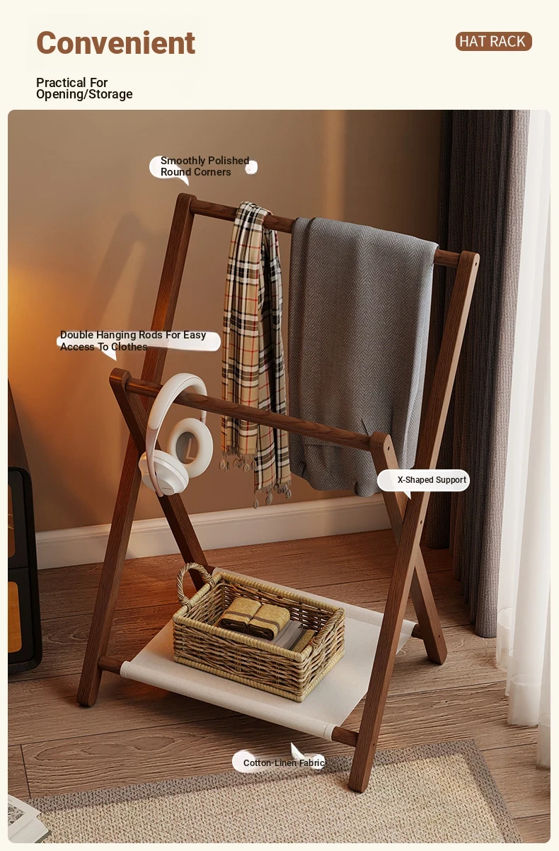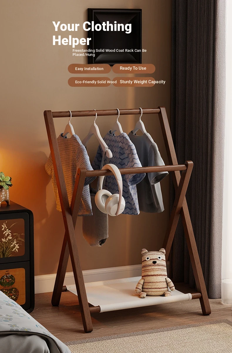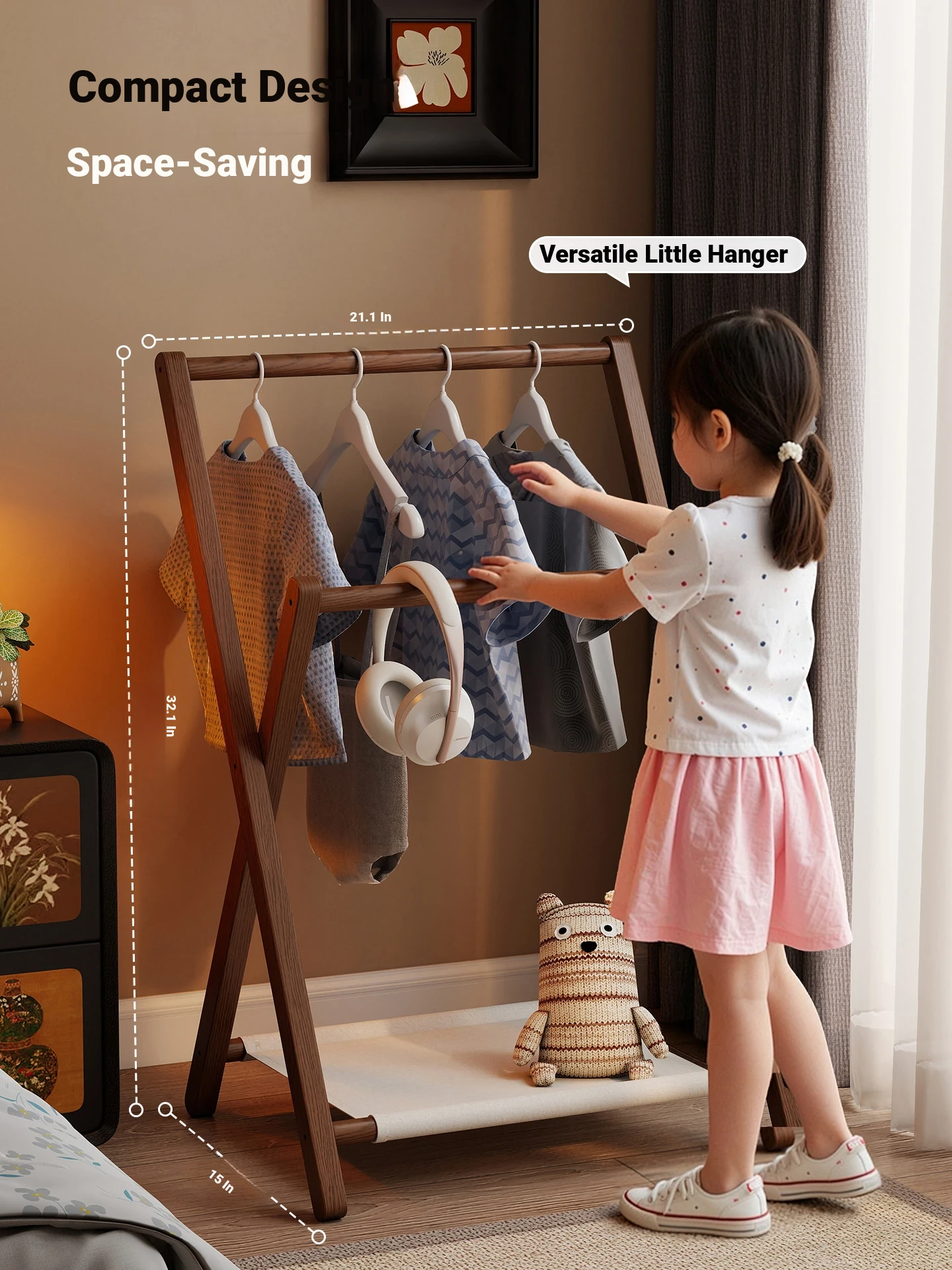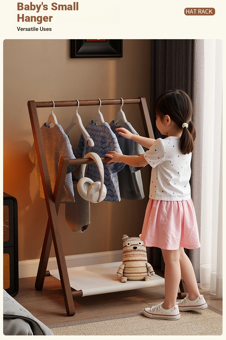 Foldable Solid Wood Clothes Hanger for Kids – Compact Coat Rack for Children's Rooms, Ideal Baby Drying Rack & Nursery Storage Solution, Perfect for Preschools and Playrooms