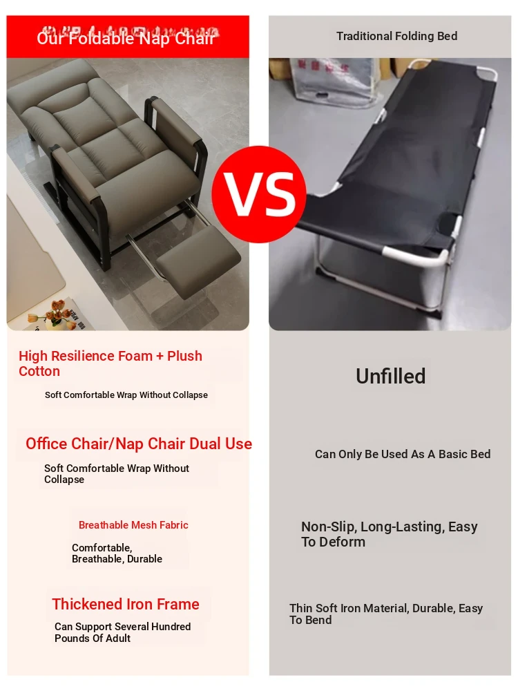 Folding Reclining Chair - Versatile Office Nap Chair and Single Bed Combo for Summer! Enjoy Comfort with a Chair that Reclines and Sits, Perfect for Relaxing at Your Desk or Taking a Quick Nap!