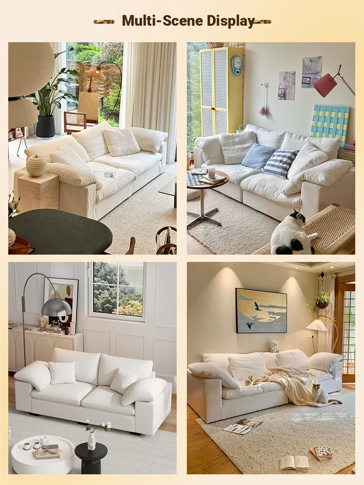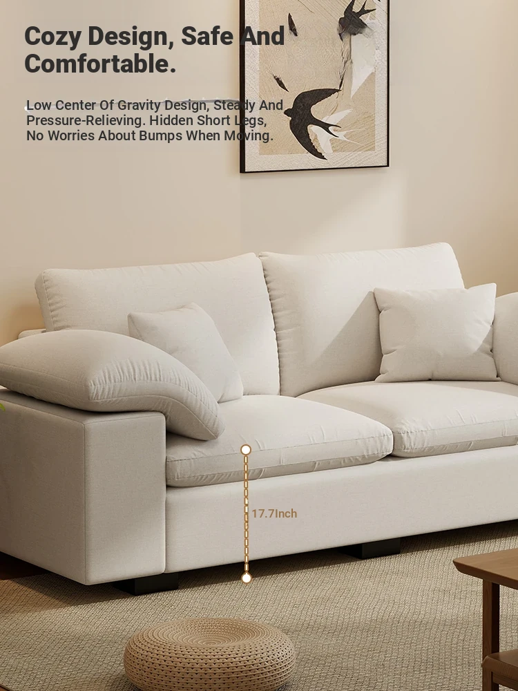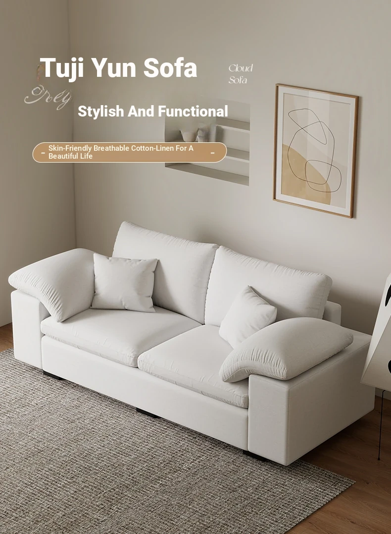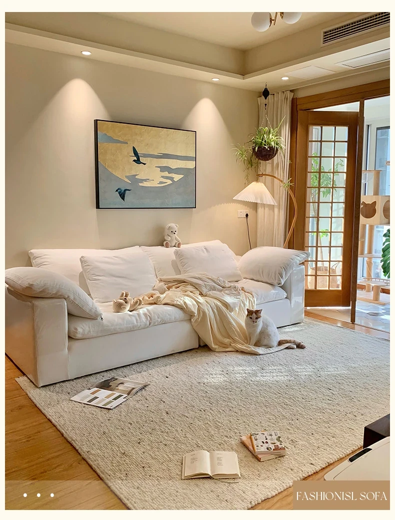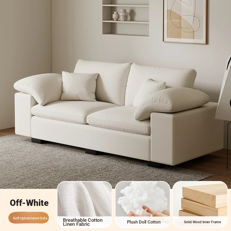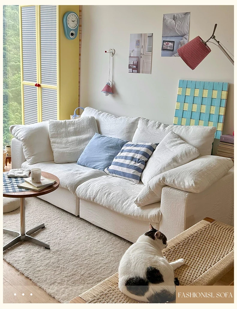 French Cloud Sofa - Designer Cream Wabi-Sabi Modular Fabric Sofa for Small Spaces - Trendy Cotton-Linen Living Room Furniture for 2025