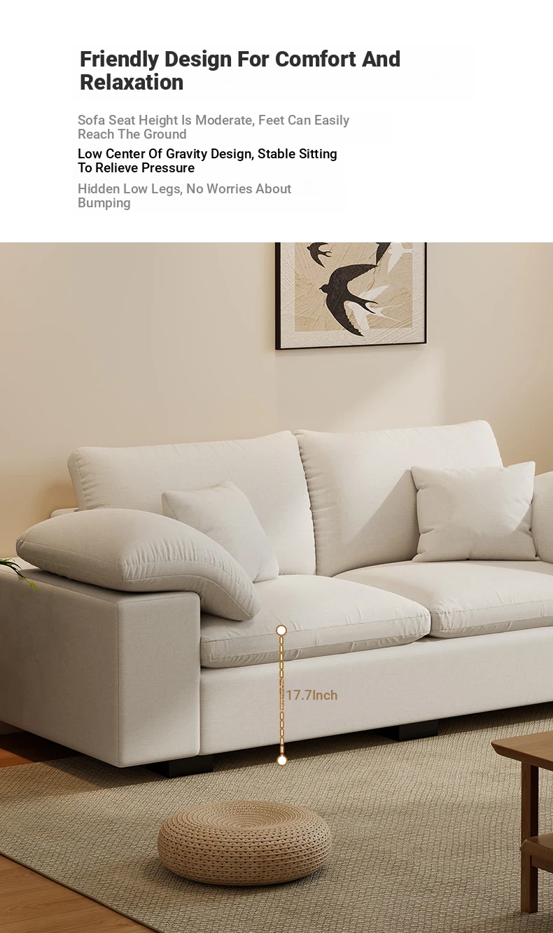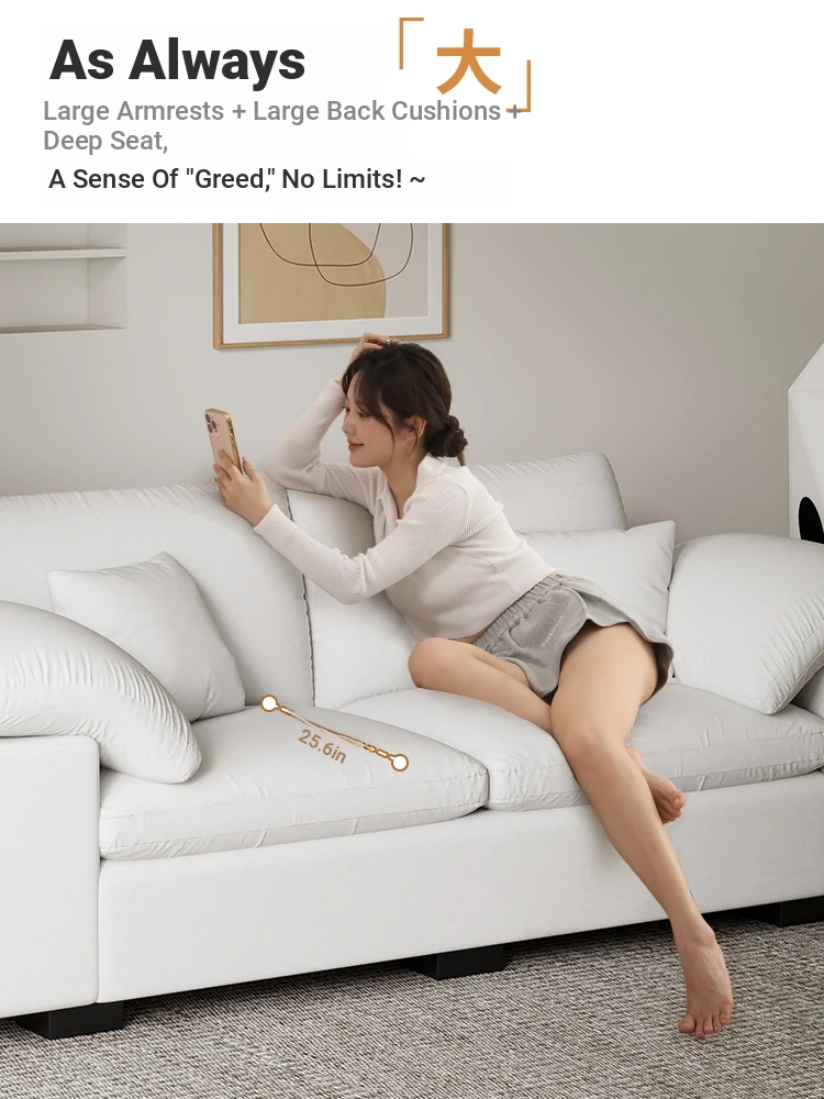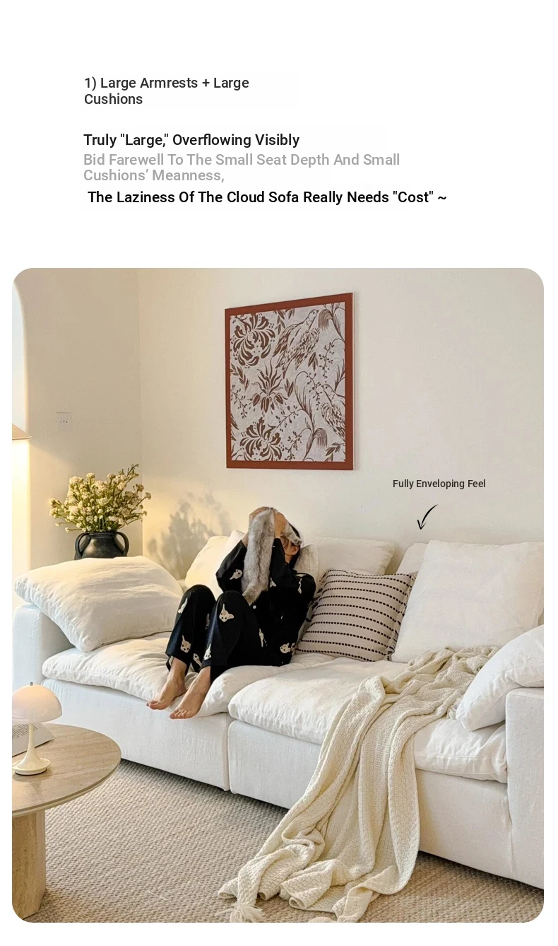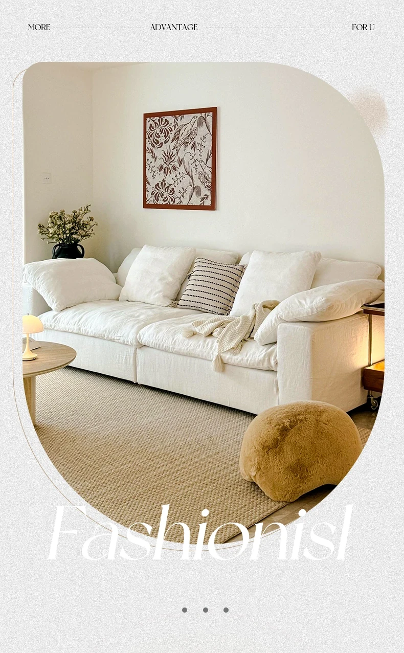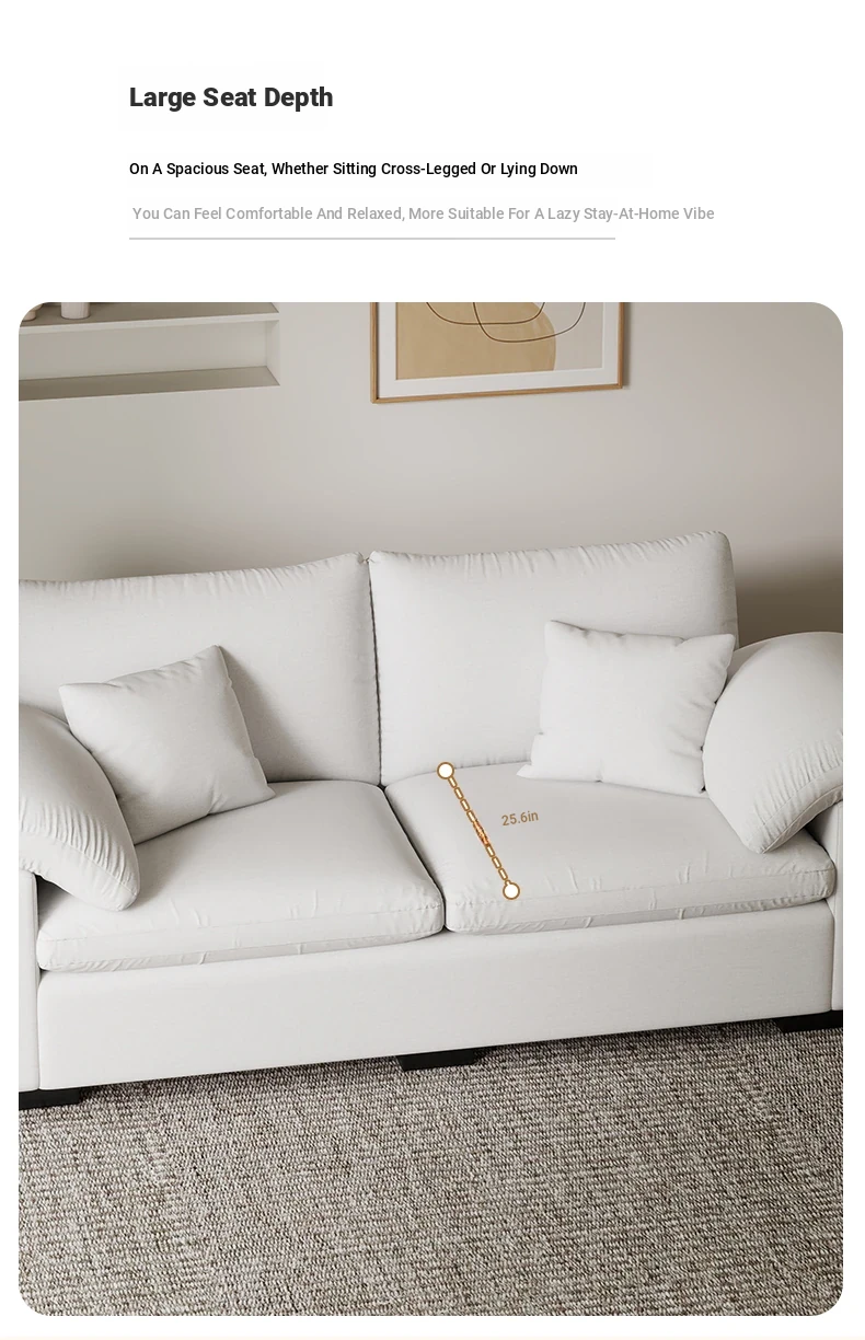 French Cloud Sofa - Designer Cream Wabi-Sabi Modular Fabric Sofa for Small Spaces - Trendy Cotton-Linen Living Room Furniture for 2025