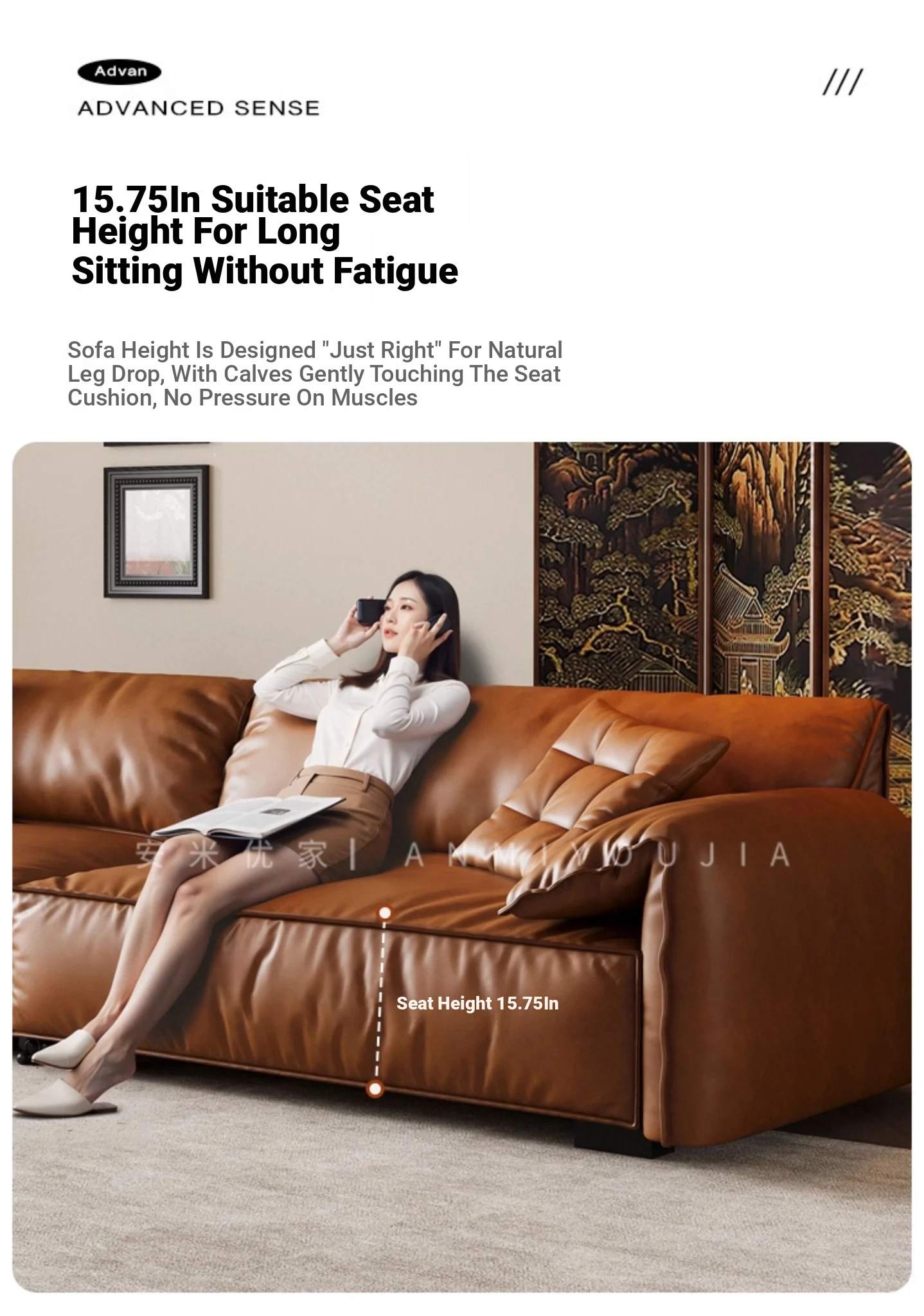 Large three-person position 94.49in(SS grade Retro oil wax head layer leather + high resilience sponge seat bag + larch wood frame)
