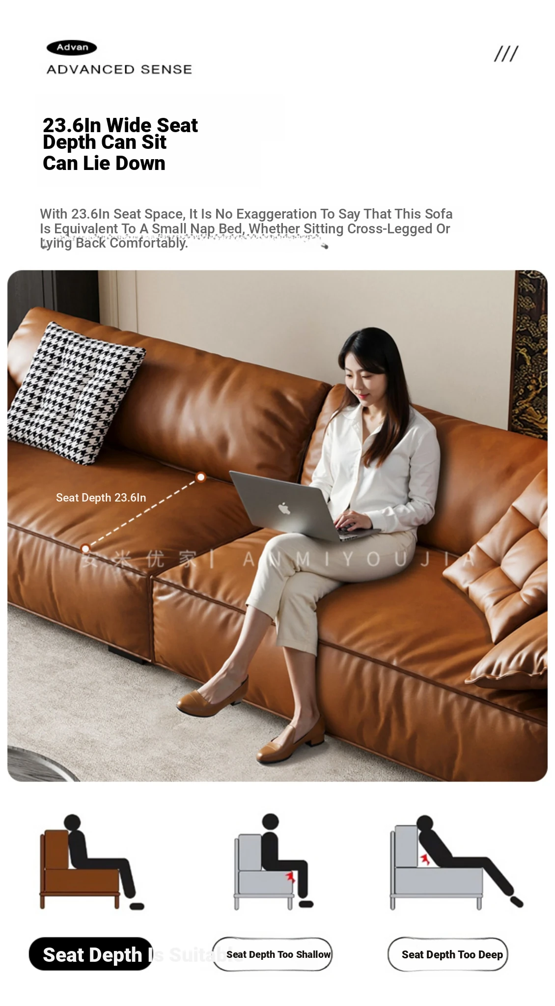 Three-person position 82.68in (Import Retro oil wax skin + high resilience sponge seat bag + larch wood frame)