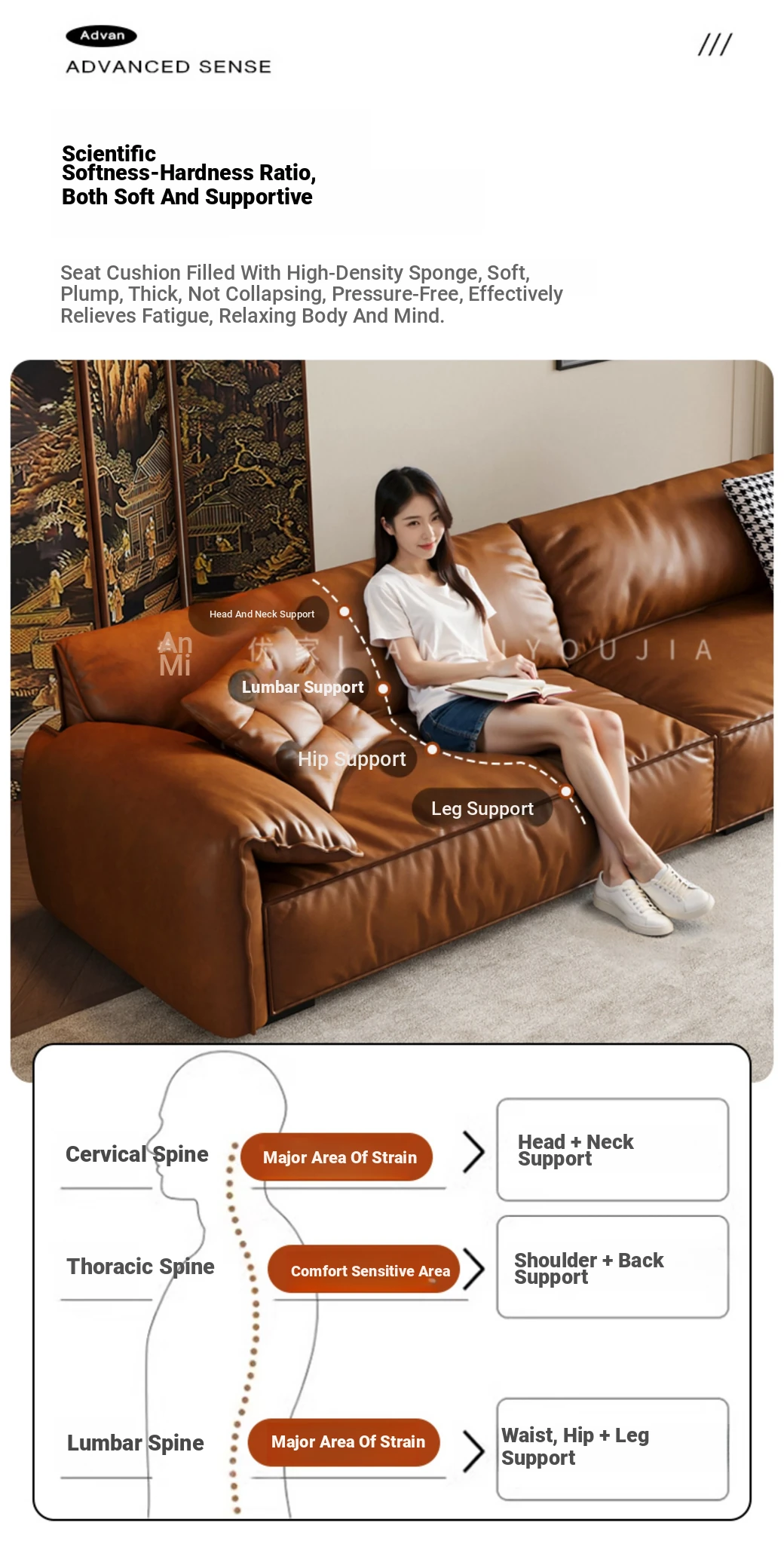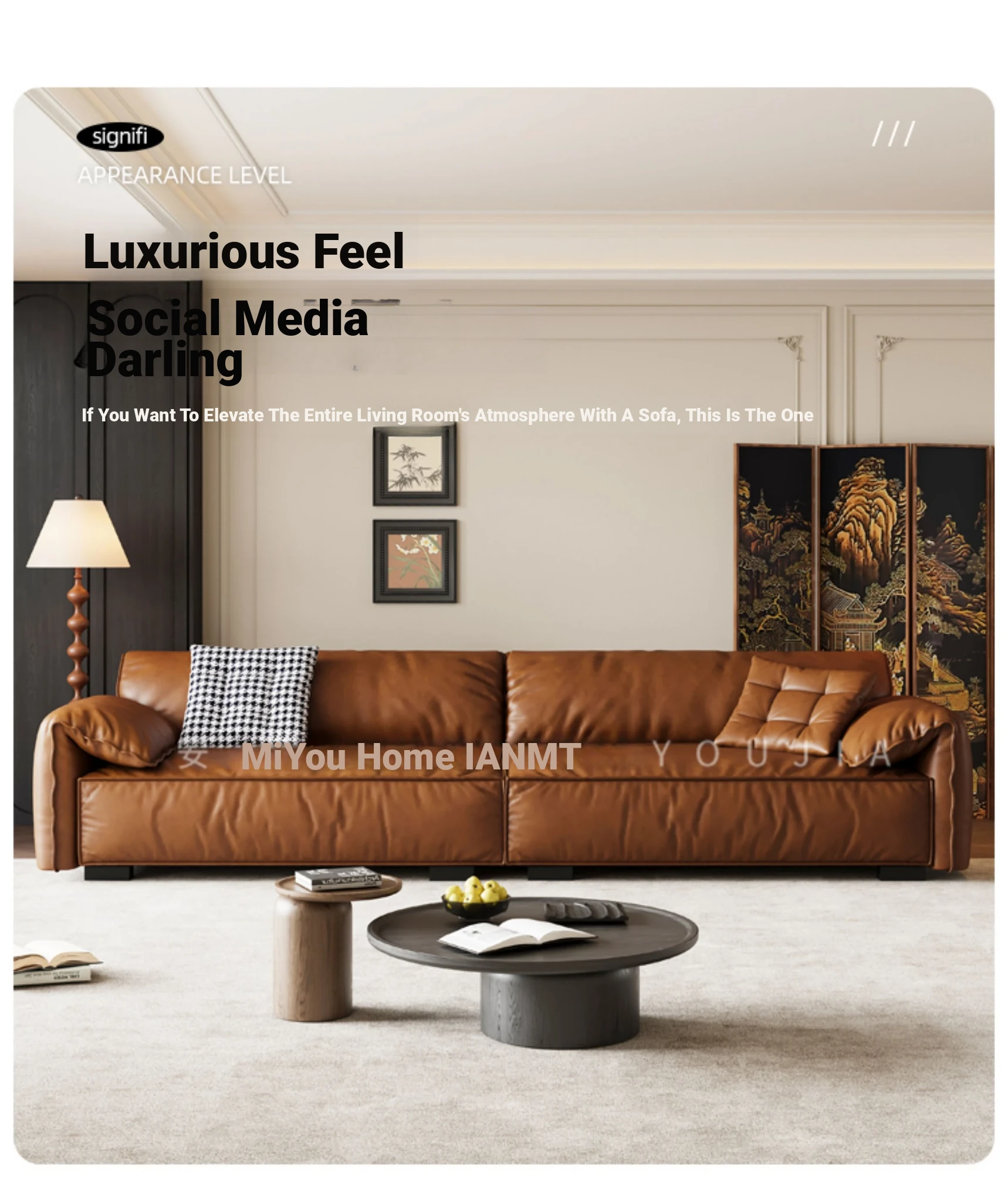 Six people 125.98in(SS grade Retro oil wax head layer leather + high resilience sponge seat bag + larch wood frame)