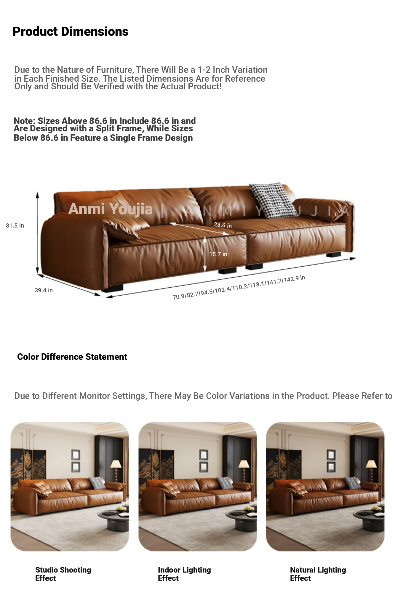 Five-person 118.11in(SS grade Retro oil wax head layer leather + high resilience sponge seat bag + larch wood frame)