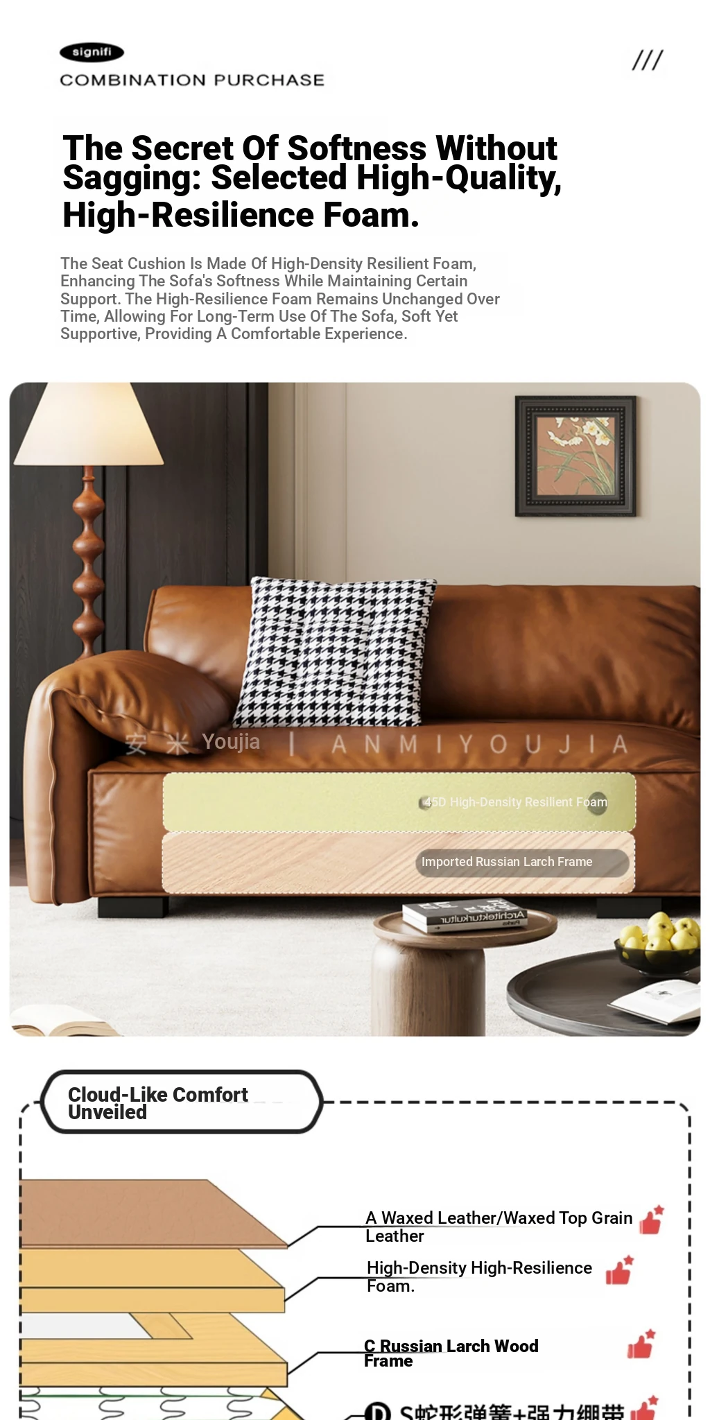 Four-person 102.36in (Import Retro oil wax skin + high resilience sponge seat bag + larch wood frame)
