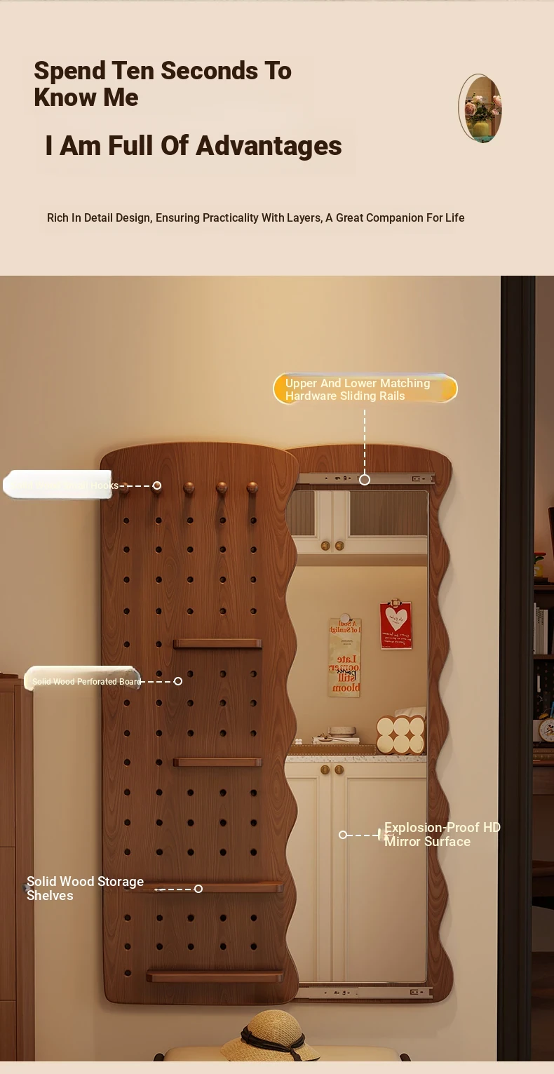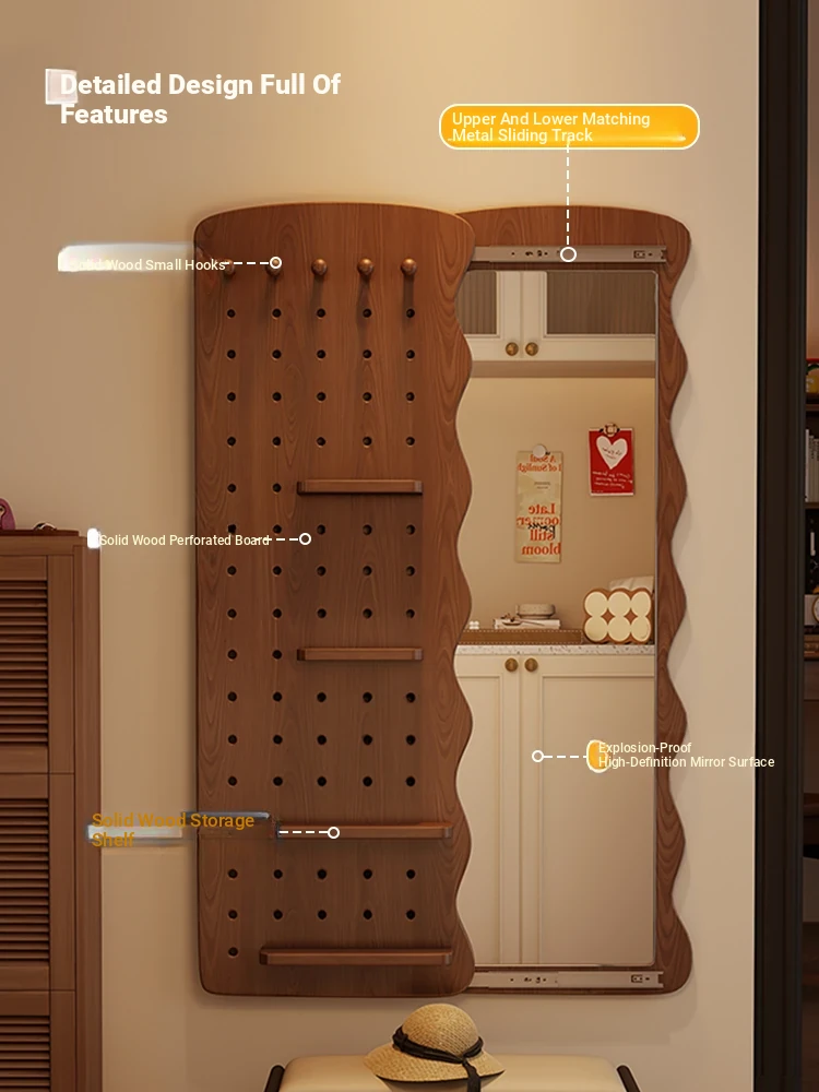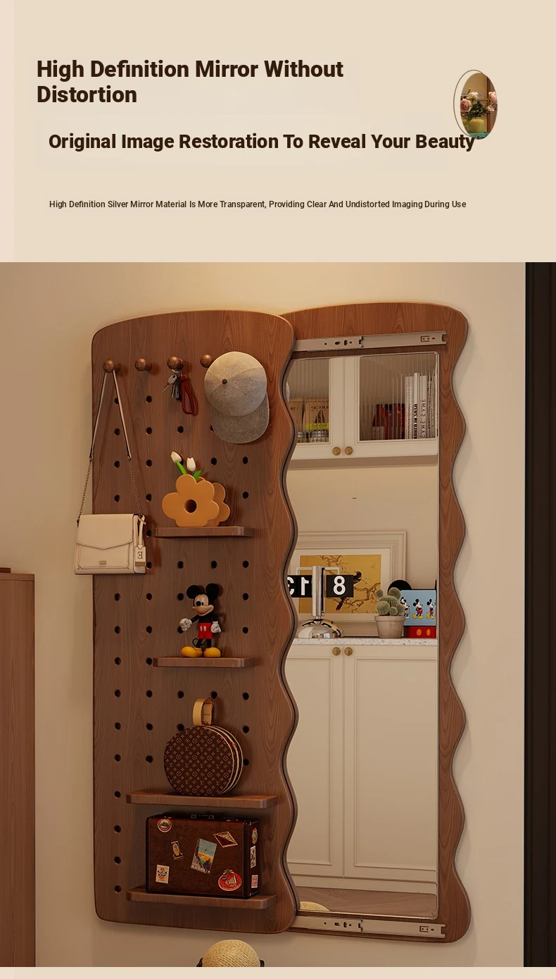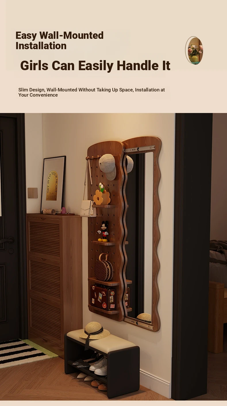 Invisible Pull-Down Wall-Mounted Full-Length Mirror – Space-Saving Dressing Mirror for Entryway, Conceals Wall Holes, Perfect for Stylish Home Décor and Convenient Try-On Experience