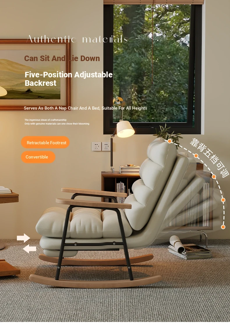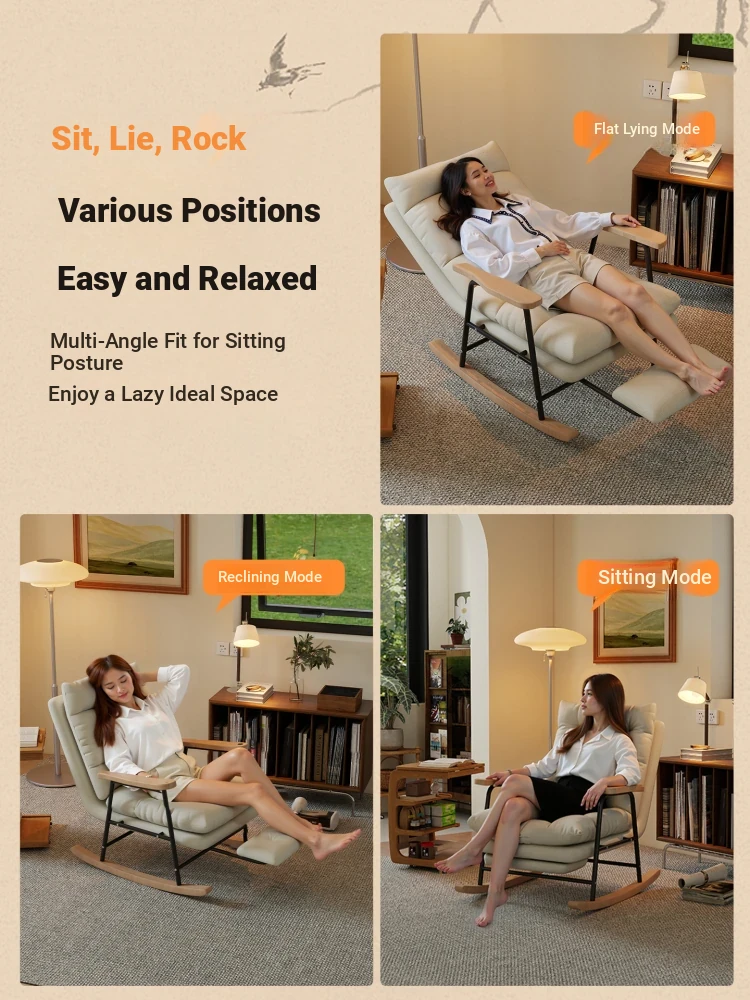 Lazy Reclining Rocking Chair for Adults - Comfortable Single Sofa for Living Room and Balcony, Perfect for Relaxation and Leisure, Ideal for Seniors to Enjoy a Cozy Time