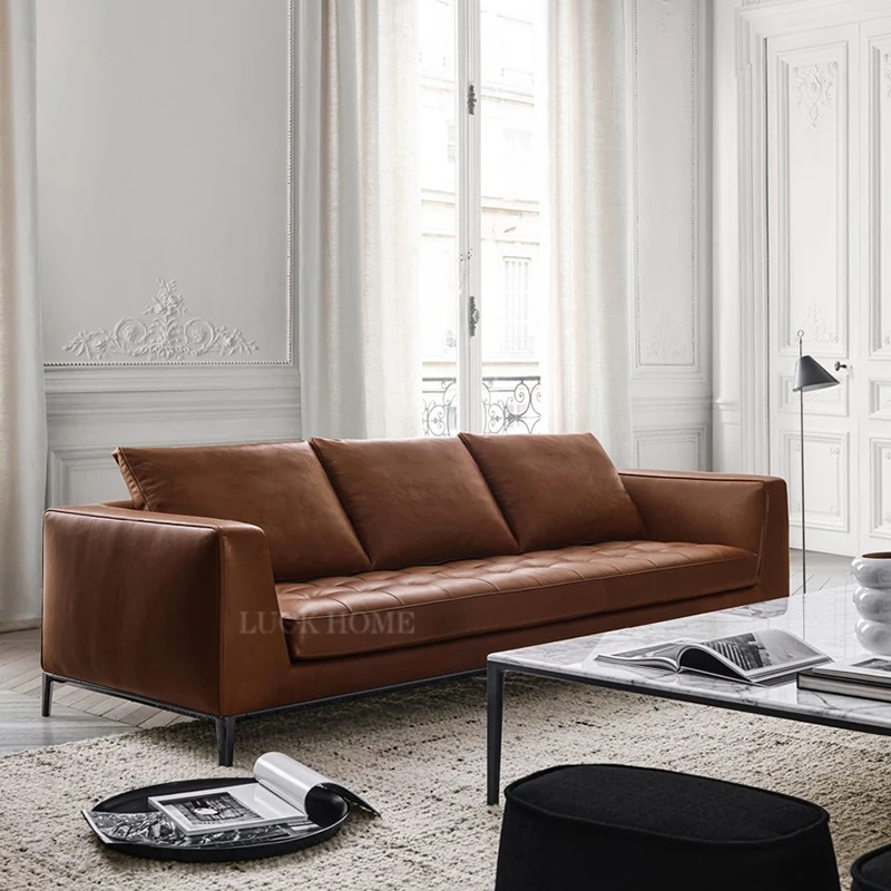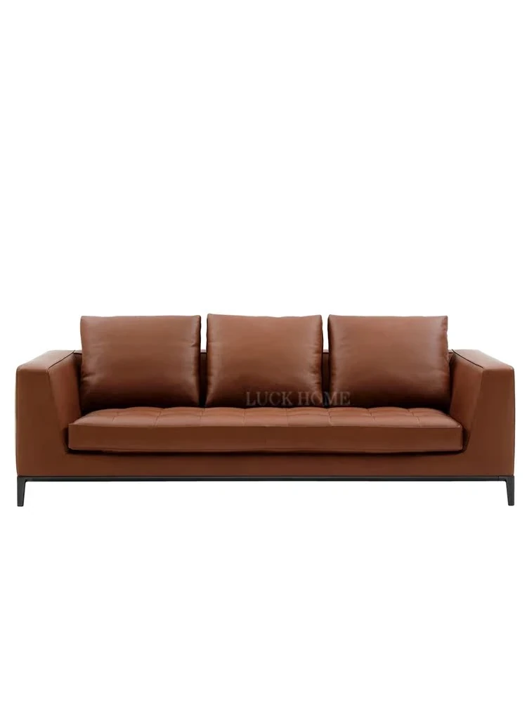 Luxury American Leather Pull-Down Brown Three-Seat Sofa for Elegant Villas - High-End Top-Grain Cowhide Designer Waxed Leather Couch for Your Living Room