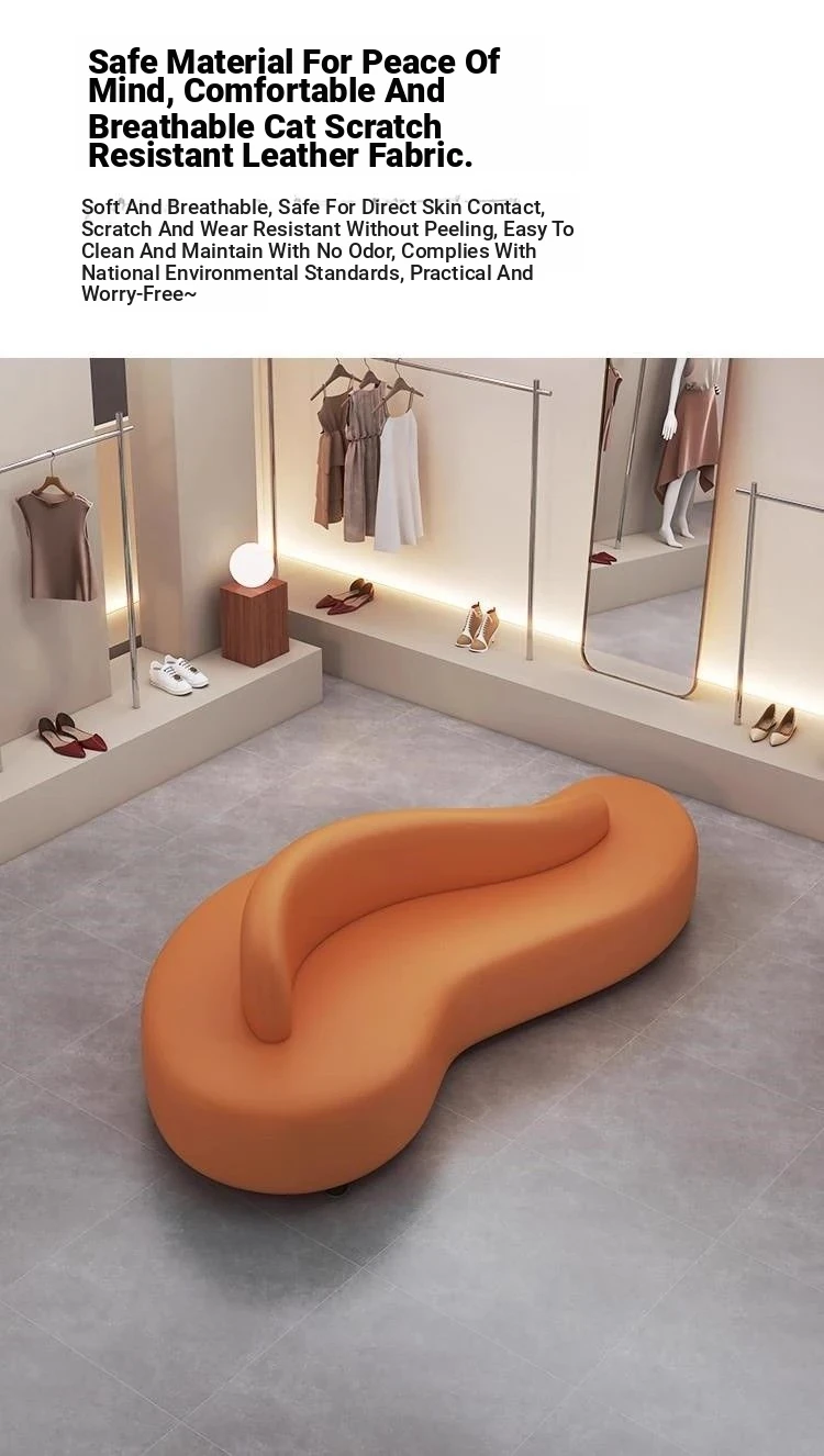 Luxury Designer Double-Sided Curved Sofa for Fashion Stores and Beauty Salons - No-Clean Cat Paw Leather Sofa for Reception and Relaxation Areas