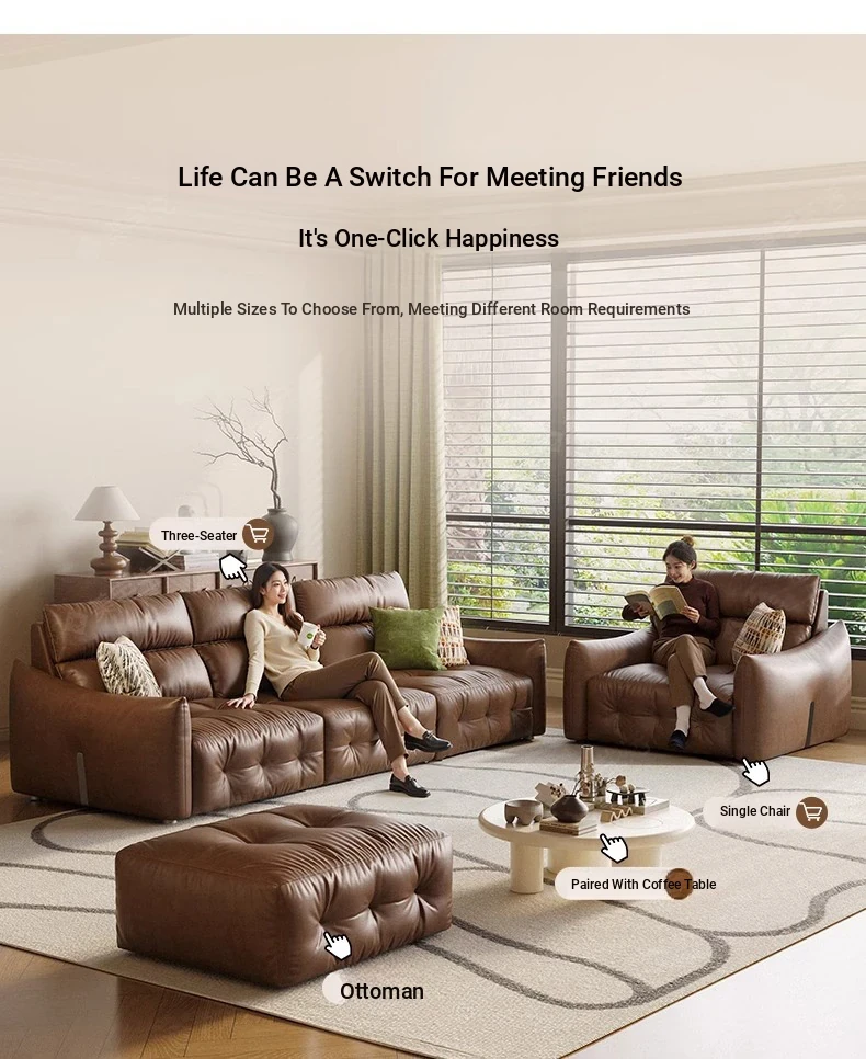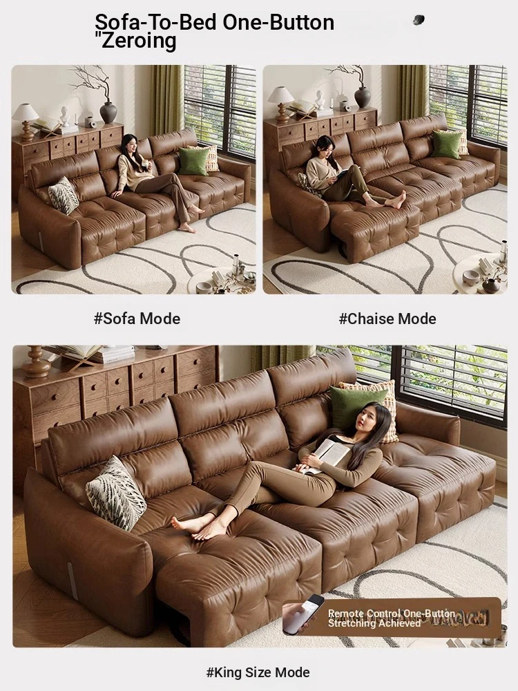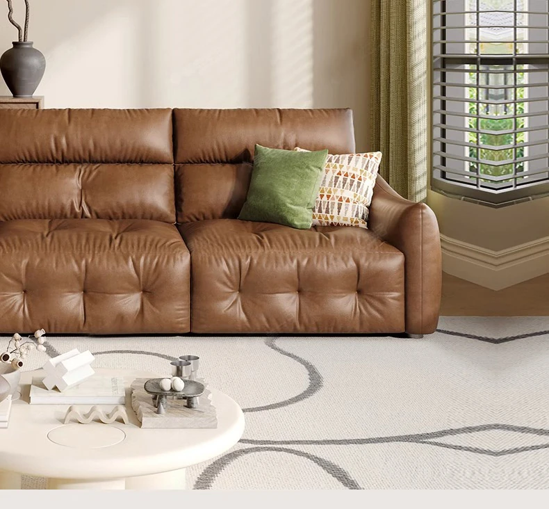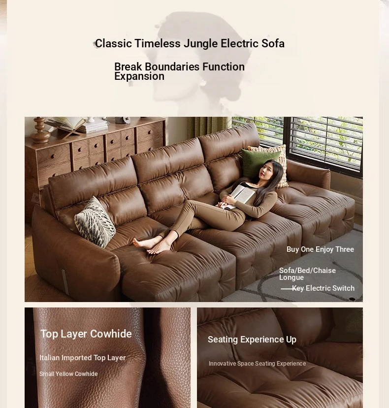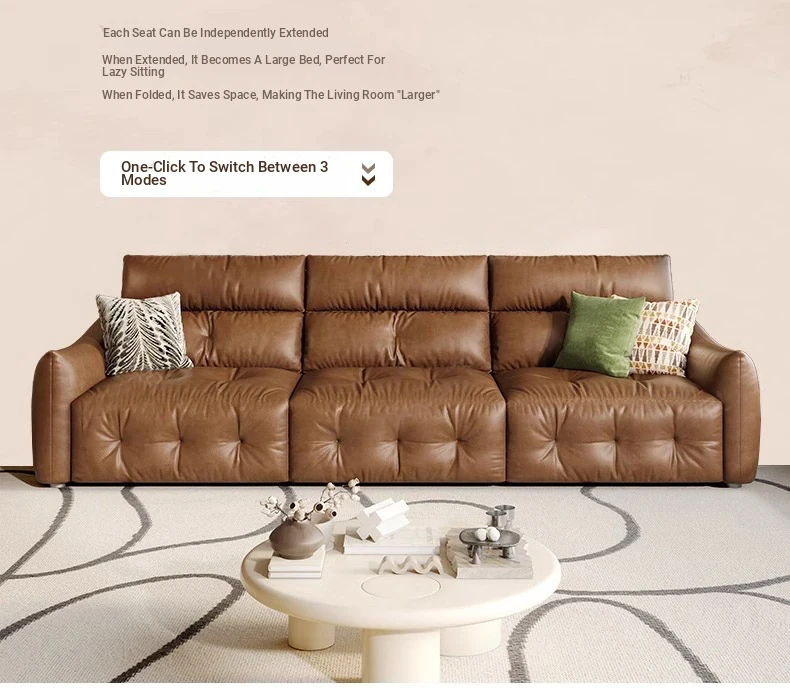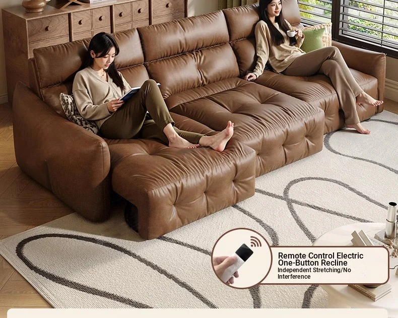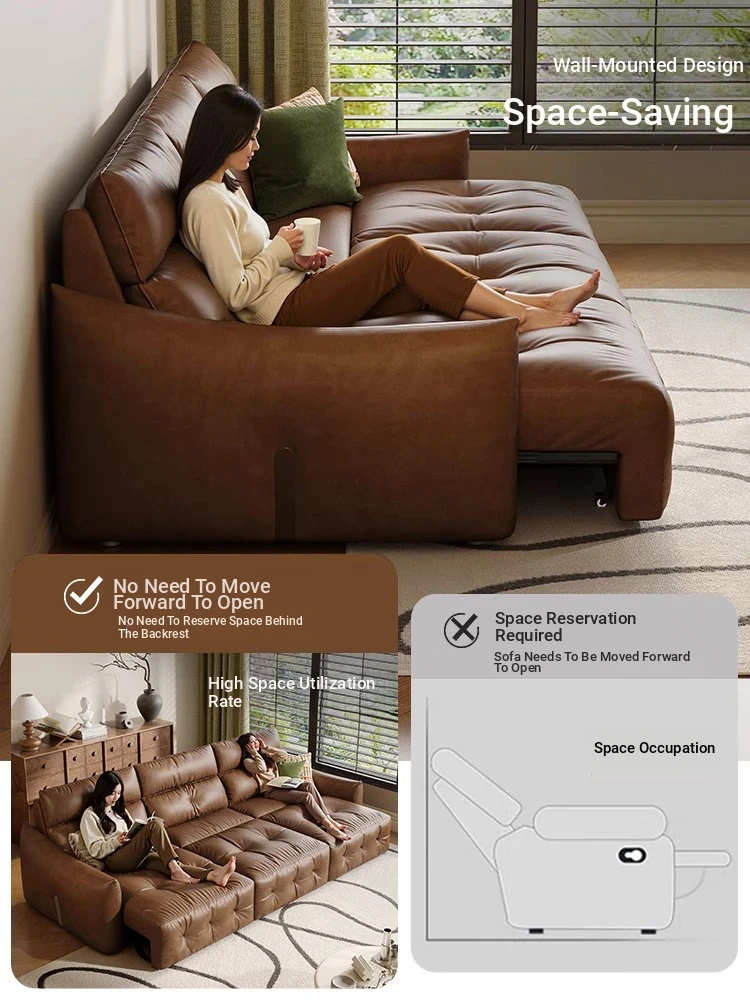 Luxury Genuine Leather Wall-Hugging Electric Recliner Sofa - Adjustable and Versatile for Living Room, Modern Minimalist Design, Perfect for Three People