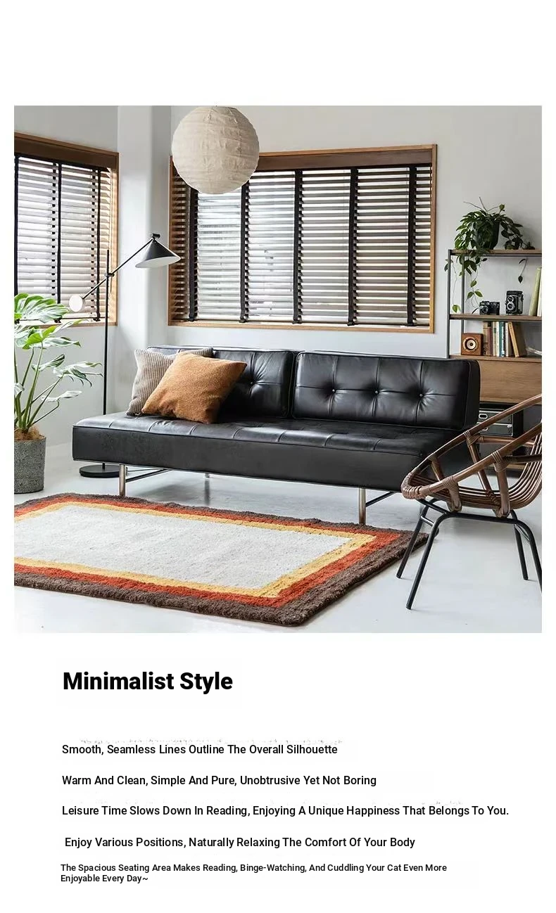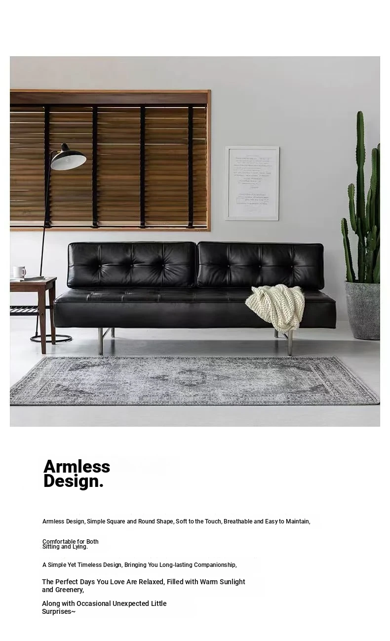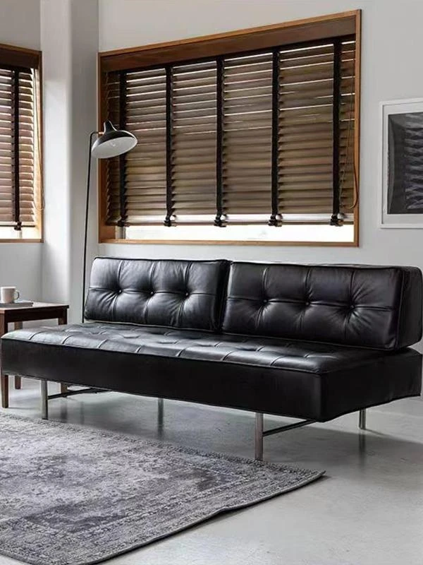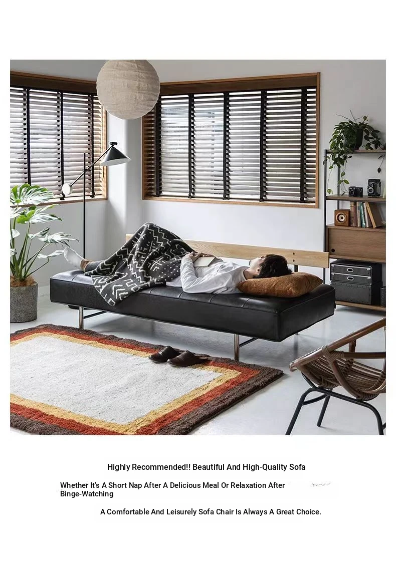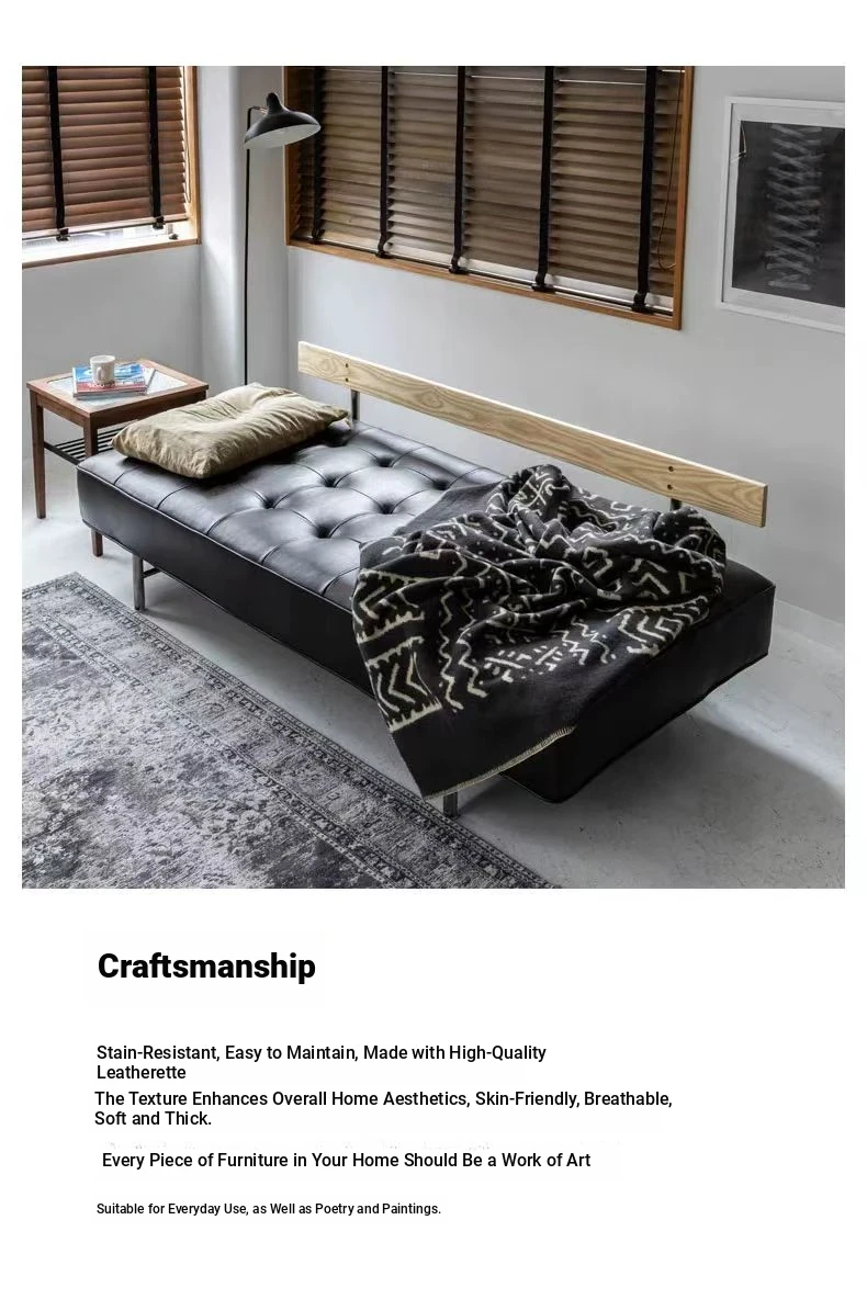 Minimalist Mid-Century Luxury Solid Wood Sofa for Small Living Rooms - Retro Design with Pull-Down Feature, Armless, Reclining, Black Faux Leather Upholstery