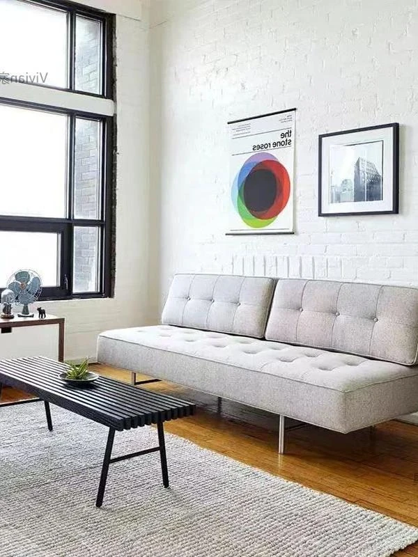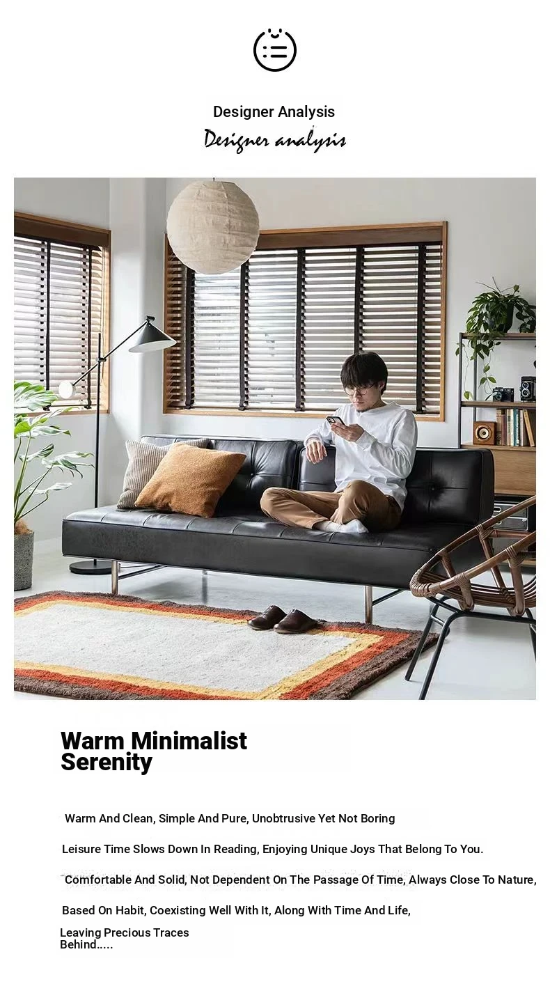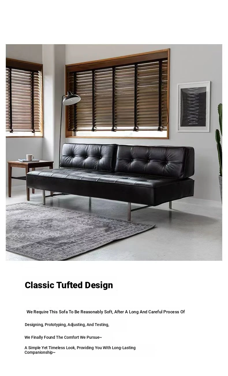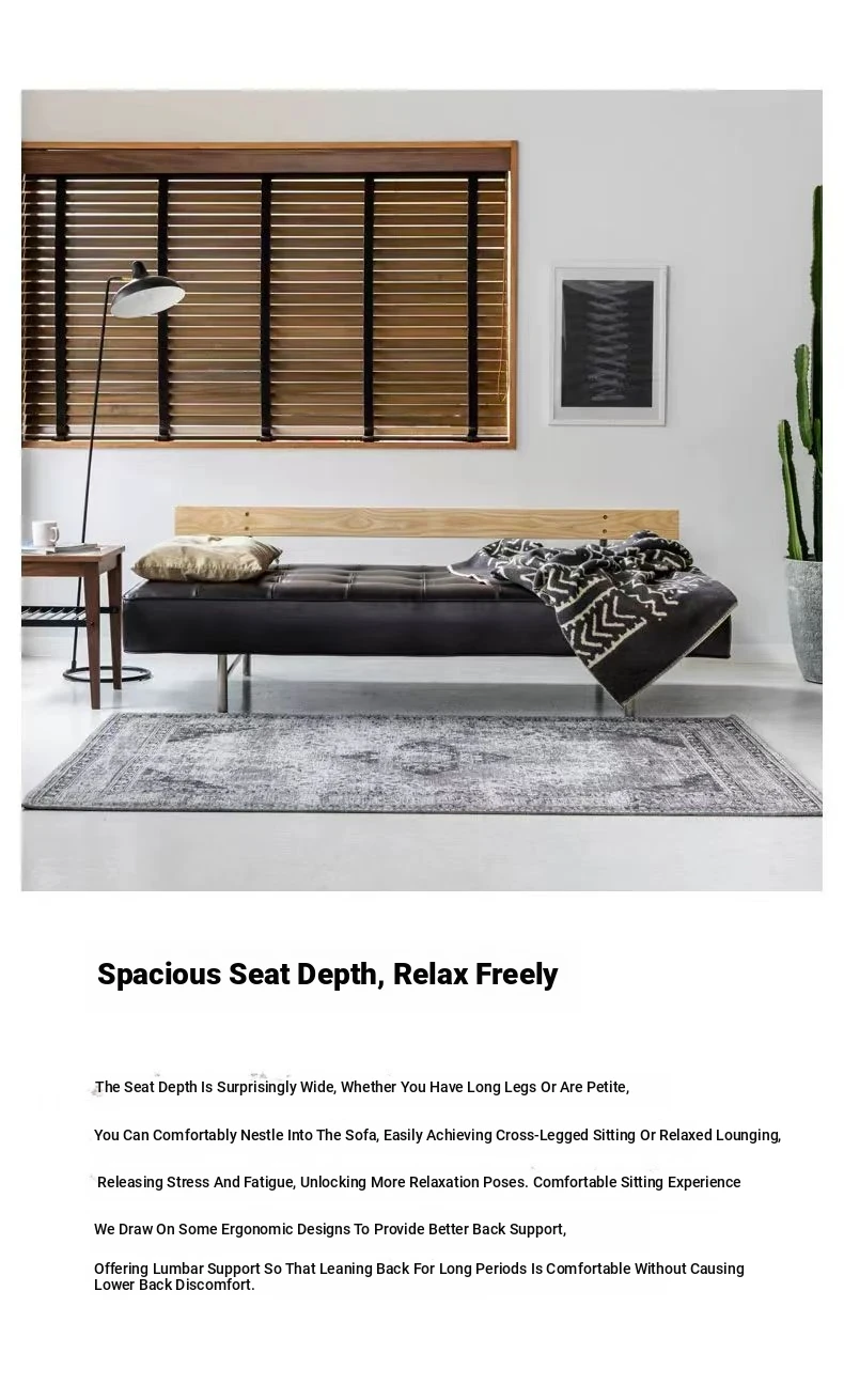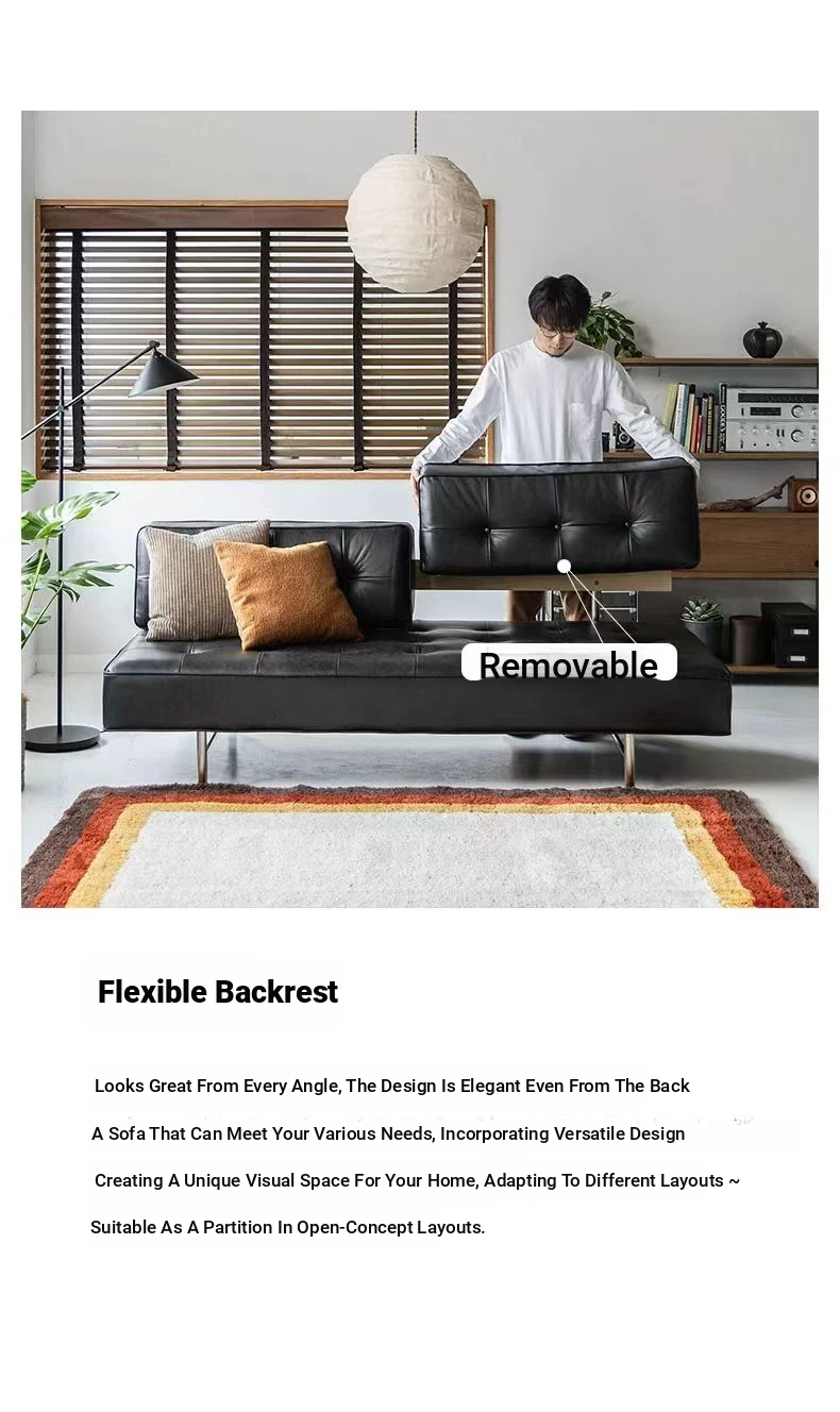 Minimalist Mid-Century Luxury Solid Wood Sofa for Small Living Rooms - Retro Design with Pull-Down Feature, Armless, Reclining, Black Faux Leather Upholstery